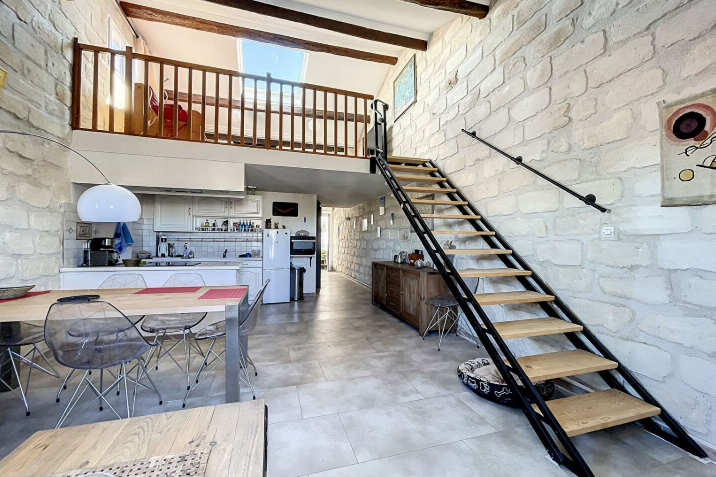 Il dispose d’une chambre avec un lit de 140 cm, ainsi que d’une mezzanine avec deux couchages de 70x190 cm. Le séjour offre une vue imprenable sur le Vieux Phare, le canal et la Maison du Dauphin, et comprend un coin cuisine entièrement équipé. Une salle de bain avec baignoire et un WC non séparé complètent l’aménagement. L'appartement bénéficie également d'une place de parking réservée.