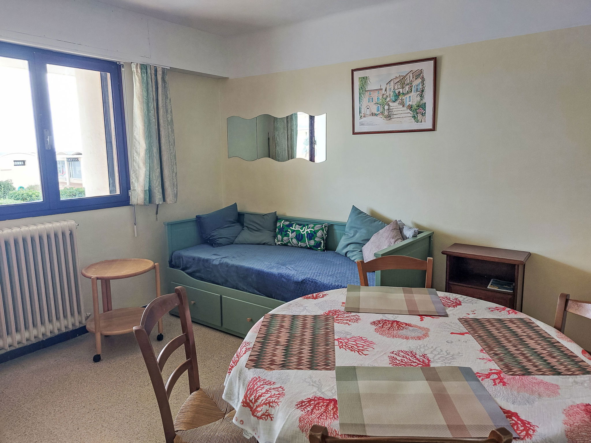 Le Lavandou: Immeuble "Le Grand Large", de 9 étages. Au centre de Lavandou, à 20 m de la mer, à 20 m de la plage, route à traverser. Infrastructures de la Maison: ascenseur. Place de parking (nombre de places limité). Magasins 50 m, magasin d'alimentation 200 m, supermarché 500 m, restaurant 50 m, boulangerie 80 m, café 50 m, cyber café 200 m, location de bicyclettes 100 m, arrêt de bus "Lavandou Gare routière" 400 m, plage de sable 20 m. Port plaisance 700 m, golf miniature 500 m. Attractions à proximité: Magic World 24 km. La remise des clés a lieu à l’agence de Le Lavandou.
