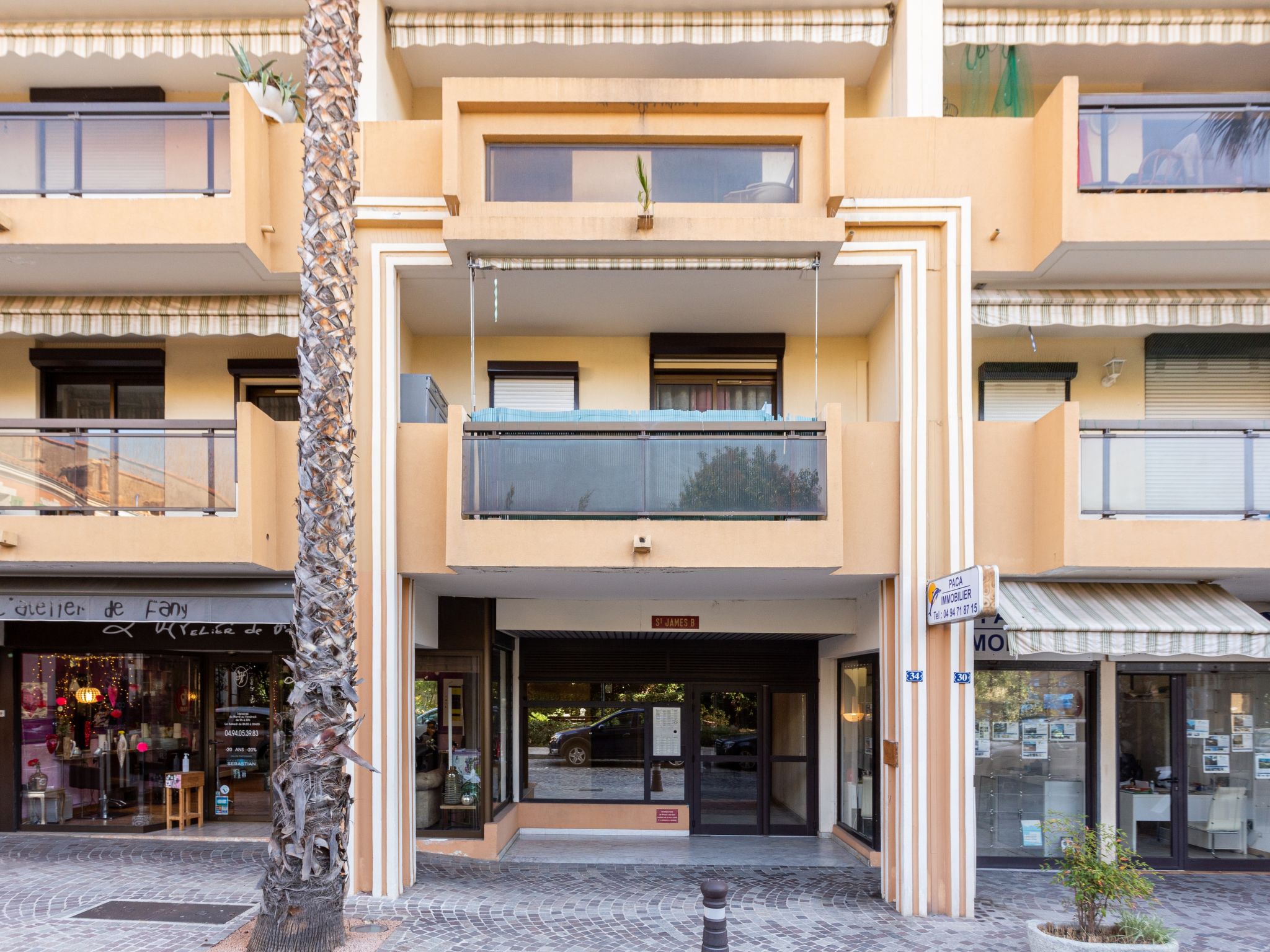 Commerces au rez-de-chaussée de l'immeuble. Immeuble "Saint James", de 7 étages, année de construction 1980. Au centre de Lavandou, situation centrale, animée, à 200 m de la mer, à 200 m de la plage. Infrastructures de la résidence: ascenseur. Parking public 200 m. Magasins 80 m, magasin d'alimentation 100 m, supermarché 900 m, restaurant, bar, boulangerie, café 50 m, cyber café 100 m, arrêt de bus "Lavandou Gare routière" 150 m, gare ferroviaire "Hyeres" 25 km, plage de sable "du Lavandou" 200 m, plage aménagée 500 m. Port plaisance 500 m, ecole de voile 600 m, tennis 500 m, golf miniature 1 km. Attractions à proximité: Magic World 27 km, Jardin Olbus Riquier 23 km, St Tropez 37 km, Le Jardin des Méditerranées 15 km. Région de randonnées: Sentiers du Littoral. La remise des clés a lieu à l’agence de Le Lavandou.