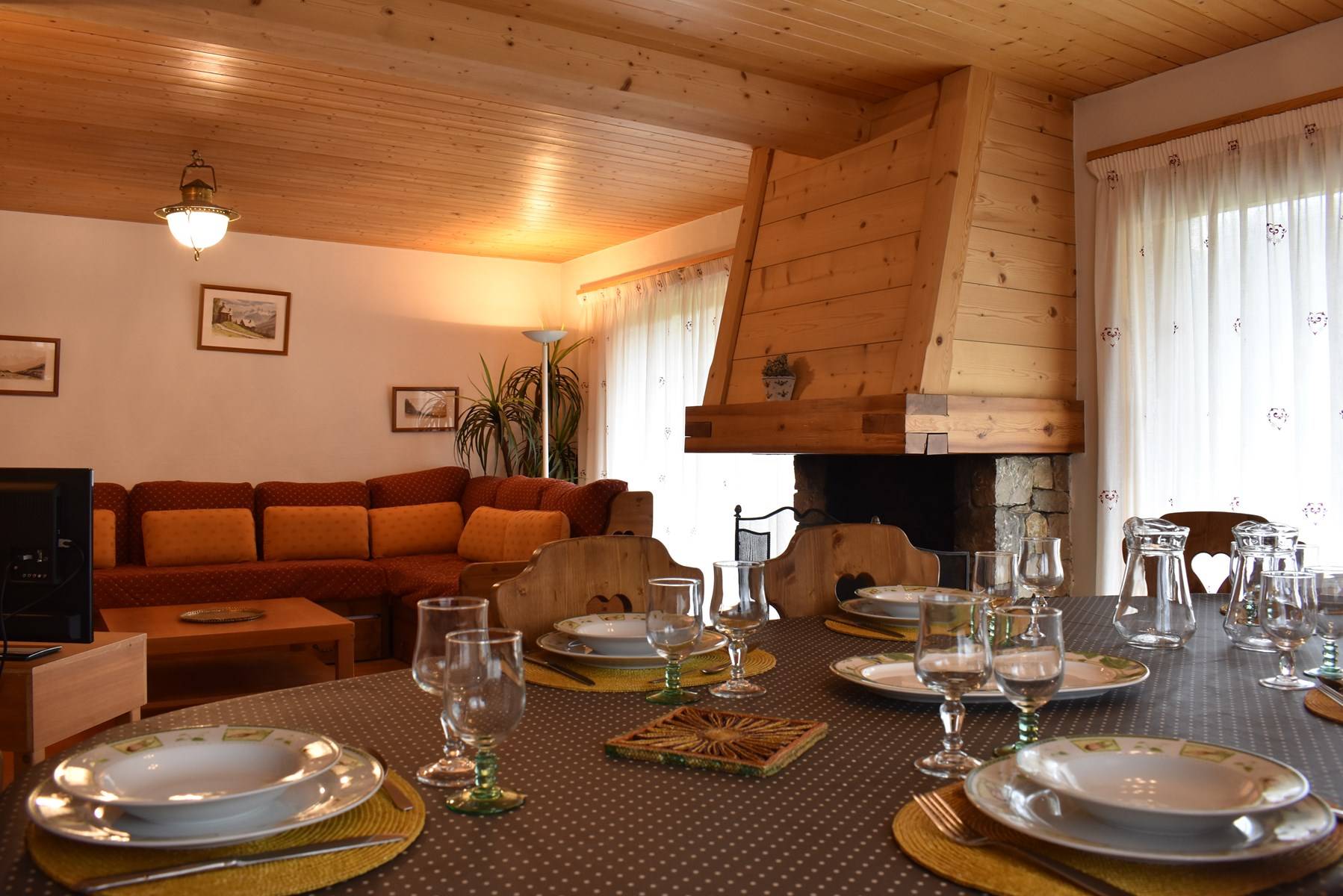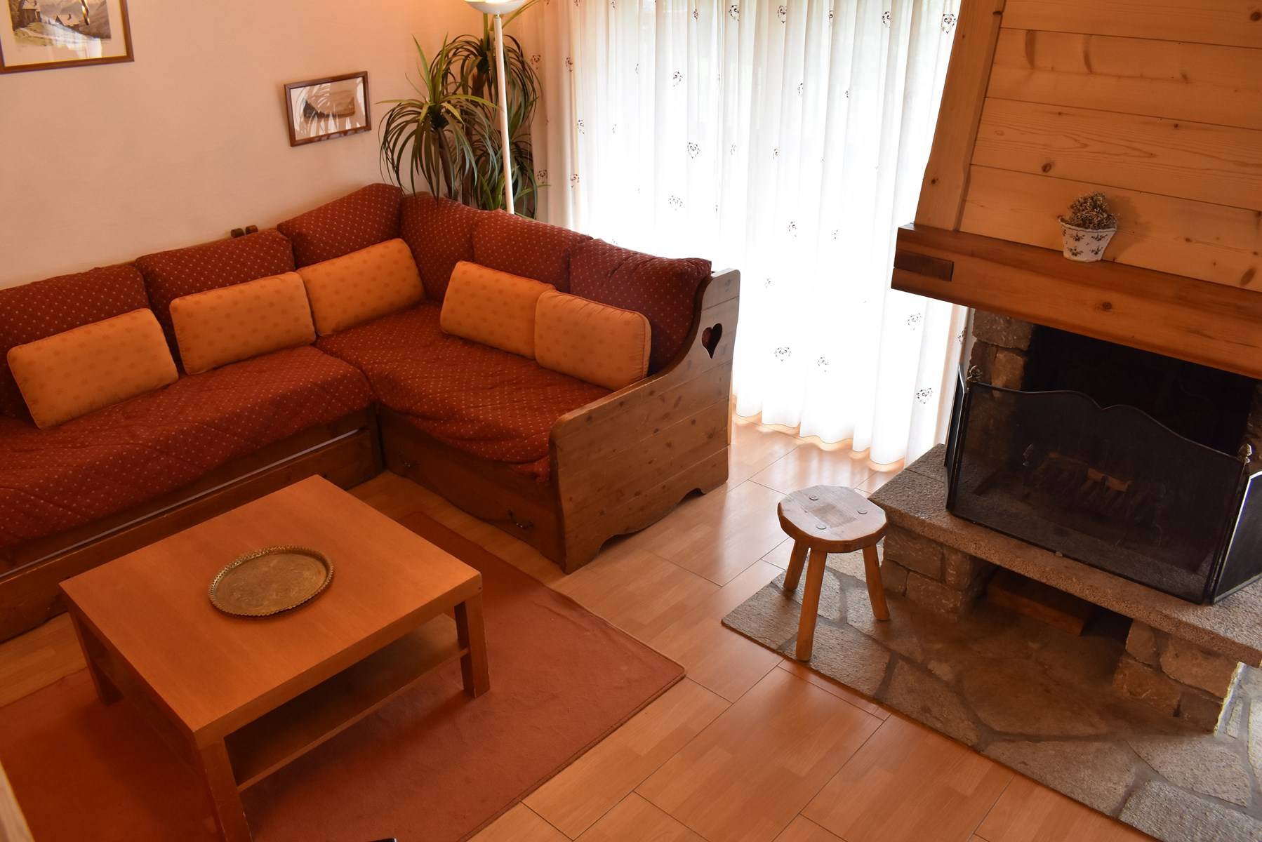 Cet appartement à la montagne situé au niveau de l'entrée de la résidence, avec ascenseur, comprend au rez-de-chaussée un grand séjour avec balcon Sud /Ouest, une cheminée et une télévision, une cuisine équipée, une chambre avec 2 ensembles de lits superposés, 1 chambre 1 lit 2 personnes (140), une salle de bain et 1 wc indépendant avec coin lavabo.