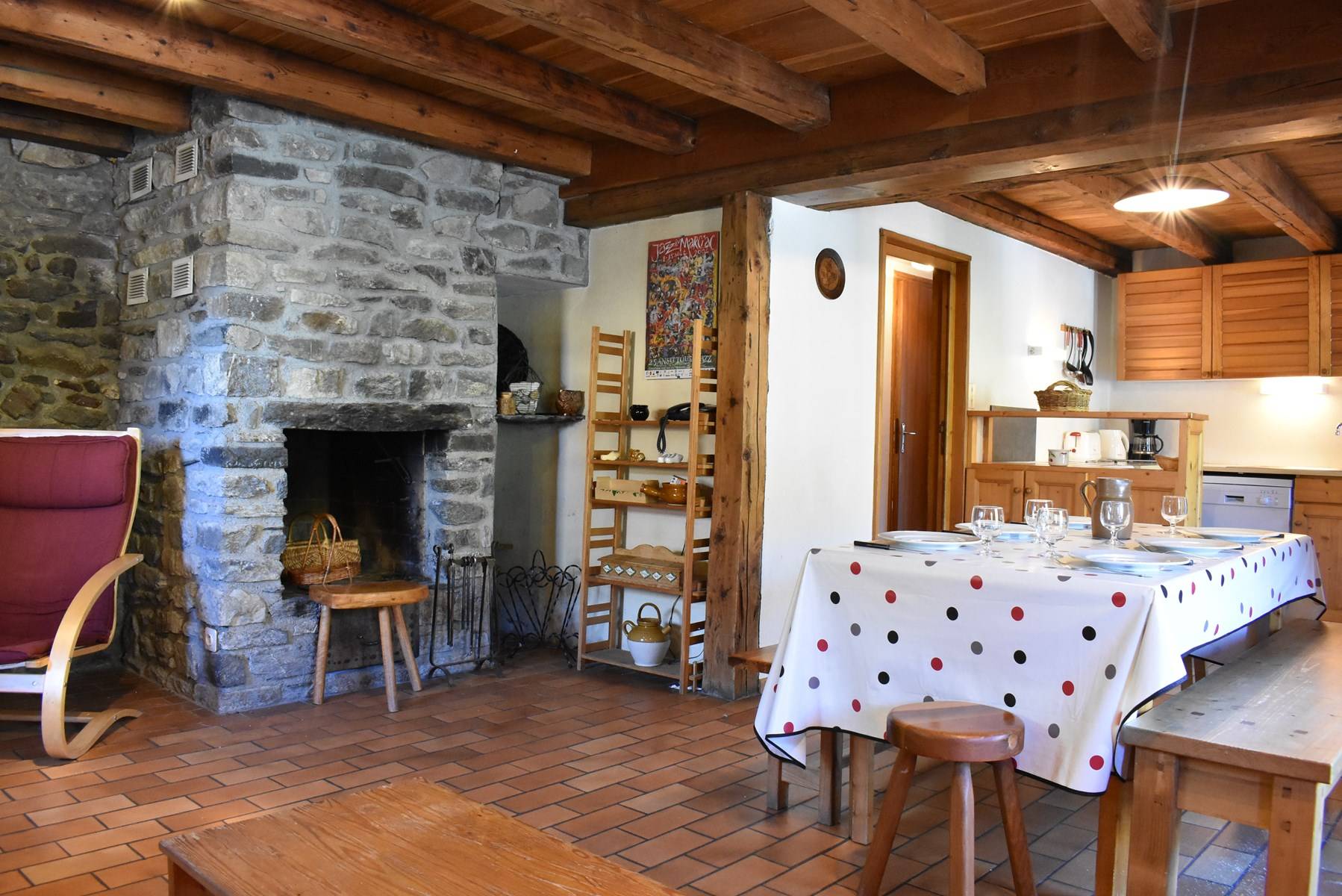 C'est une maison typique en pierre et bois comprenant une cuisine équipée avec lave-vaisselle ouverte sur le séjour avec un coin repas, un salon avec un canapé lit 2 personnes (140), 1 cheminée et 1 wc indépendant. A l'étage, 2 chambres avec 2 lits doubles 140 et 1 chambre avec 2 ensembles de lits superposés, 1 salle d'eau avec 1 wc.