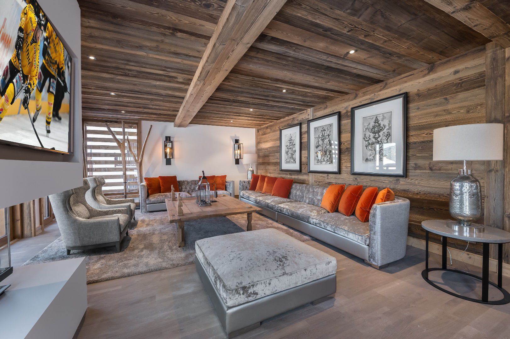 - Séjour avec salle à manger, cheminée, TV