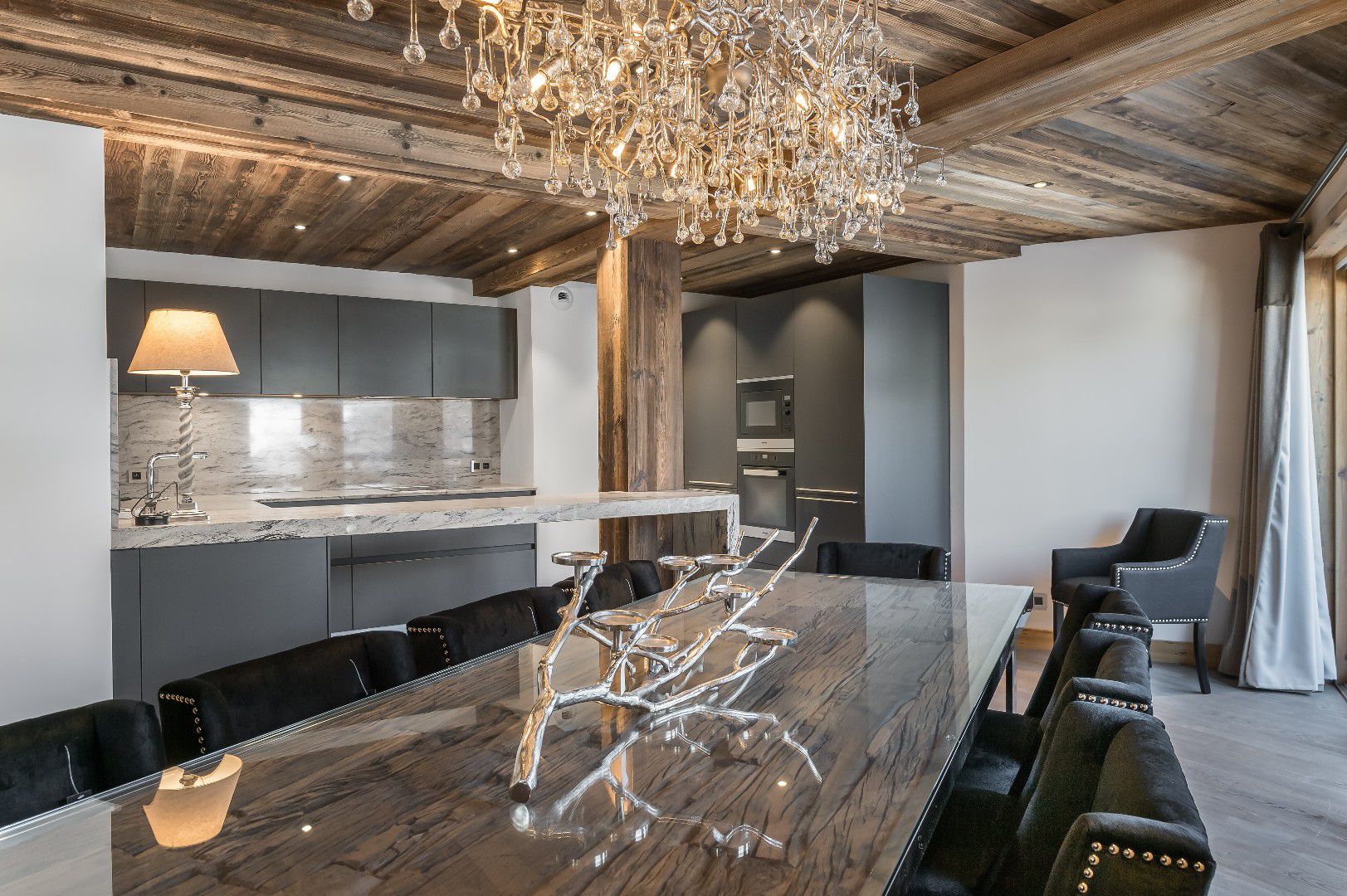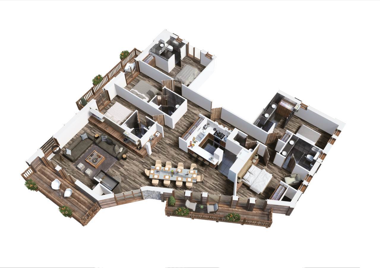 Splendide appartement d'environ 170m² situé dans la résidence "LES BELLES ALPES". Il est équipé pour 10 adultes avec 5 chambres en-suite et un sauna extérieur.