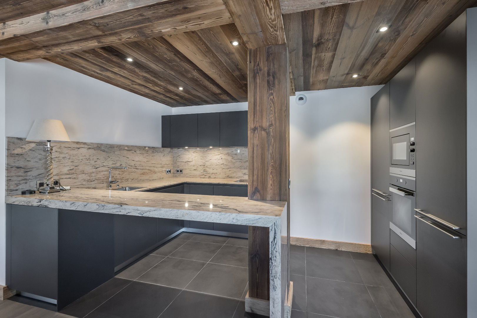 - Cuisine américaine équipée (réfrigérateur, congélateur, plaque induction, sèche-linge, lave-linge)