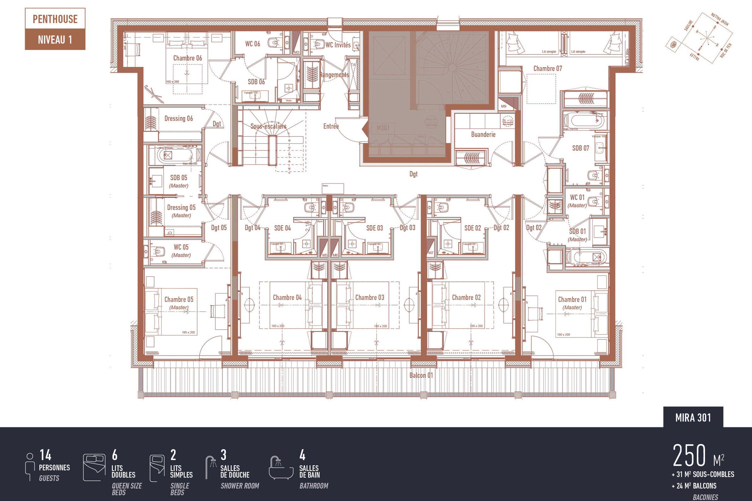 Situé sur les pistes, au Rond-Point, la résidence Antarès est probablement l'un des plus bel emplacement de Méribel ! Elle offre un accès direct, ski aux pieds, aux pistes des 3 Vallées – le plus grands domaine skiable du monde. L'appartement spacieux de 250m peut accueillir 15 personnes dans 7 chambres chaleureuses. Ce penthouse en duplex à l’ambiance conviviale, élégante et intimiste dispose d’une vue à couper le souffle sur les montagnes environnantes. Après une journée sur les pistes, les espaces communs vous accueillent pour un moment de détente intense : piscine intérieure (25m), spa (sauna & hammam), salle de fitness, bar, kid’s room. Un service digne de l’hôtellerie de luxe est proposé à tous : petit déjeuner, demi-pension, room service, chef privé, service de conciergerie... Cet appartement-chalet d’exception combine luxe, confort et intimité. Pour un groupe de plus de 15 personnes, d’autres appartements peuvent être réservés dans le même immeuble.