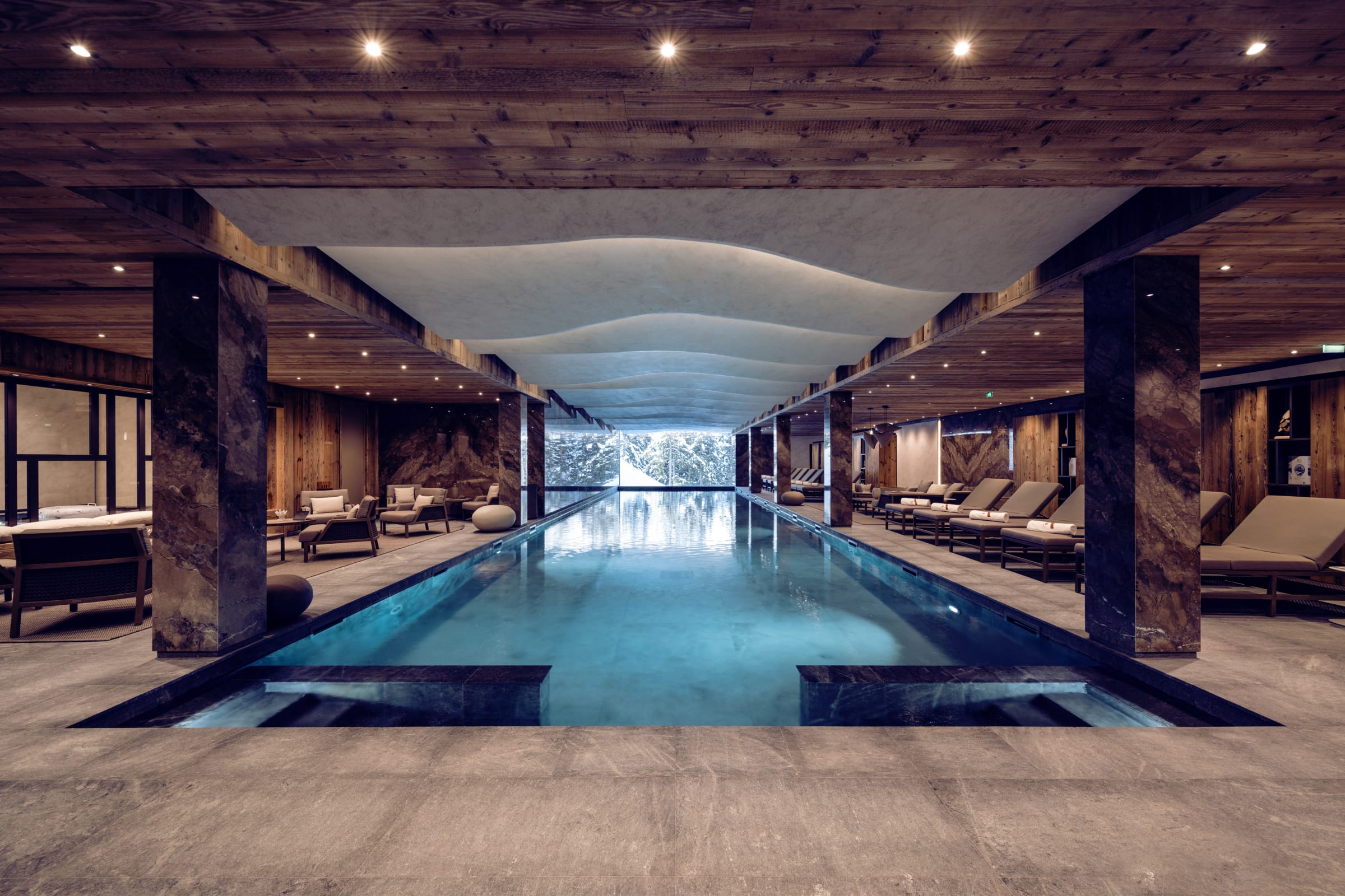 15 personnes - 7 chambres - 250m2 - wifi - piscine intérieure - sauna - hammam - salle de fitness - ski shop - 2 lounge bars - accès direct sur les pistes