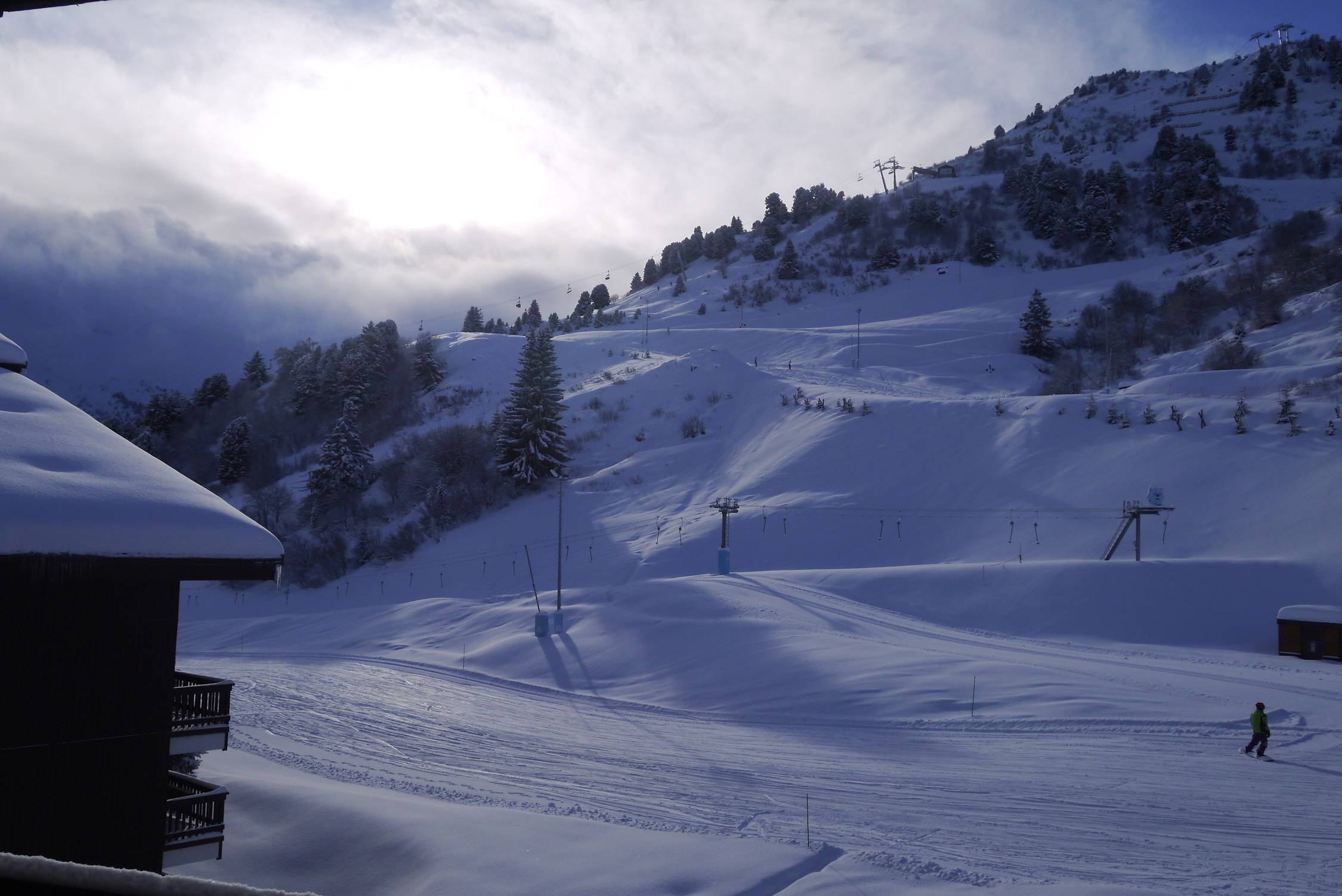 Séjour avec deux banquettes lit, un lit gigogne (80x190) et la télévision. La chambre contient un lit simple, un lit gigogne et un lit mezzanine (80x190). Cuisine avec plaques électriques, hotte, lave vaisselle, four mixte, micro ondes, réfrigérateur, bouilloire, grille-pain et cafetière. Salle de bains et WC séparés. Balcon exposition Sud. Casier à ski dans la résidence. Ascenseur. Appartement non-fumeur. 3ème étage.
