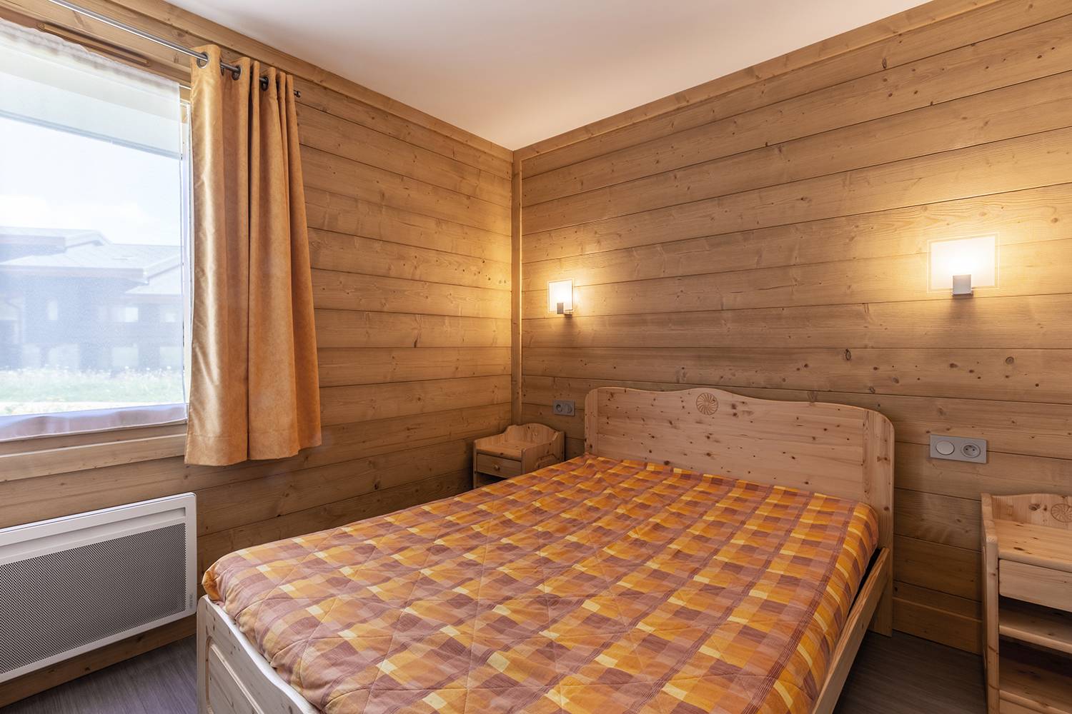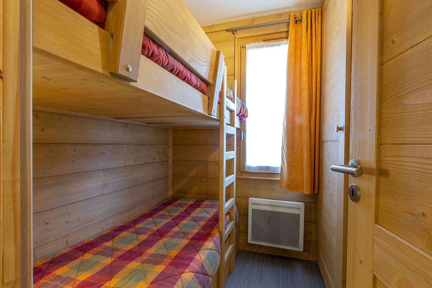 Il se compose d'un séjour comprenant 1 banquette lit simple (80x190) et un canapé convertible (160x190), la télévision. Une chambre avec un lit double (140x190) et une chambre cabine avec un ensemble de lits superposés (80x190). Cuisine équipée d'un lave vaisselle, plaques électriques, four, réfrigérateur, bouilloire, grille-pain et cafetière. Salle de bains et WC séparés. Terrasse. Casier à ski dans la résidence. Ascenseur. Appartement non-fumeur. Rez-de-chaussée.