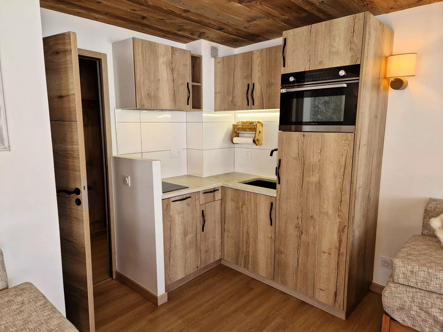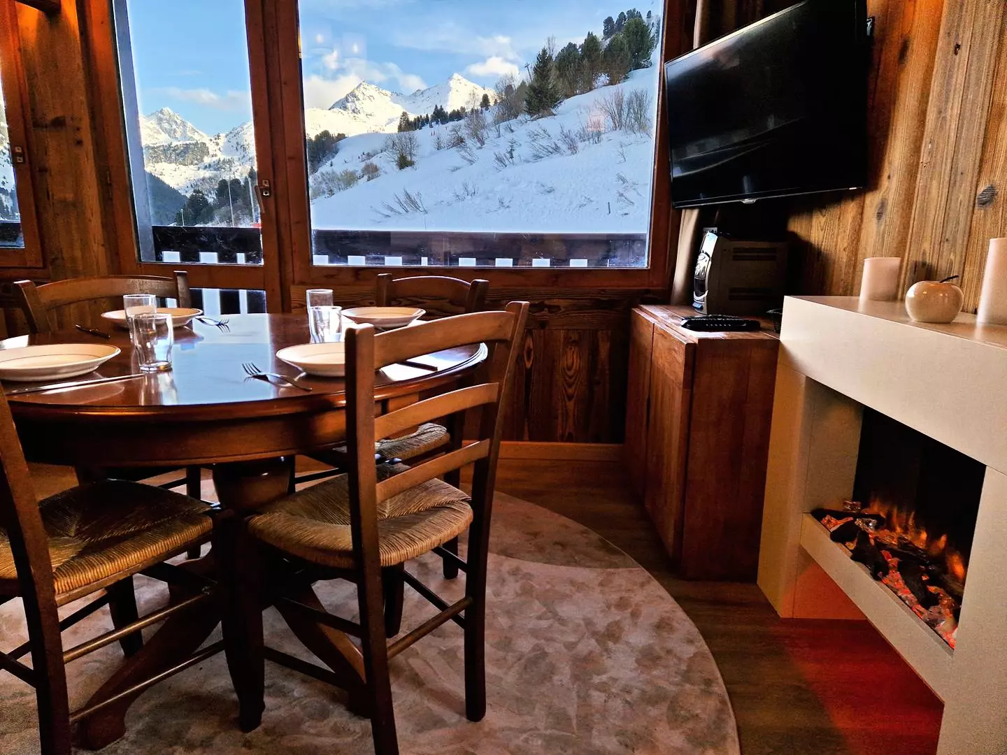 Séjour avec 2 banquettes lit (90x200), cheminée électrique, télévision, chaîne Hi-Fi (CD, K7, radio, Bluetooth). Chambre avec un lit double (160x200), télévision. Cuisine entièrement équipée de plaques induction, four combiné micro-ondes, lave-vaisselle, réfrigérateur-congélateur, bouilloire, cafetière et grille-pain. Salle de bains et WC séparés. Balcon sud. Casier à skis dans la résidence, 2e étage sans ascenseur. Appartement non-fumeur. WIFI privé par fibre compris.