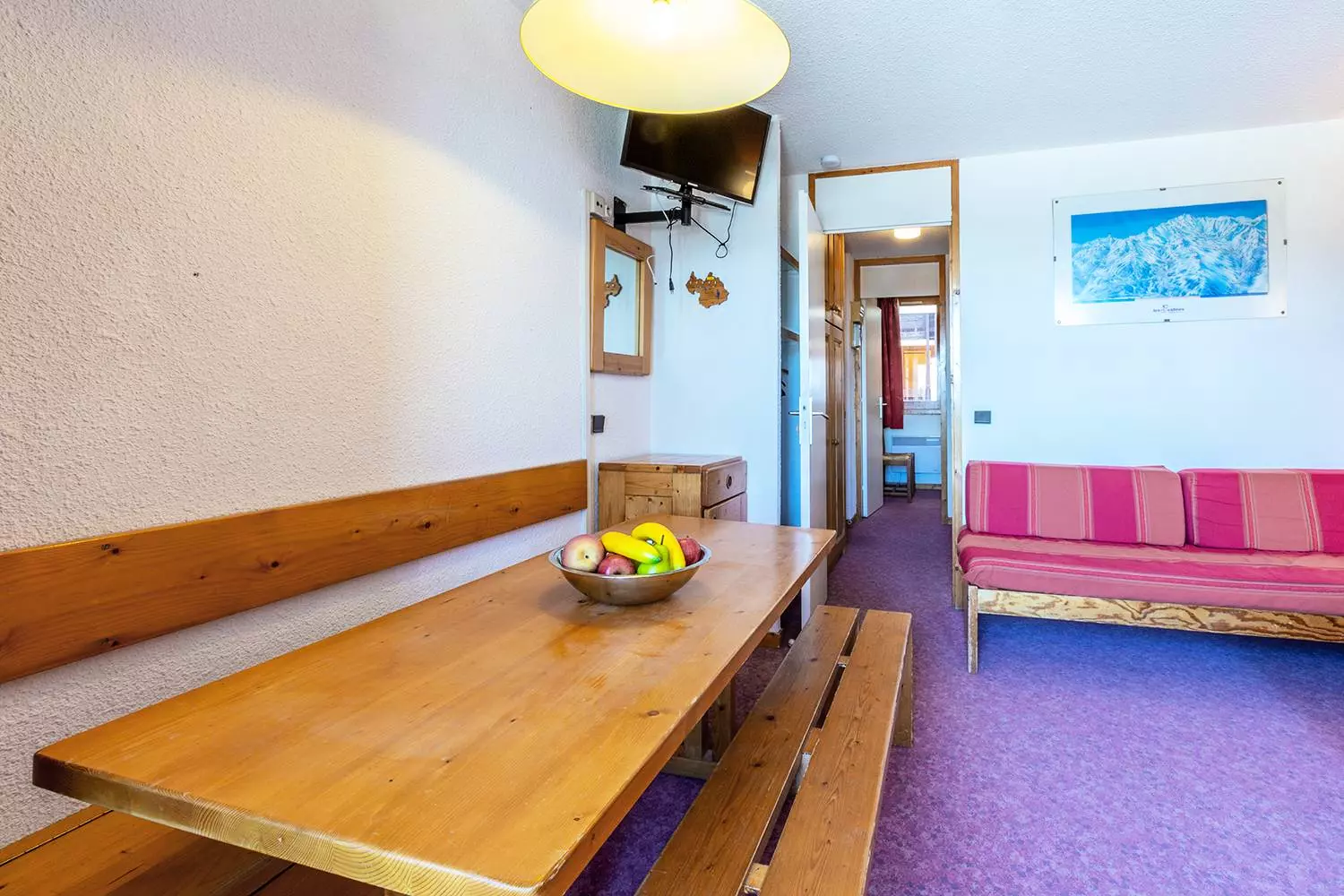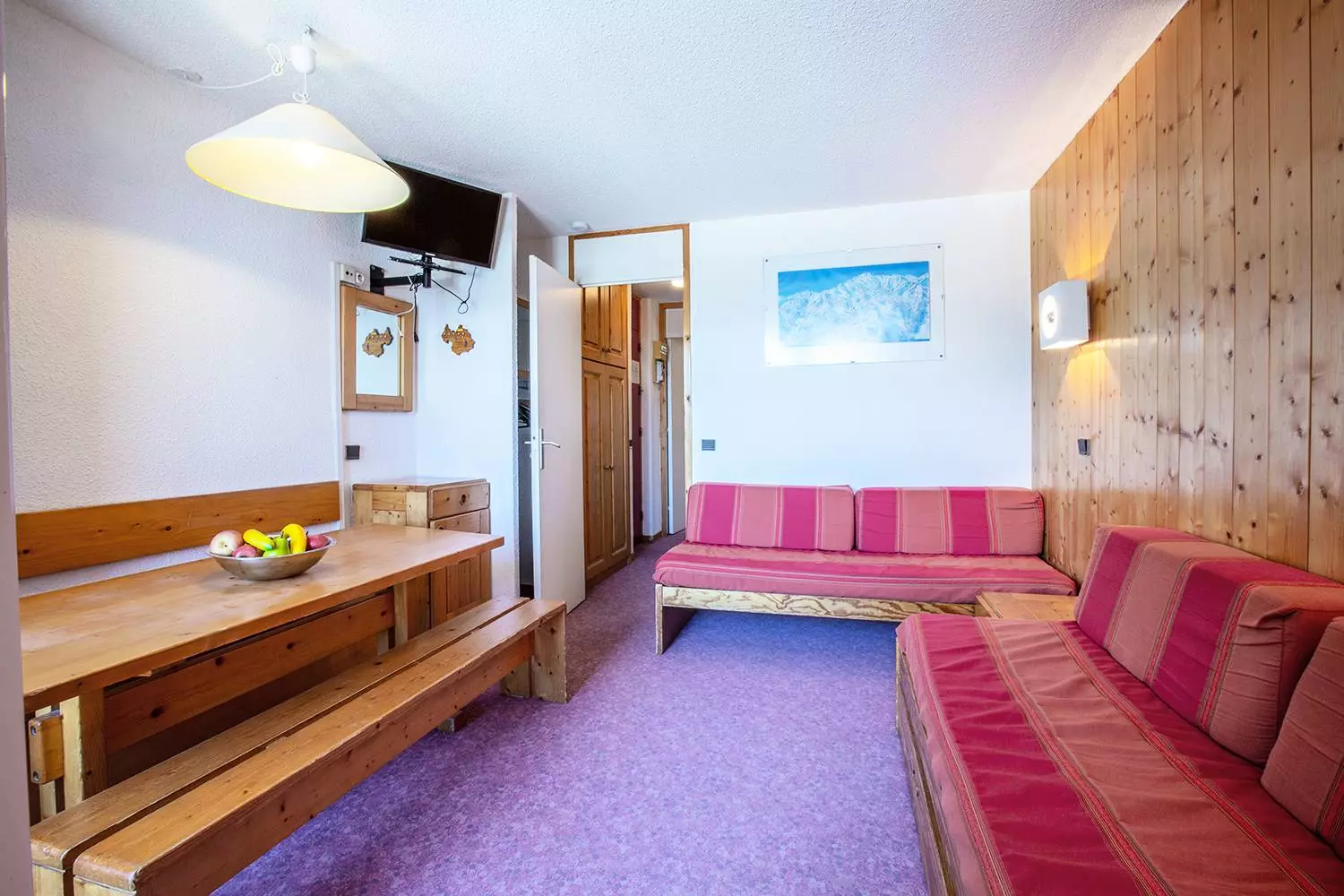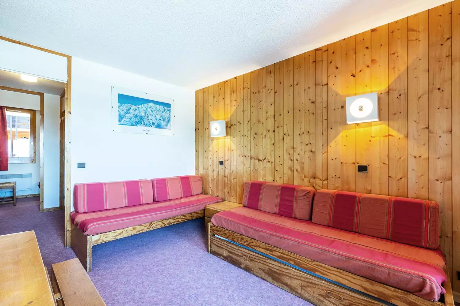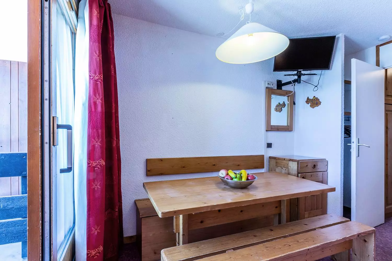 Dans le séjour se trouve 2 banquettes-li simples et un lit gigogne (80x190), la télévision. Dans la chambre il y a 2 lits simples (80x190). Cuisine équipée de plaques électriques, lave vaisselle, four, réfrigérateur, grille-pain, bouilloire et cafetière. Salle de bains et wc séparés. Balcon. Casier à skis et ascenseur dans la résidence. 2ème étage. Appartement non fumeur. Accès WIFI résidence.