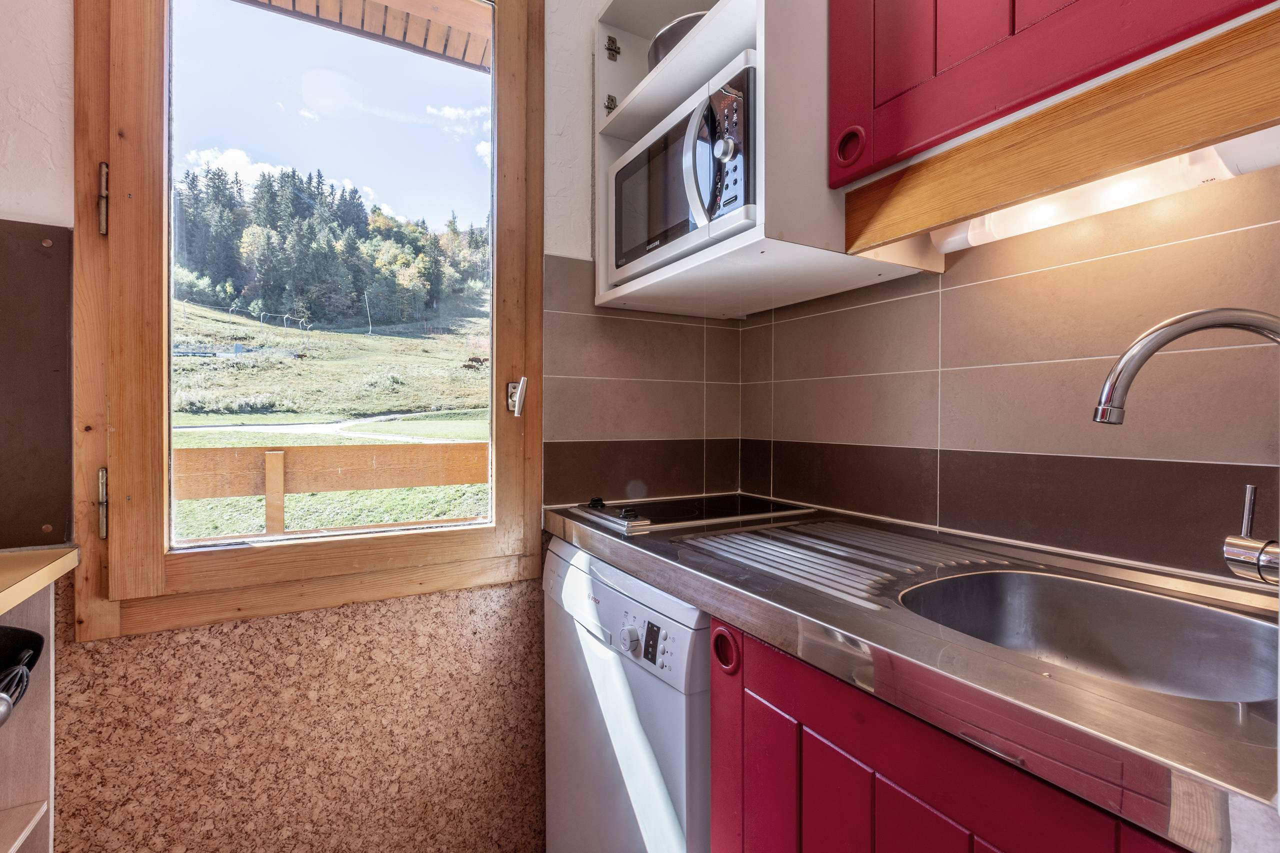 - Cuisine indépendante équipée de lave vaisselle, four micro ondes.