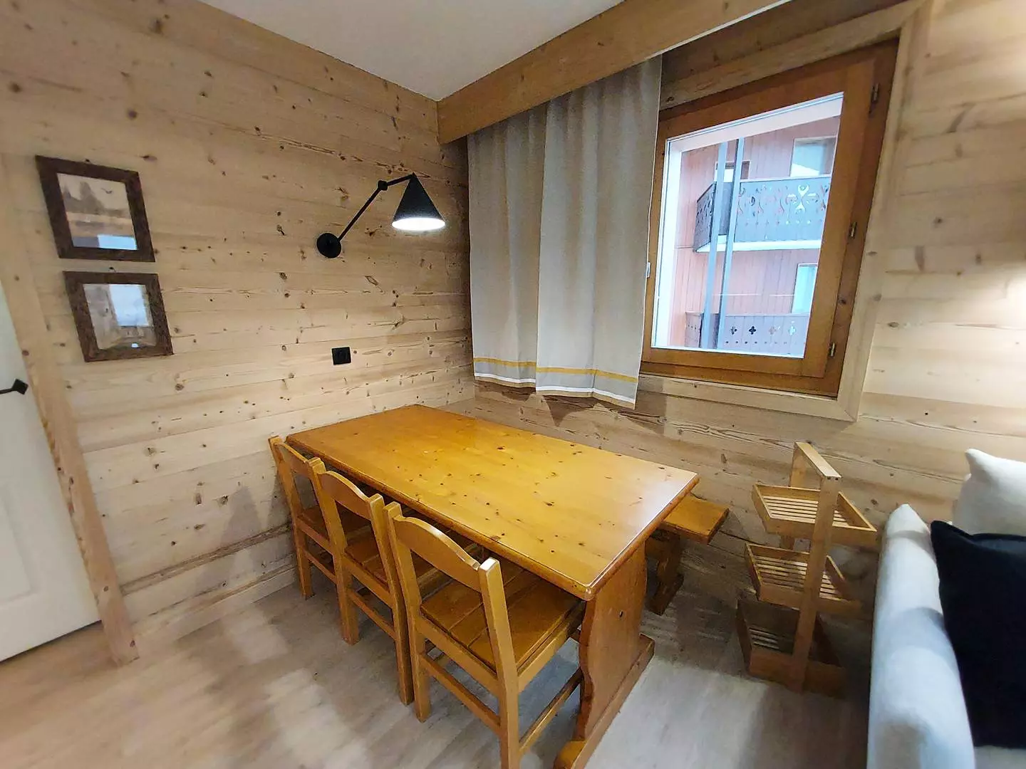 - Coin repas avec une table à manger, 3 chaises et 1 banc
