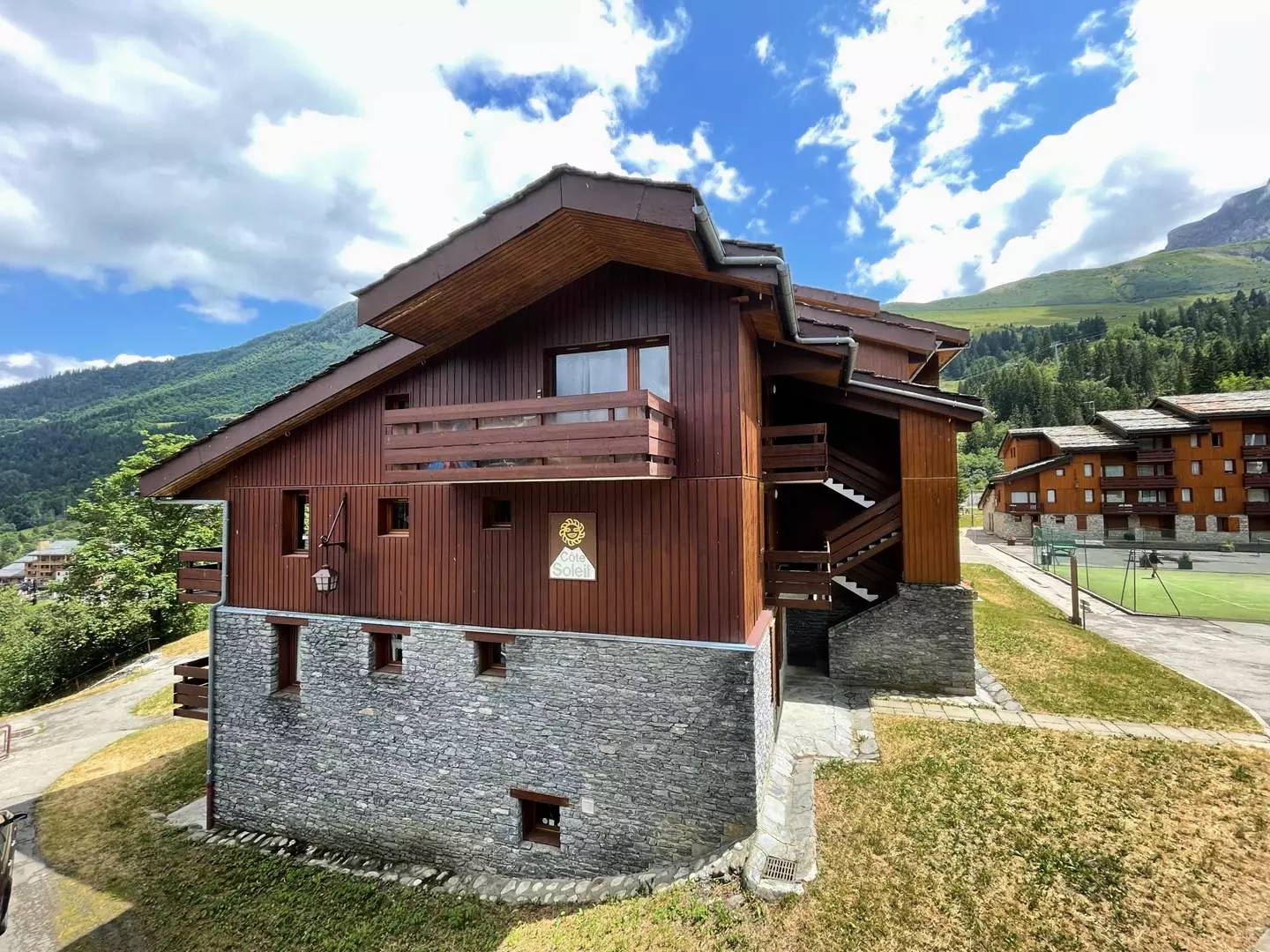 La résidence ''Le Cote Soleil'' se situe à proximité immédiate de l'ESF (+ de 6 ans), de l'arrivée du Télébourg et des pistes de ski. Le hameau étant piéton, la réservation d'un parking souterrain est conseillée. Les commerces, situés à 200mètres environ, sont accessibles par le Télébourg.
