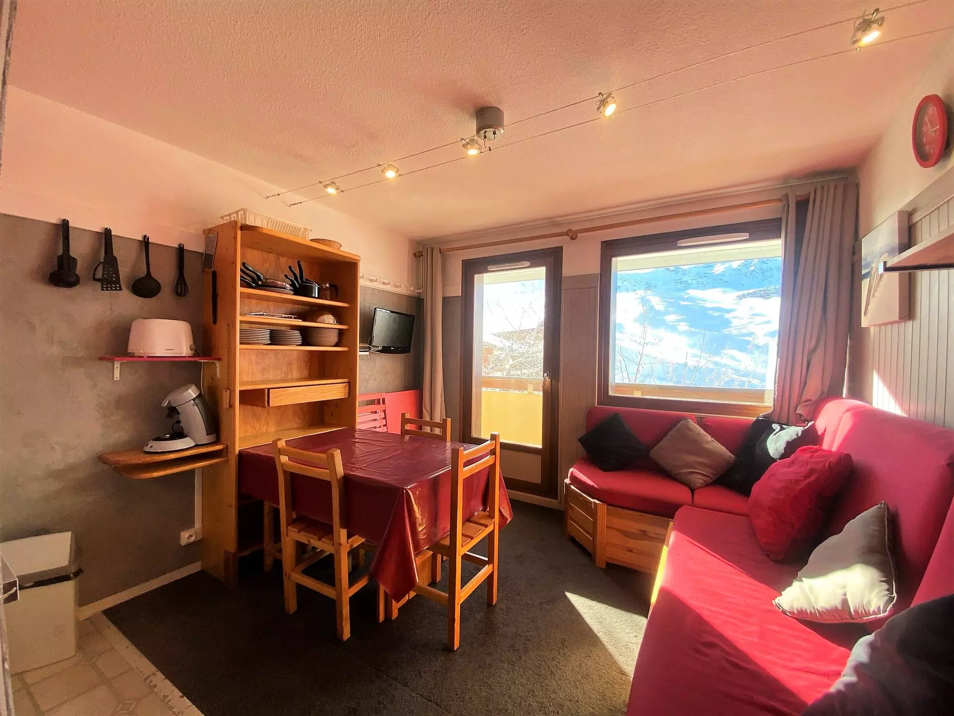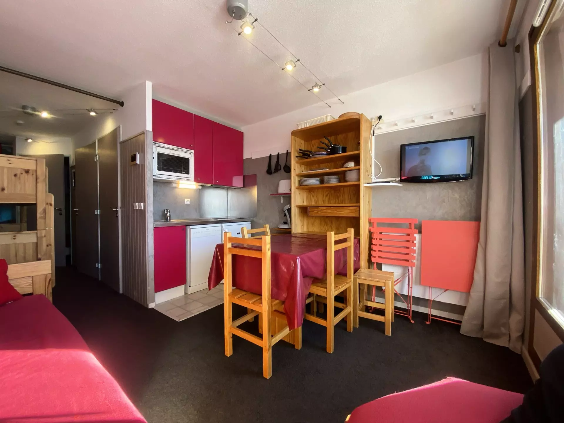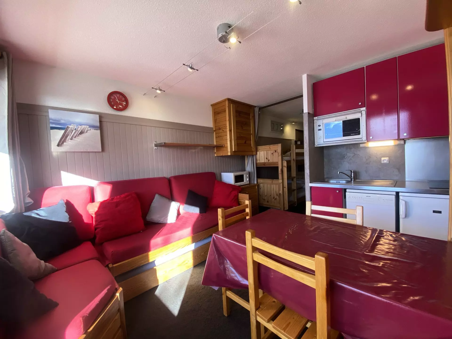 Cet appartement de 28 m2 est situé au niveau -3 (raz de neige) et bénéficie d'un balcon orienté sud avec une jolie vue sur les sommets de Val Thorens.