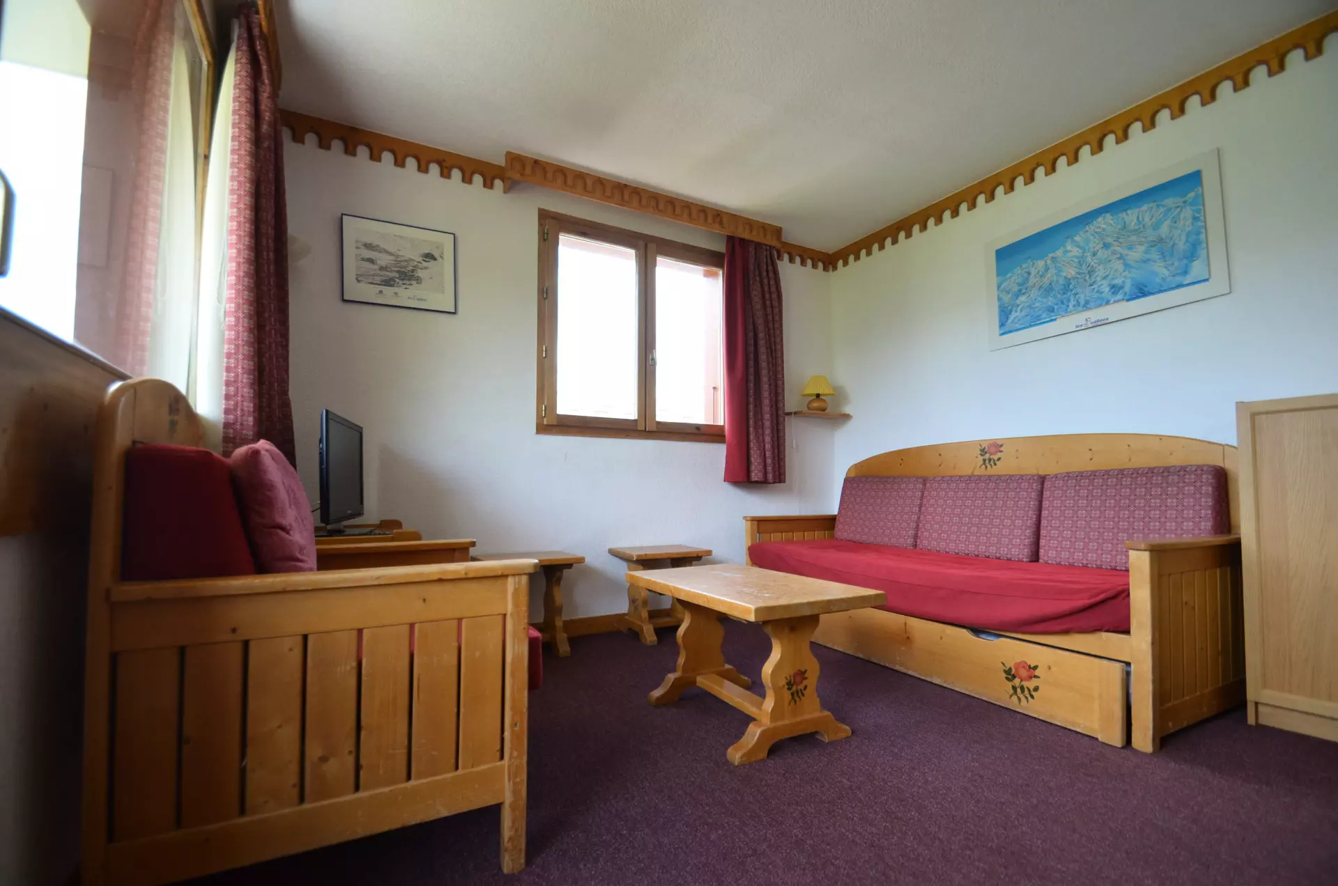 Séjour : banquette lit simple (80 cm), lit simple gigogne (80 cm), télévision