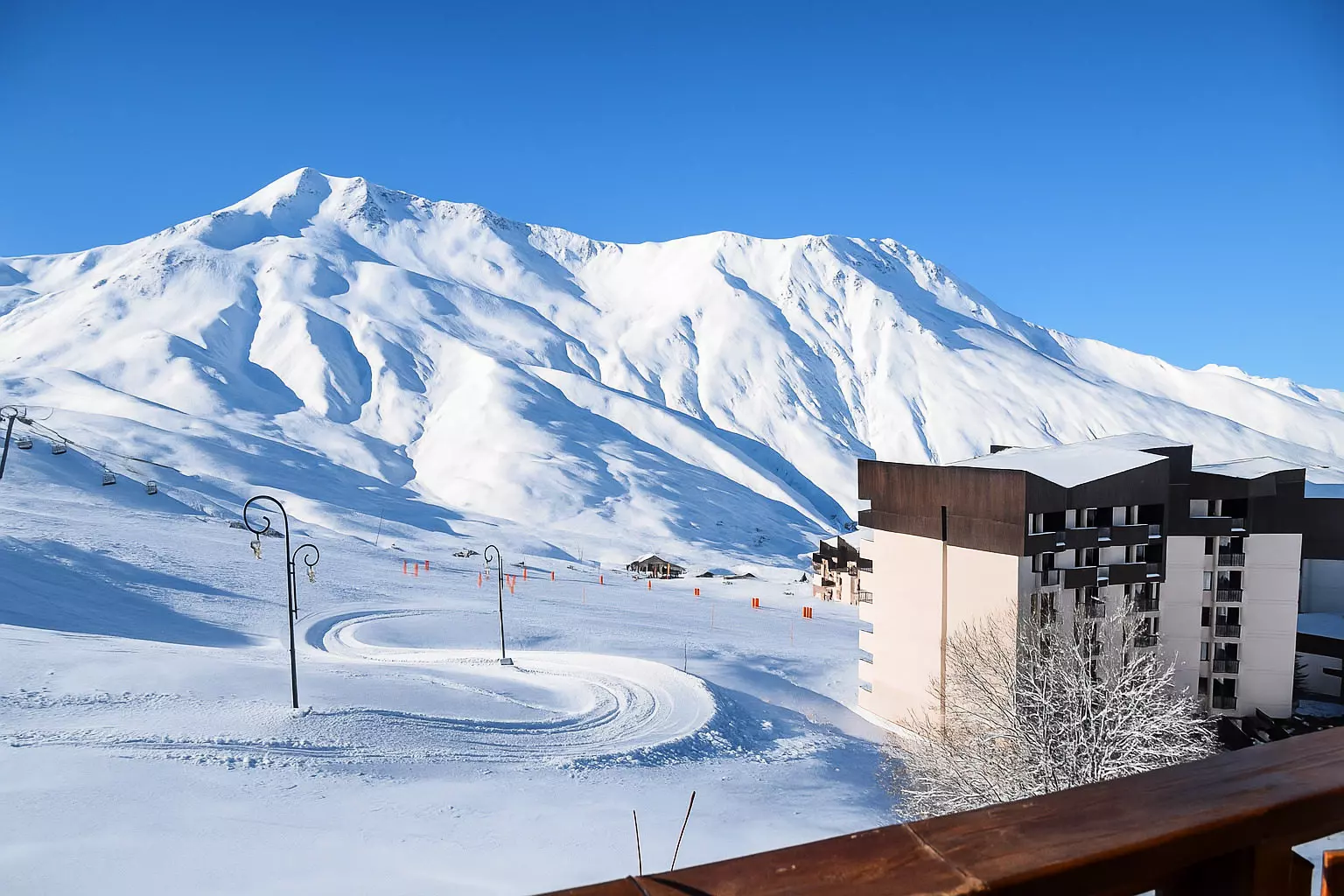 Résidence Les Côtes d'Or - Chalet Courmayeur, appartement 312, 2 pièces cabine, 4/6 personnes, 34 m², 1er étage côté balcon, étage moins 1 depuis l'entrée du chalet, par escaliers, balcon exposé Sud-Ouest