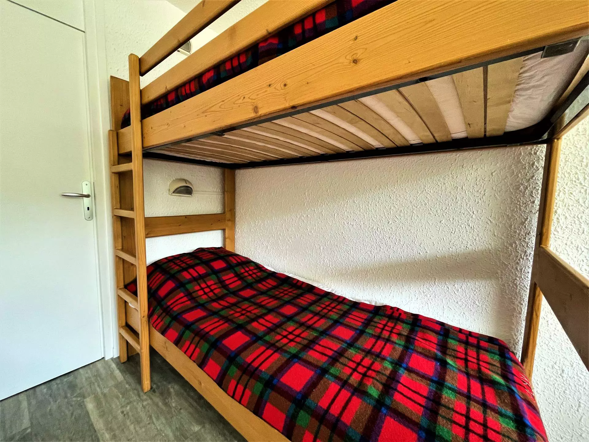 Chambre : lit simple superposé (2 x 80 cm), lit double (140 cm)