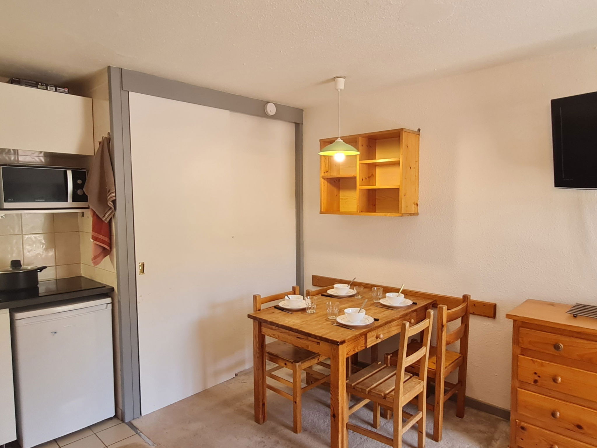 "Meije 7" studio 25 m2 au 1er étage. Logement idéal pour 4 adultes. Séjour avec 1 divan-lit et 1 x 2 lits superposés, 1 lit gigogne et TV. Cuisine ouverte (2 plaques de cuisson, micro-ondes). Douche/WC. Balcon. Vue sur les montagnes. Veuillez noter: logement non-fumeur. 1 animal/ chien autorisé. Annonce d'un professionnel (art 155, IV du CGI) 38253002619MX