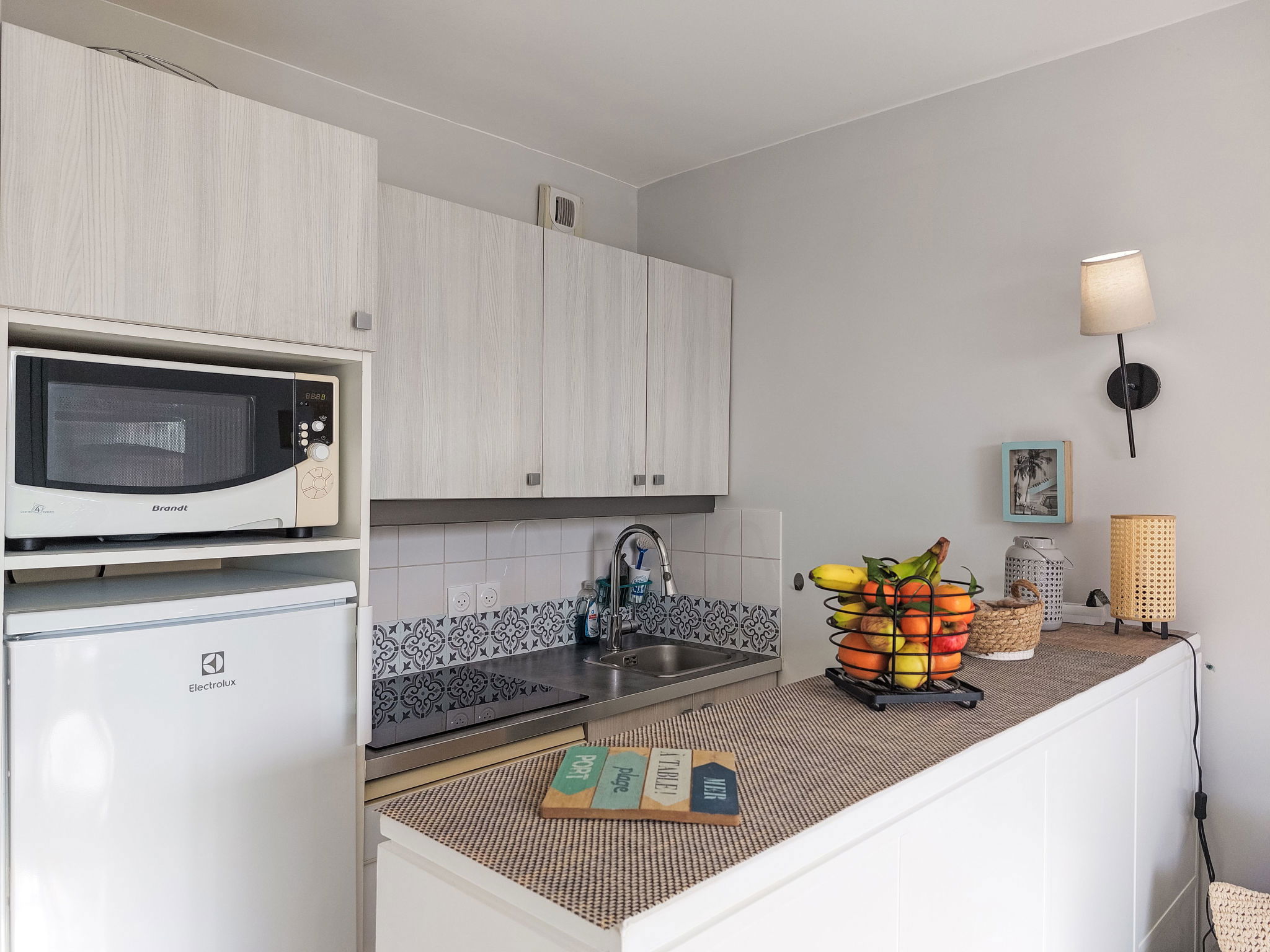 "Ocean for ever", Appartement de 3 pièces 38 m2. Aménagement agréable: entrée. Séjour/salle à manger avec 1 divan-lit double (2 x 80 cm, longueur 190 cm), TV (écran plat). Sortie sur la terrasse. 1 chambre avec 1 grand-lit (140 cm, longueur 190 cm). 1 petite chambre avec 1 x 2 lits superposés (90 cm, longueur 190 cm). Cuisine ouverte (four, lave-vaisselle, 3 plaques vitrocéramiques, grille-pain, bouilloire électrique, micro-ondes, cafetière électrique). Salle de bains, WC séparé. Chauffage électrique. Terrasse 12 m2, couverte, situation sud-ouest. Meubles de terrasse, barbecue électrique, chaises longues (2). Vue éloignée sur la mer. A disposition: lit bébé jusqu'à 2 ans. Internet (Connexion WIFI). Place de parking. Veuillez noter: logement non-fumeur. Maximum 1 animal/ chien autorisé. Détecteur de fumée. La répartition des lits est flexible: Il y a plus de couchages que le nombre maximum de personnes admis dans la location. Ce nombre maximum doit néanmoins être respecté. Les réservations ne sont autorisées que pour des vacances. Annonce d'un particulier (art 155, IV du CGI). 8519400373722
