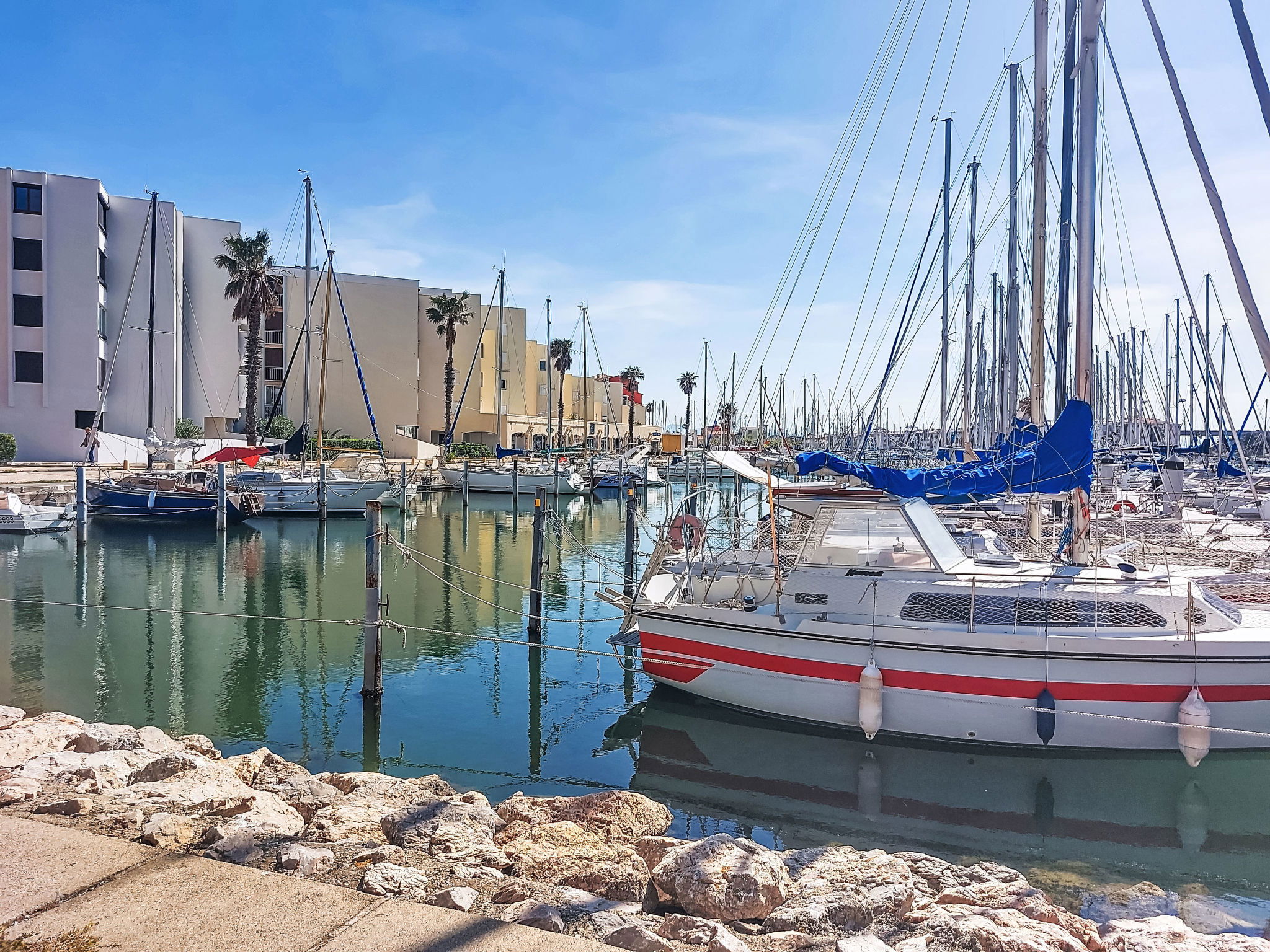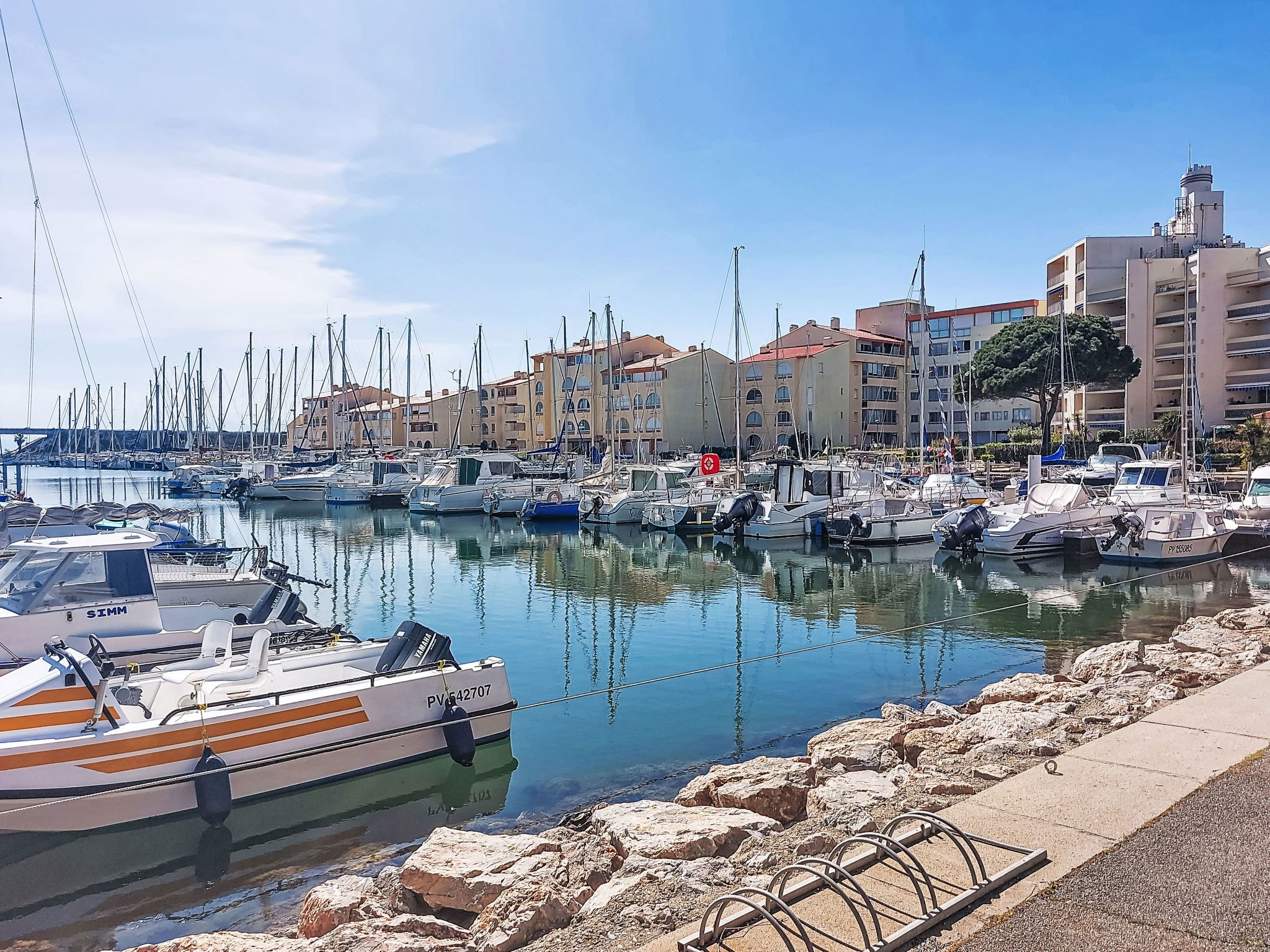 Résidence "Le Lamparo", de 4 étages. Dans la localité, à 250 m du centre de Port Leucate, à 500 m de la mer. Infrastructures de la résidence: place de parking. Supermarché 1.6 km, centre commercial, restaurant, bar 250 m, boulangerie 800 m, café 250 m, zone piétonne 50 m, location de bicyclettes 1.2 km, arrêt de bus "Cauquillous" 300 m, gare ferroviaire "La Franqui" 13 km. Port plaisance 50 m, ecole de surf 1.2 km, ecole de voile 2 km, tennis 100 m, centre équestre 6.7 km. Attractions à proximité: Réserve Africaine de Sigean 35 km, Aqualand 26 km, parcours aventure 3 km, site des dosses 3 km. Les lacs connus sont facilement accessibles: Lac de villeneuve de la Raho 34 km, Lac de Leucate ou de Salses 38 km. Région de randonnées: Sentier du guetteur 8 km, la forteresse de salses 15 km, Sentier du littoral Collioure 40 km. Veuillez noter: animation en saison. Adapté(e) aux familles.