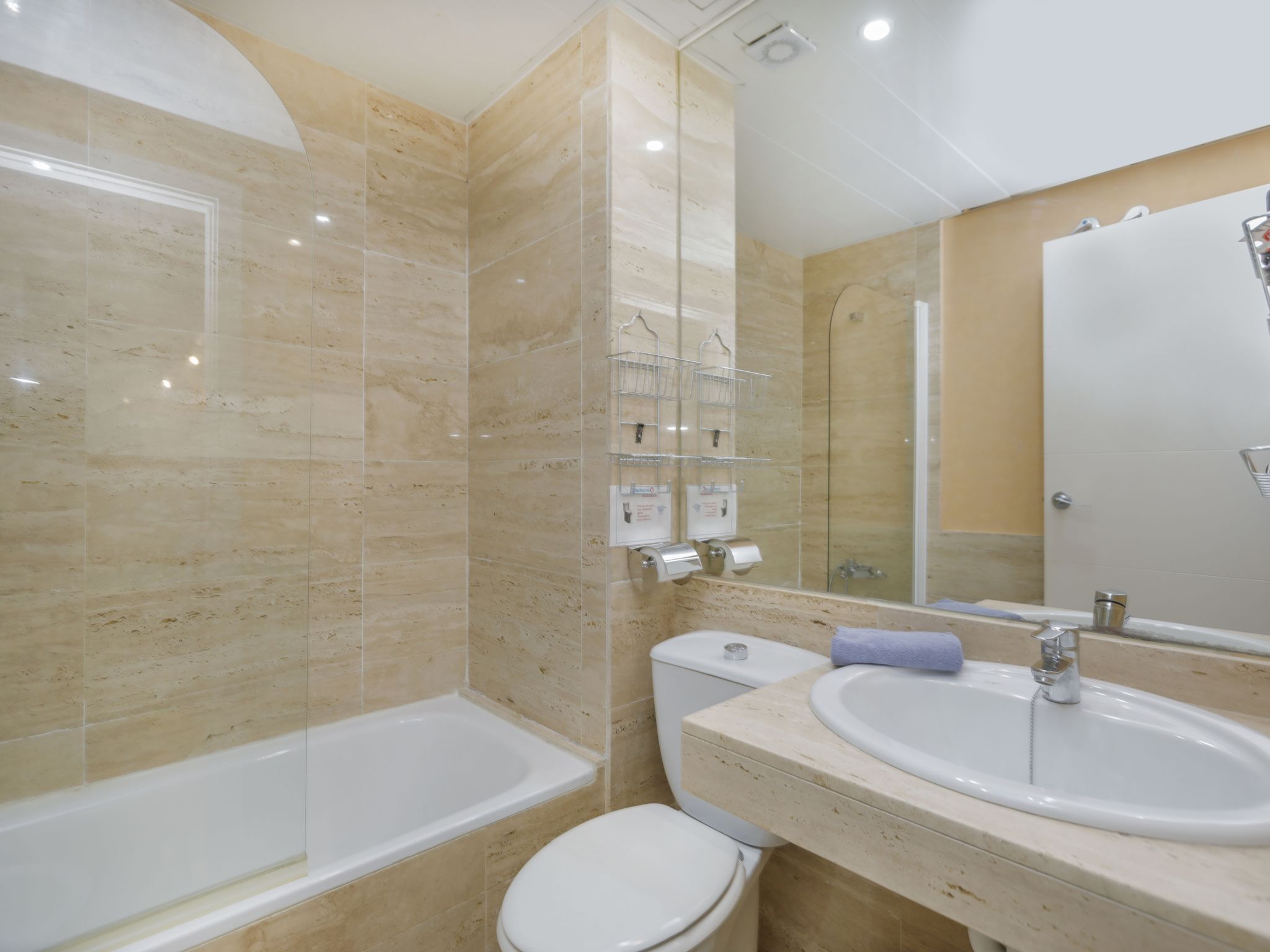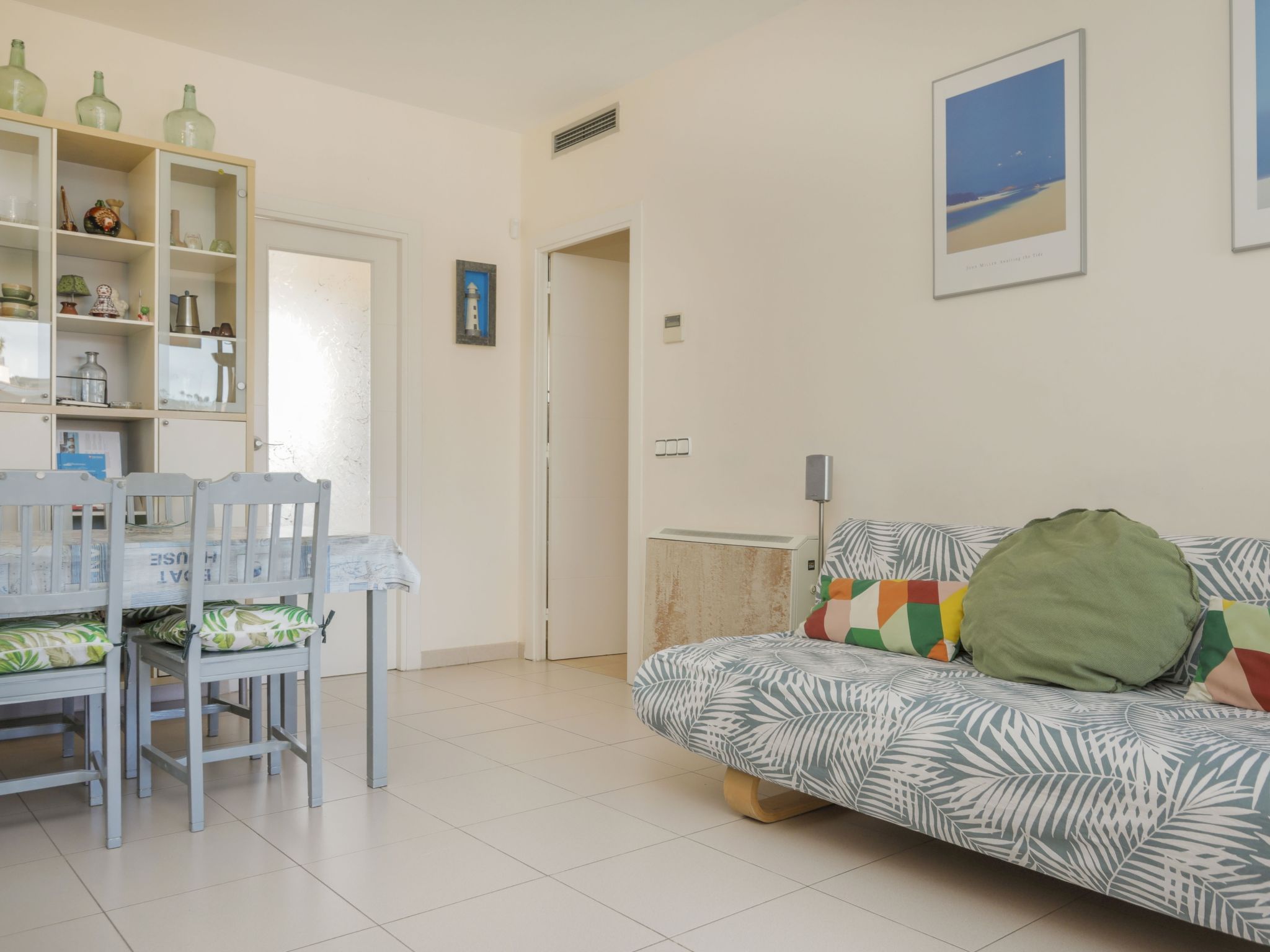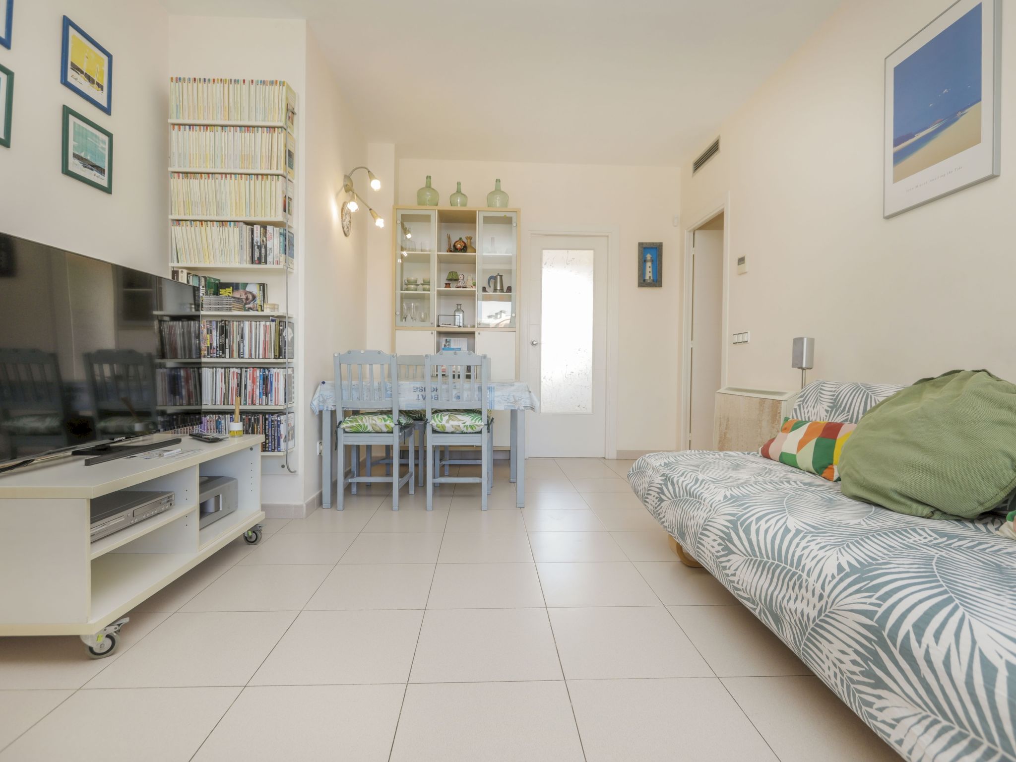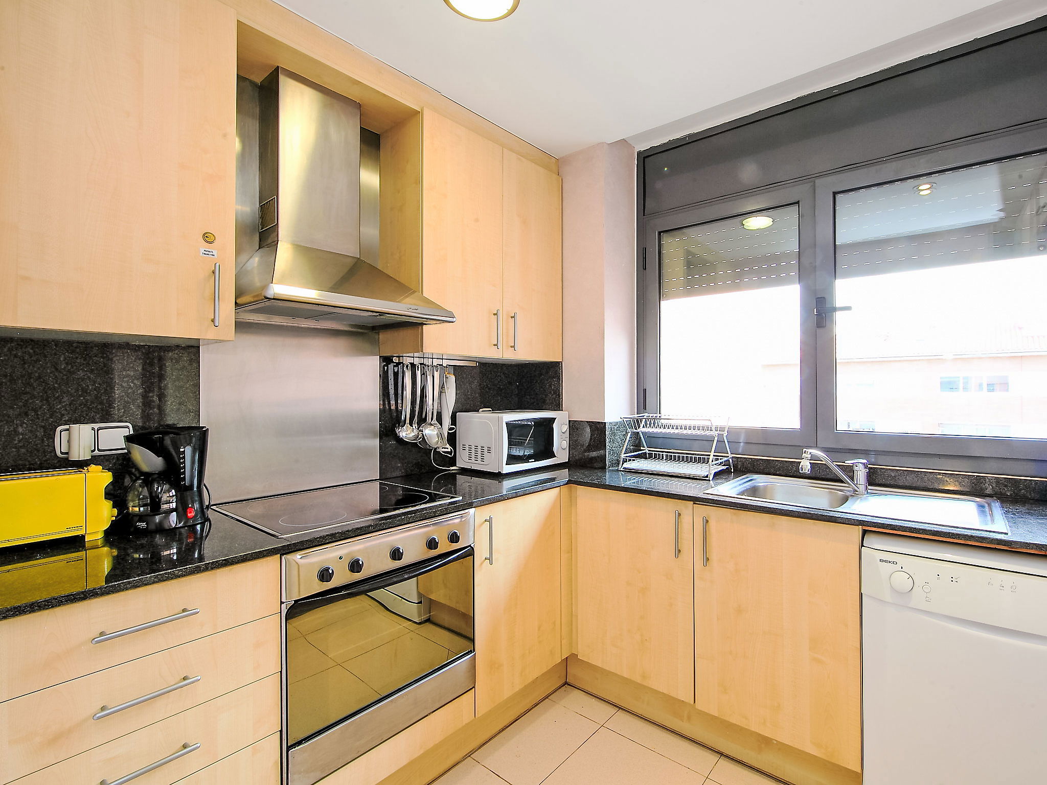 Appartement de 3 pièces 65 m2 au 4ème étage. Aménagement fonctionnel: séjour/salle à manger avec TV (satellite), Télévision numérique, radio et DVD. Sortie sur la terrasse. 1 chambre avec 1 x 2 lits superposés. 1 chambre avec 1 grand-lit (150 cm). Sortie sur la terrasse. Cuisine (4 plaques de cuisson, four, lave-vaisselle, micro-ondes, congélateur). Bain/bidet/WC. Chauffage, air-conditionné. Terrasse 11 m2, couverte. Meubles de terrasse, chaises longues (2). A disposition: lave-linge, fer à repasser, chaise haute pour enfant, lit bébé, sèche-cheveux. Internet (Connexion WIFI). Place de parking No 49 à 100 m, hauteur 240 cm, largeur 420 cm. Veuillez noter: adapté(e) aux familles. Logement non-fumeur parking pour 1 petite voiture. Maximum 1 animal/ chien autorisé. La terrasse de 60 m2 est au dessus de l'appartement accessible par un escalier en colimaçon depuis la terrasse inférieure de la même maison. Les groupes de jeunes sont admis sur demande et avec caution en espèces. HUTG007727 // Reg. Nr.: ESFCTU000017013000564281000000000000000000HUTG0077275