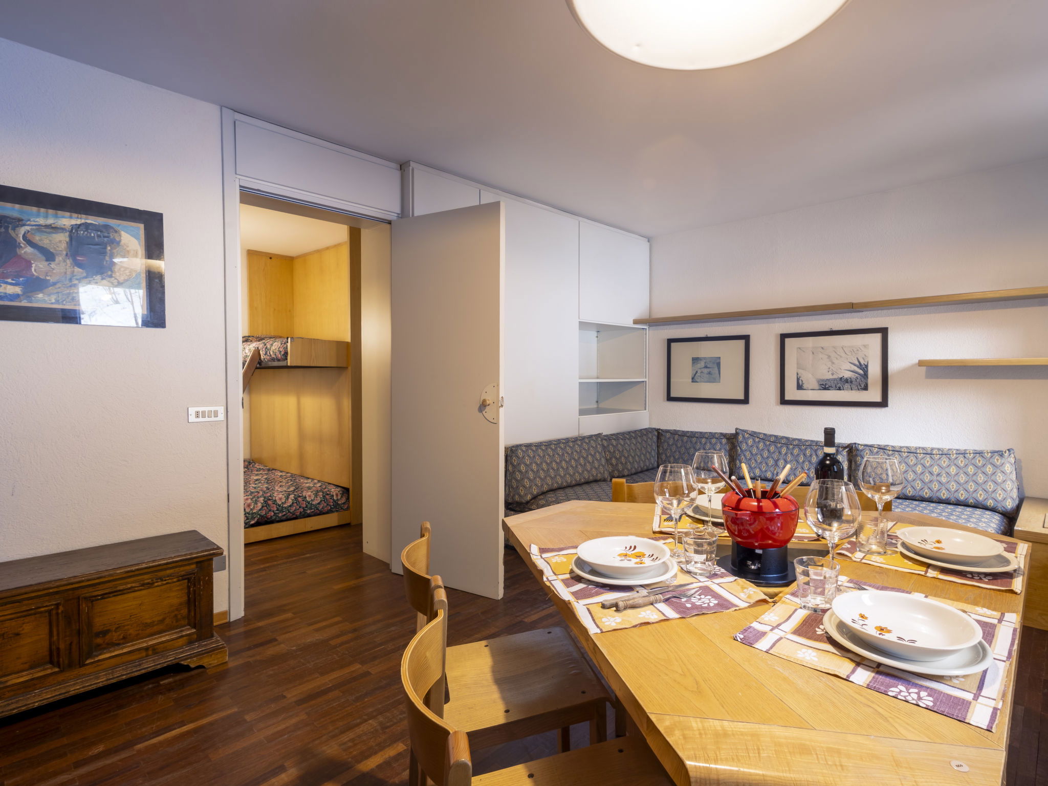 "Fondue", Appartement de 2 pièces 36 m2 au 1er étage. Aménagement fonctionnel et confortable: séjour/salle à manger avec table pour les repas et TV. 1 chambre avec 1 x 2 lits superposés, 1 lit double. Coin cuisine dans l'entrée (4 plaques à induction, grille-pain, bouilloire électrique, cafetière électrique, Capsules pour machine à café (Nespresso), service à fondue (fondue chinoise, fondue au fromage)). Douche/bidet/WC. Chauffage. Vue latérale sur la forêt. A disposition: chaise haute pour enfant, lit bébé, sèche-cheveux. Internet (Connexion WIFI, gratuit). Veuillez noter: adapté(e) aux familles. Réfrigérateur sans compartiment congélateur, logement non-fumeur. Maximum 1 animal/ chien autorisé. Extincteur. IT014035C2HRFU4HW2