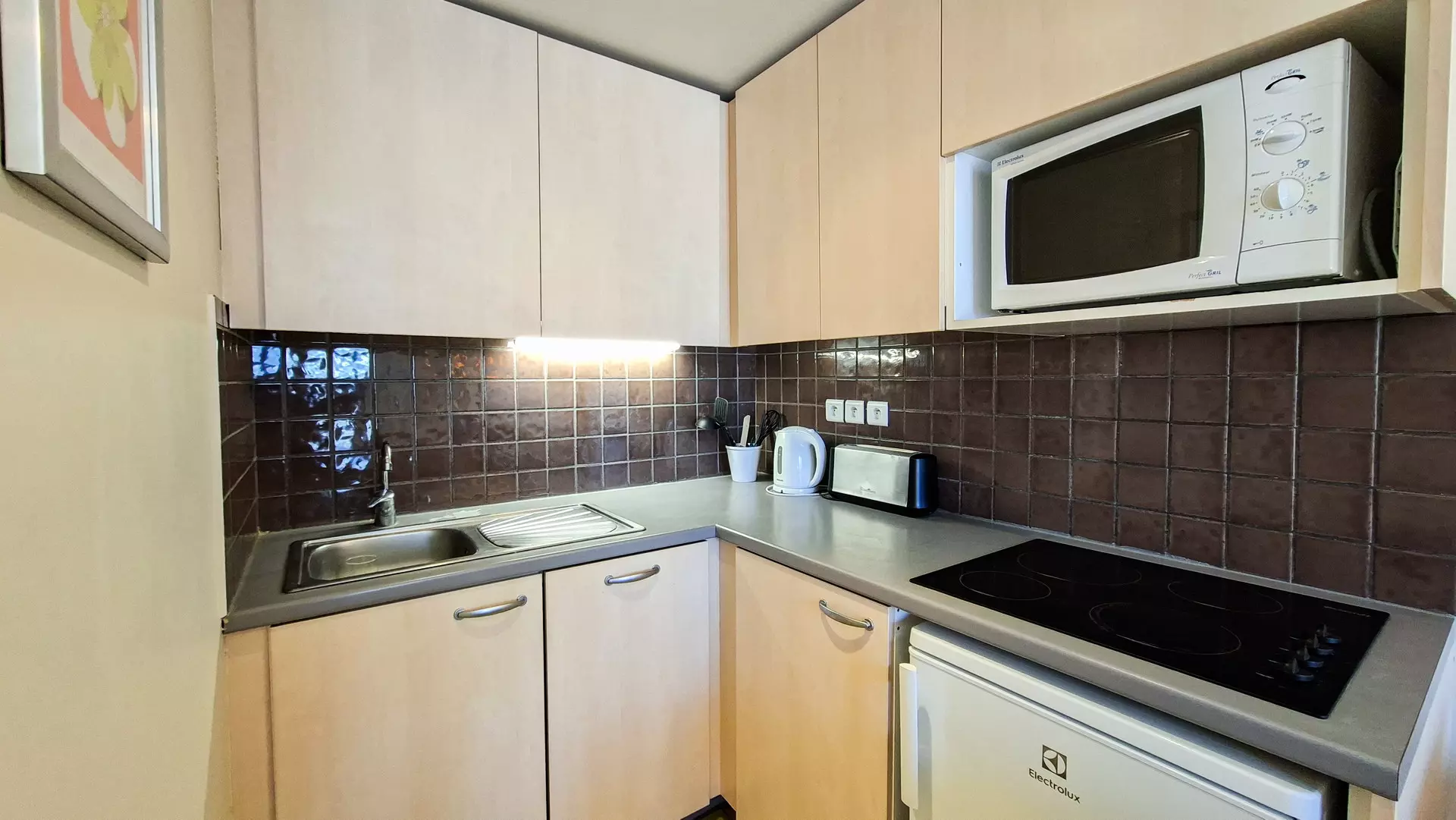 - kitchenette avec plaques vitrocéramiques, four micro-onde, lave-vaisselle