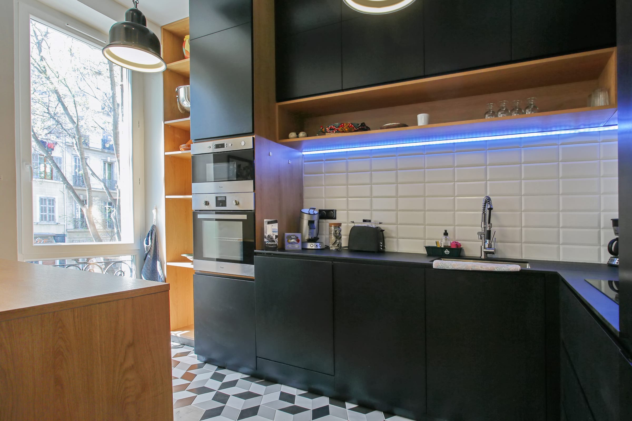 - une cuisine ouverte entièrement équipée (bouilloire, machine à café, grille pain, four, micro-ondes, plaques de cuissons, lave-vaisselle, frigo),
