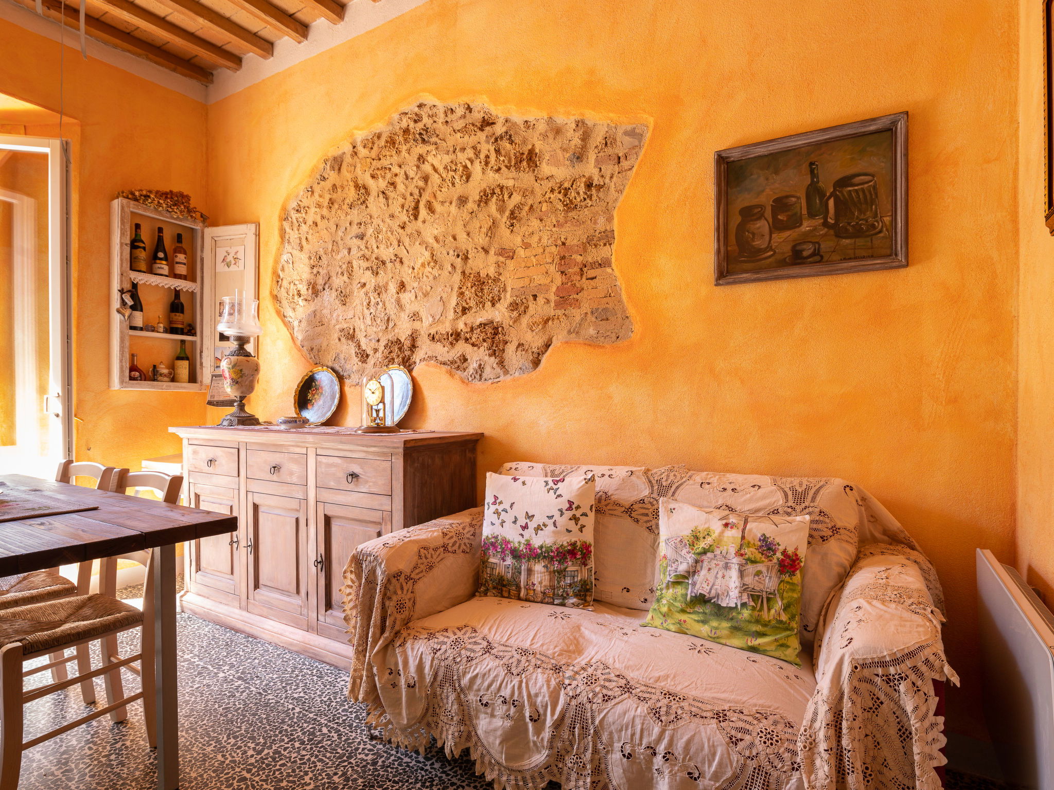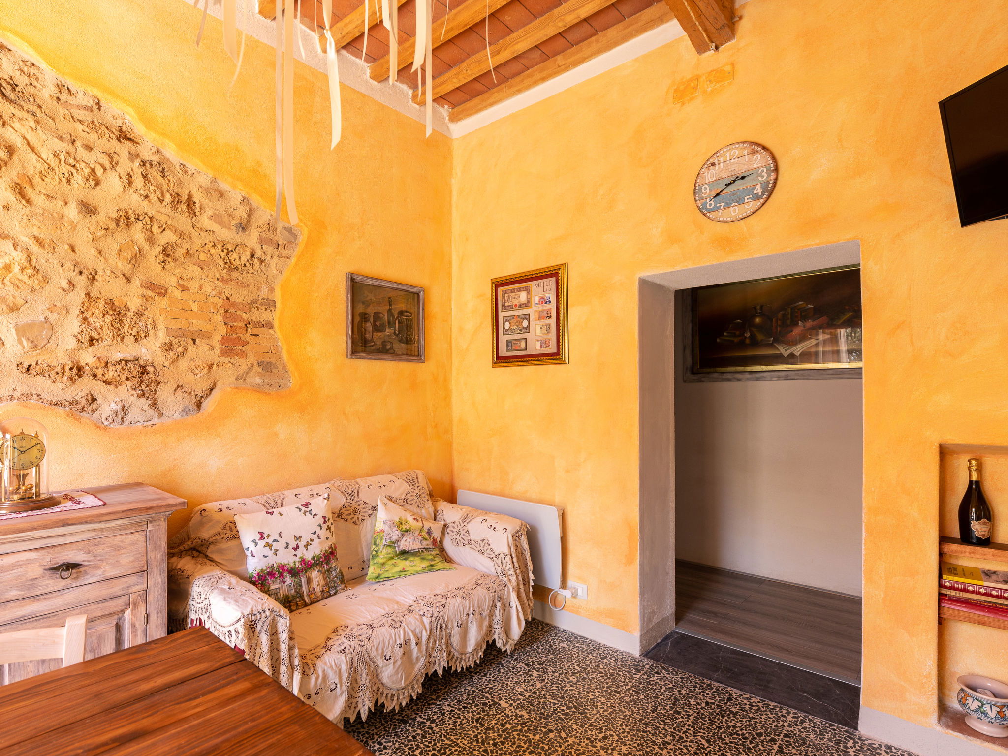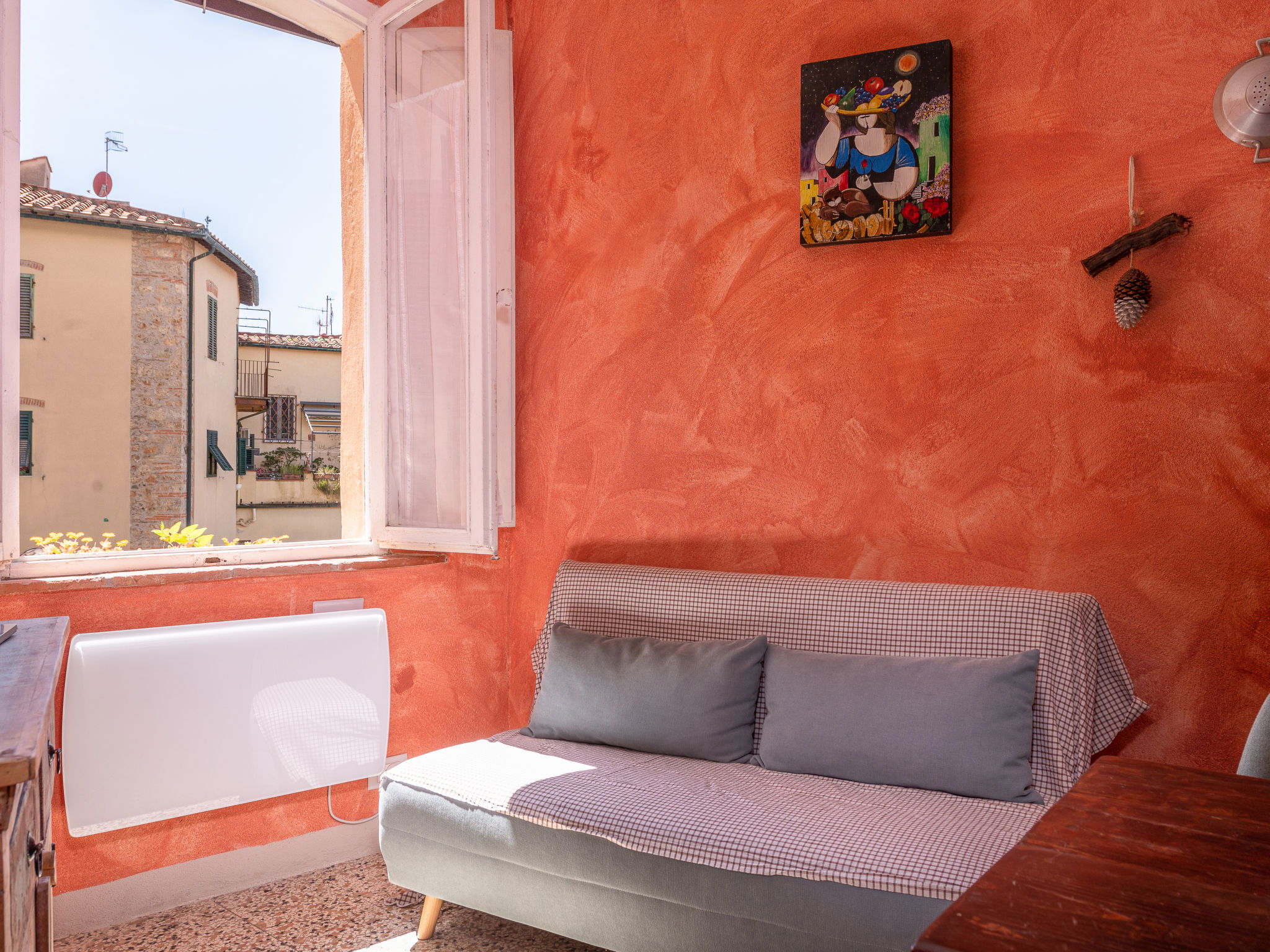 "Casa dell´Arco", Appartement de 4 pièces 85 m2, au rez-de-chaussée. Complètement rénové, aménagement confortable et plaisant: séjour/salle à manger avec table pour les repas et TV. Sortie sur le balcon. Séjour avec cheminée (uniquement à titre de décoration), table pour les repas et TV. 1 grande chambre double. Chambre avec passage avec 1 grand-lit (140 cm). 1 chambre double. Cuisine ouverte (mini-four, lave-vaisselle, 4 plaques vitrocéramiques, cafetière électrique). Sortie sur le balcon. 2 douches/bidet/WC. Chauffage électrique. Petit balcon. Mobilier de balcon. A disposition: lave-linge, chaise haute pour enfant, lit bébé jusqu'à 2 ans. Veuillez noter: logement non-fumeur pas de parking. 1 animal/ chien de petite taille autorisé. Entrée privée, détecteur de fumée, extincteur. IT053015B45JR23VHC