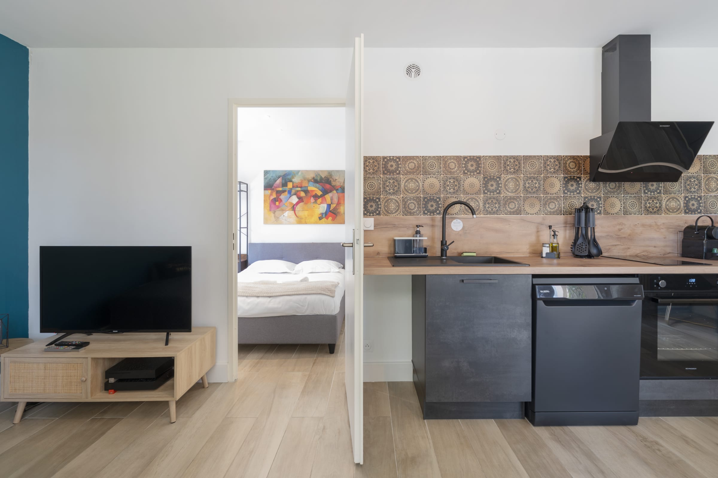 - Cuisine entièrement équipée : four, plaques, micro-ondes, cafetière Nespresso, lave-vaisselle, réfrigérateur