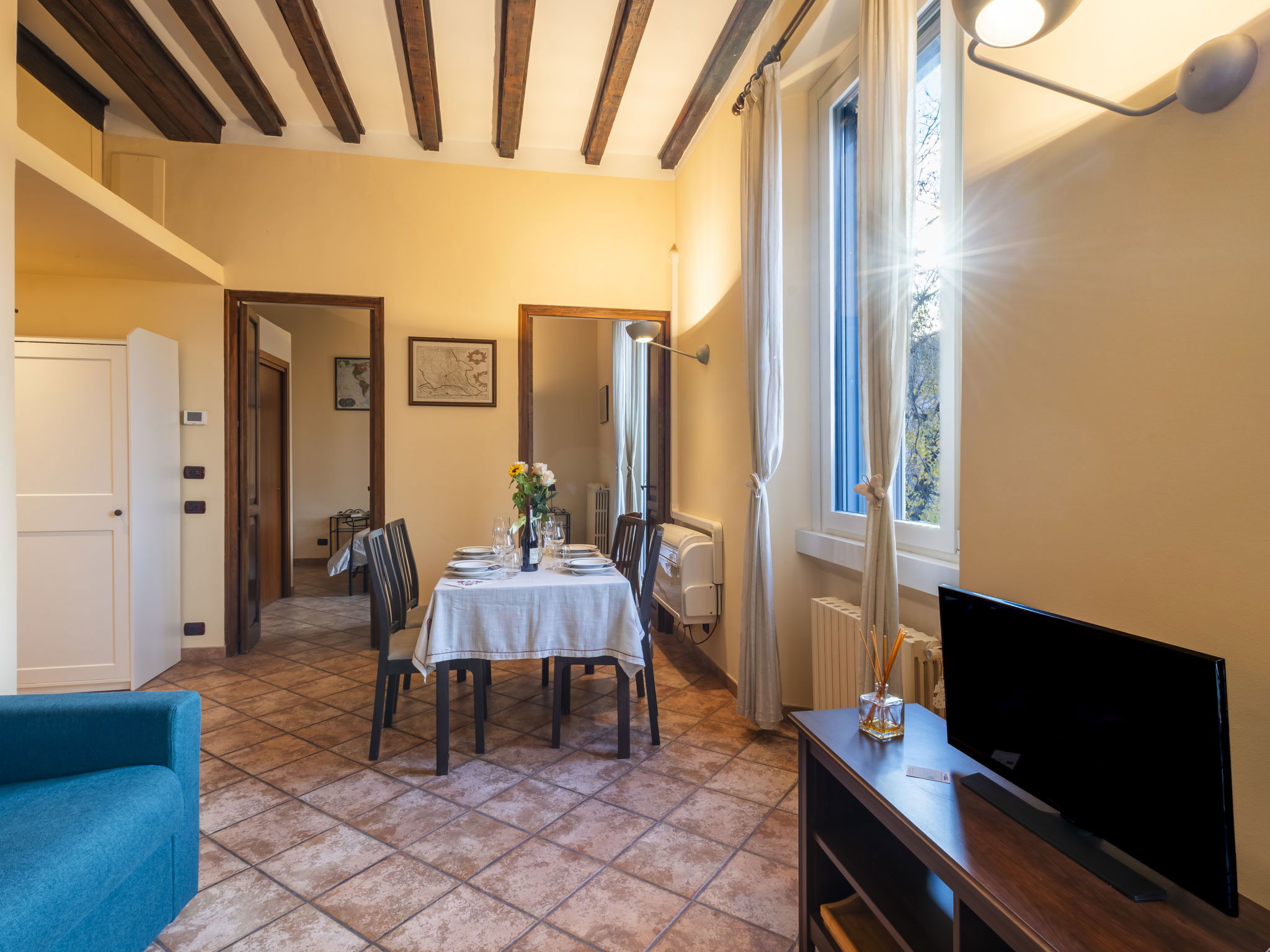 Appartement de 2 pièces 65 m2 au 3ème étage, situation ouest. Spacieux et clair, aménagement fonctionnel et confortable: grand séjour/salle à manger avec 1 divan-lit double, table pour les repas et TV. 1 chambre avec 1 lit double. Coin cuisine (four, 2 feux, grille-pain, bouilloire électrique, micro-ondes, congélateur, cafetière électrique, Capsules pour machine à café (Nespresso) inclus). Douche/bidet/WC. Chauffage, air-conditionné. Vue panoramique sur le cité et Mura Spagnole (1548 d.c.). A disposition: lave-linge, fer à repasser, chaise haute pour enfant, lit bébé, sèche-cheveux. Internet (Connexion WIFI, gratuit). Veuillez noter: adapté(e) aux familles. Logement non-fumeur. Maximum 1 animal/ chien autorisé. Détecteur de fumée, extincteur. IT015146C2ZWEIU41H