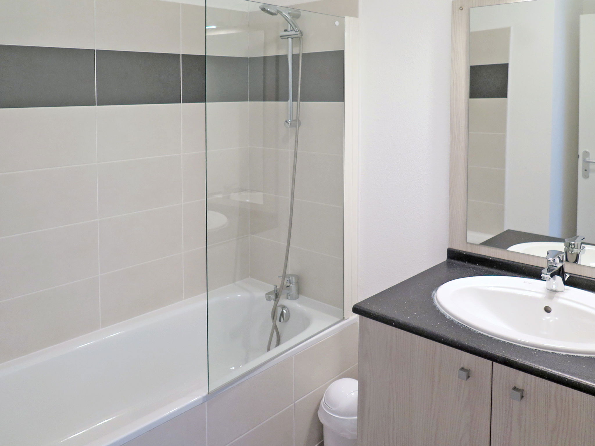 Appartement de 2 pièces 33 m2. Clair, aménagement fonctionnel: séjour/chambre à coucher avec 1 divan-lit double, table pour les repas et TV à louer. 1 chambre avec 1 grand-lit. Coin cuisine (lave-vaisselle, 2 plaques vitrocéramiques, grille-pain, micro-ondes, cafetière électrique). WC séparé, bains ou douche. Chauffage électrique. Balcon ou terrasse. Meubles de terrasse, mobilier de balcon. A disposition: Internet (Connexion WIFI, en sus). Veuillez noter: logement non-fumeur. Maximum 1 animal/ chien autorisé. Détecteur de fumée, extincteur. Cette location est un exemple de location / d'appartement. Information importante: Le logement peut être au rez-de-chaussée ou au 1er étage avec accès par un escalier extérieur.