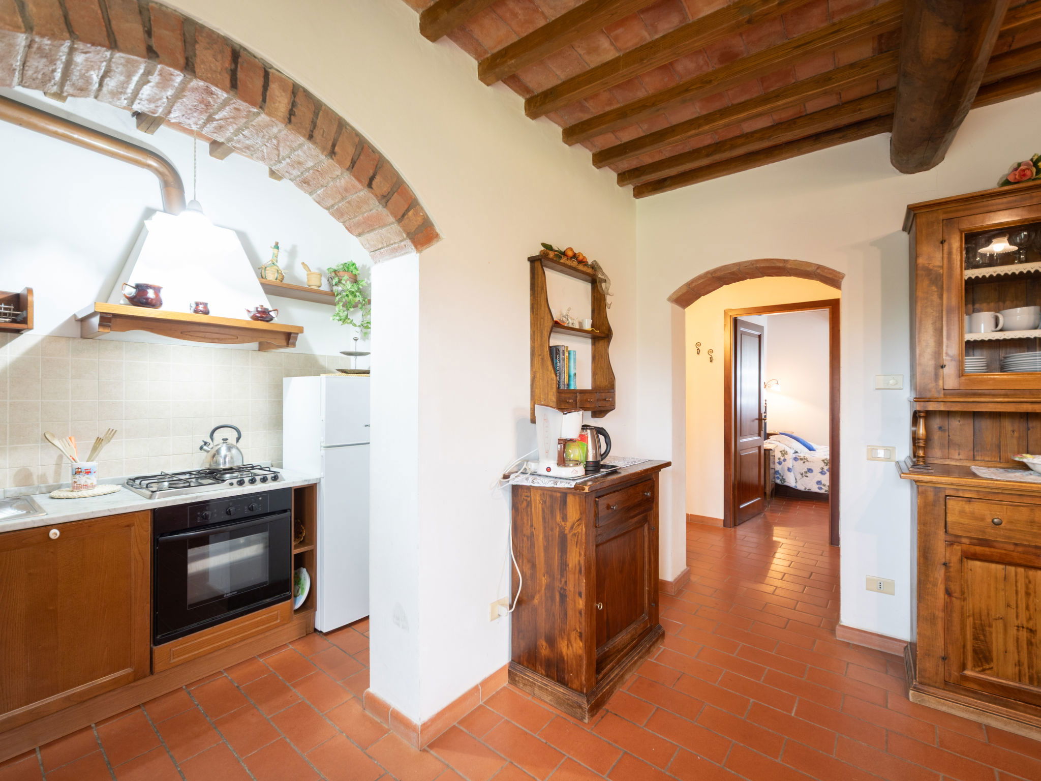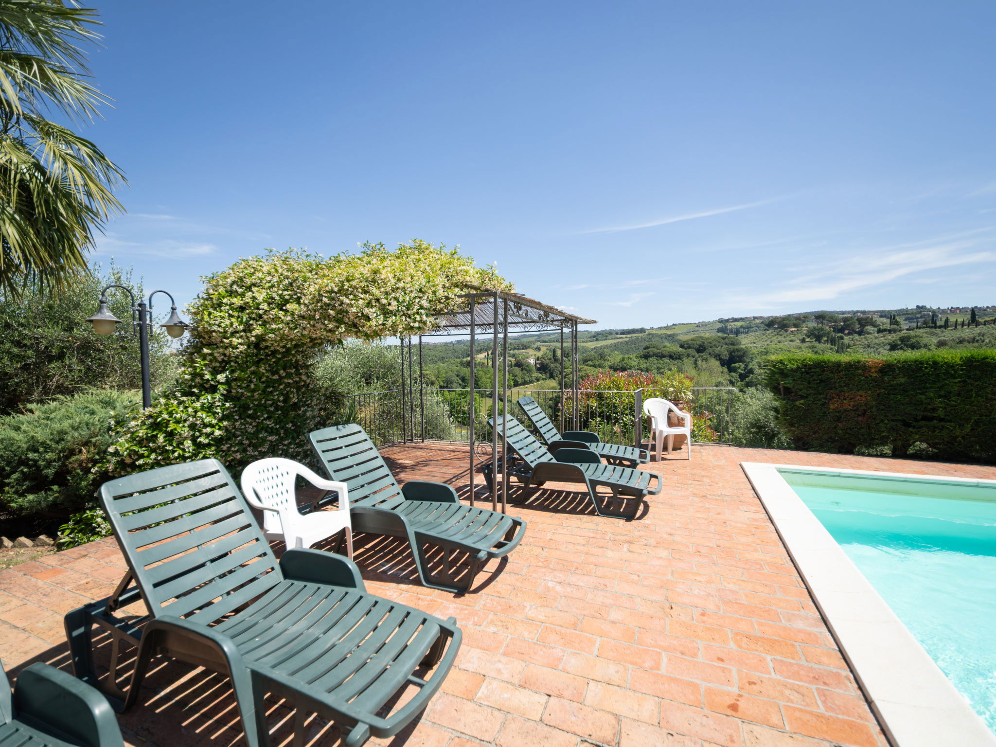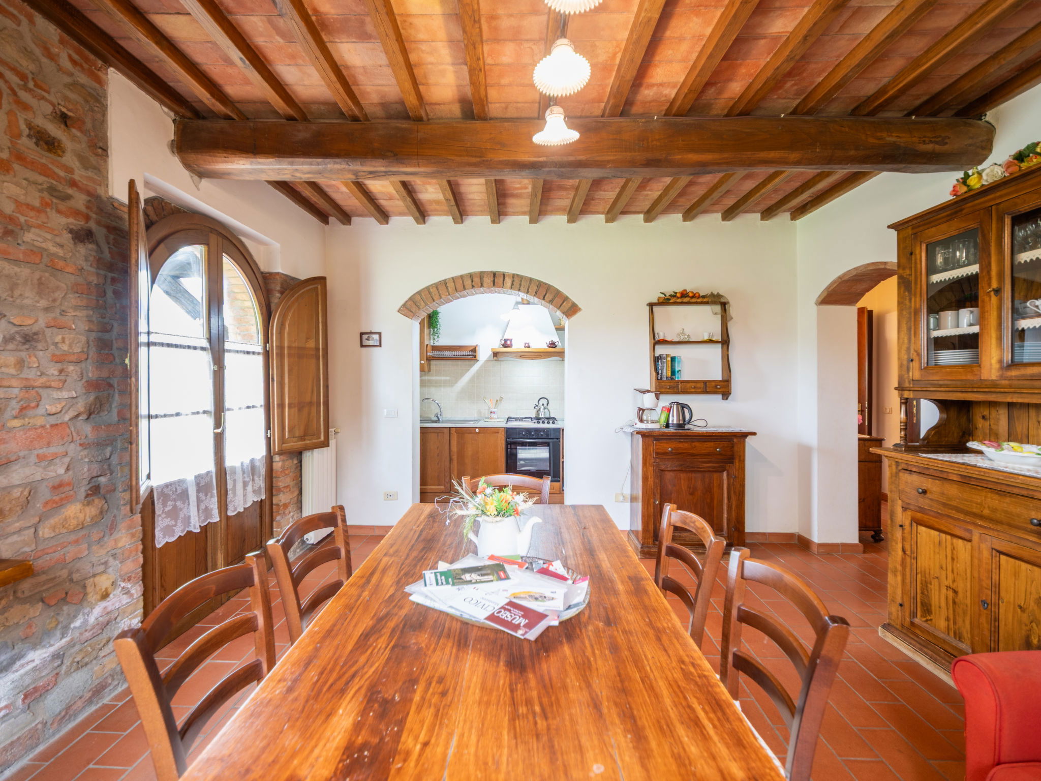 Montaione à 19 km de San Gimignano: Le domaine de vacances "Casa Baccelli" dispose de 7 appartements. Le propriétaire en occupe un. Le domaine se trouve dans une situation en pente, à 2 km de Montaione, dans une oasis de calme. Idéal pour des vacances reposantes au milieu du vert de la Toscane. Point de départ idéal pour des excursions vers les villes d'art régionales comme par exemple Volterra (20 km), Siena et Lucca (50 km) ainsi que vers les plages de la côte étrusque (60 km). Domaine agricole "Baccelli". 7 appartements dans la même entité. À 2 km du centre de Montaione, à 15 km du centre de San Gimignano, à 50 km du centre de Firenze, situation isolée, tranquille, ensoleillée sur une colline. En commun: jardin (clôturé), piscine (15 x 9 m, profondeur 120 - 200 cm, disponibilité saisonnière: 27.Avr. - 28.Sep.). Meubles de jardin, barbecue. Infrastructures de la résidence: Connexion WIFI, chauffage central, chauffage payable localement, possibilité de chauffage uniquement du 01.Nov. - 07.Avr.. Accès en voiture jusqu'à la maison (800 m chemin non goudronné). Place de parking près de la maison. Magasins 2 km, magasin d'alimentation 2 km, supermarché 2 km, arrêt de bus 2 km, gare ferroviaire "Castelfiornetino" 12 km. Terrain de golf (18 trous) 17 km, tennis 5 km. Attractions à proximité: Certaldo 19 km, San Miniato 30 km, San Casciano in Val di Pesa 40 km, Colle Val d'Elsa 40 km. WI-FI dans la zone de la piscine et le jardin.
