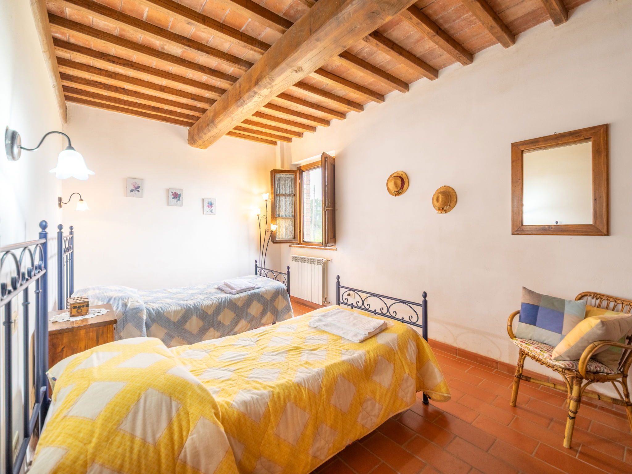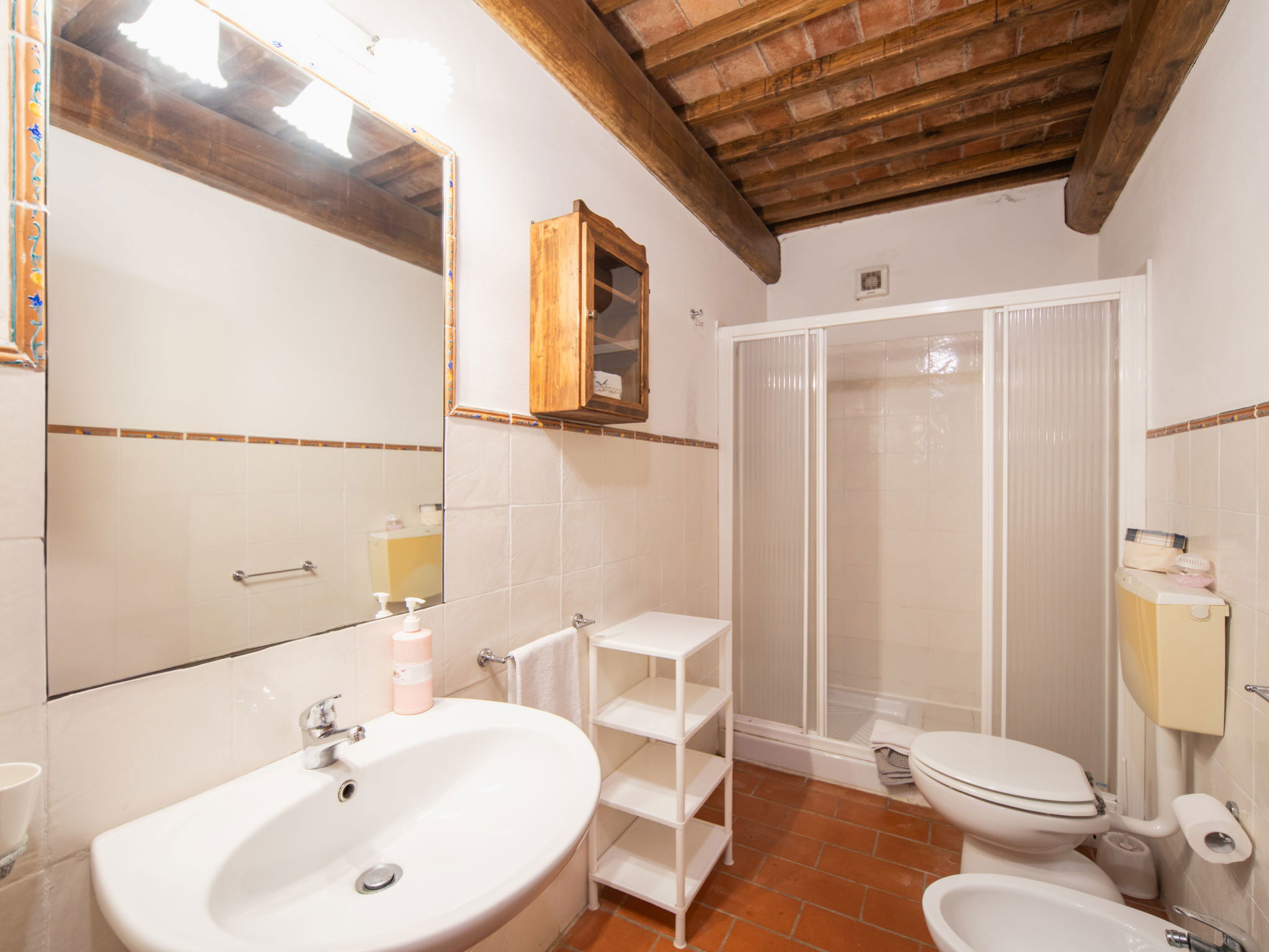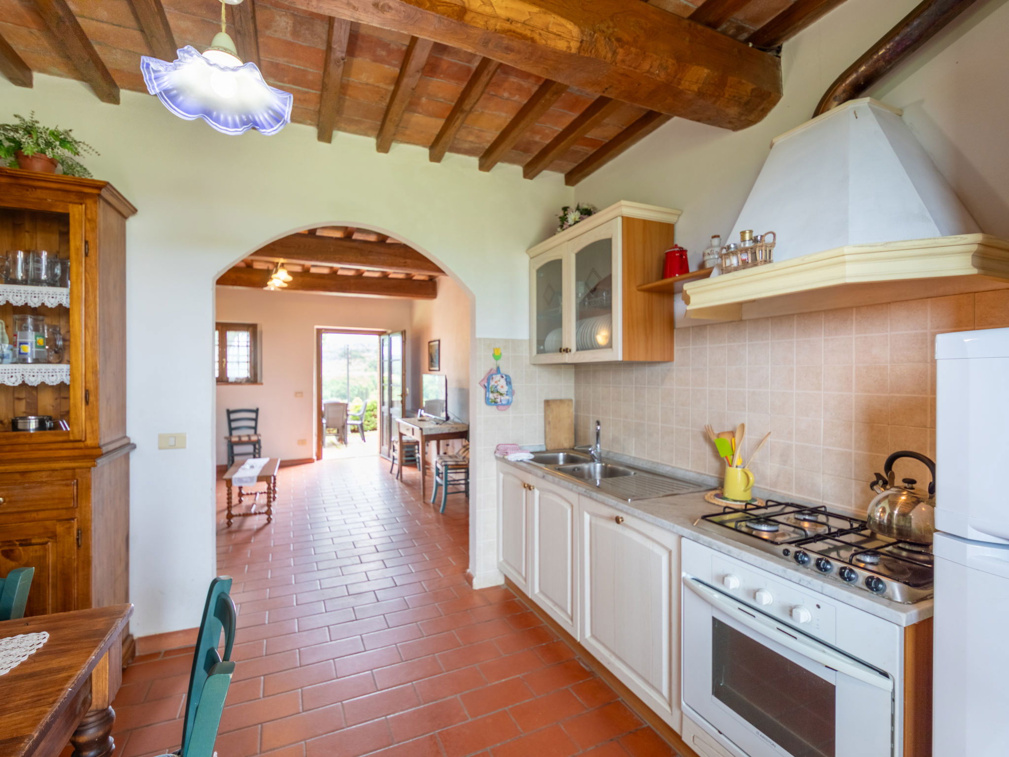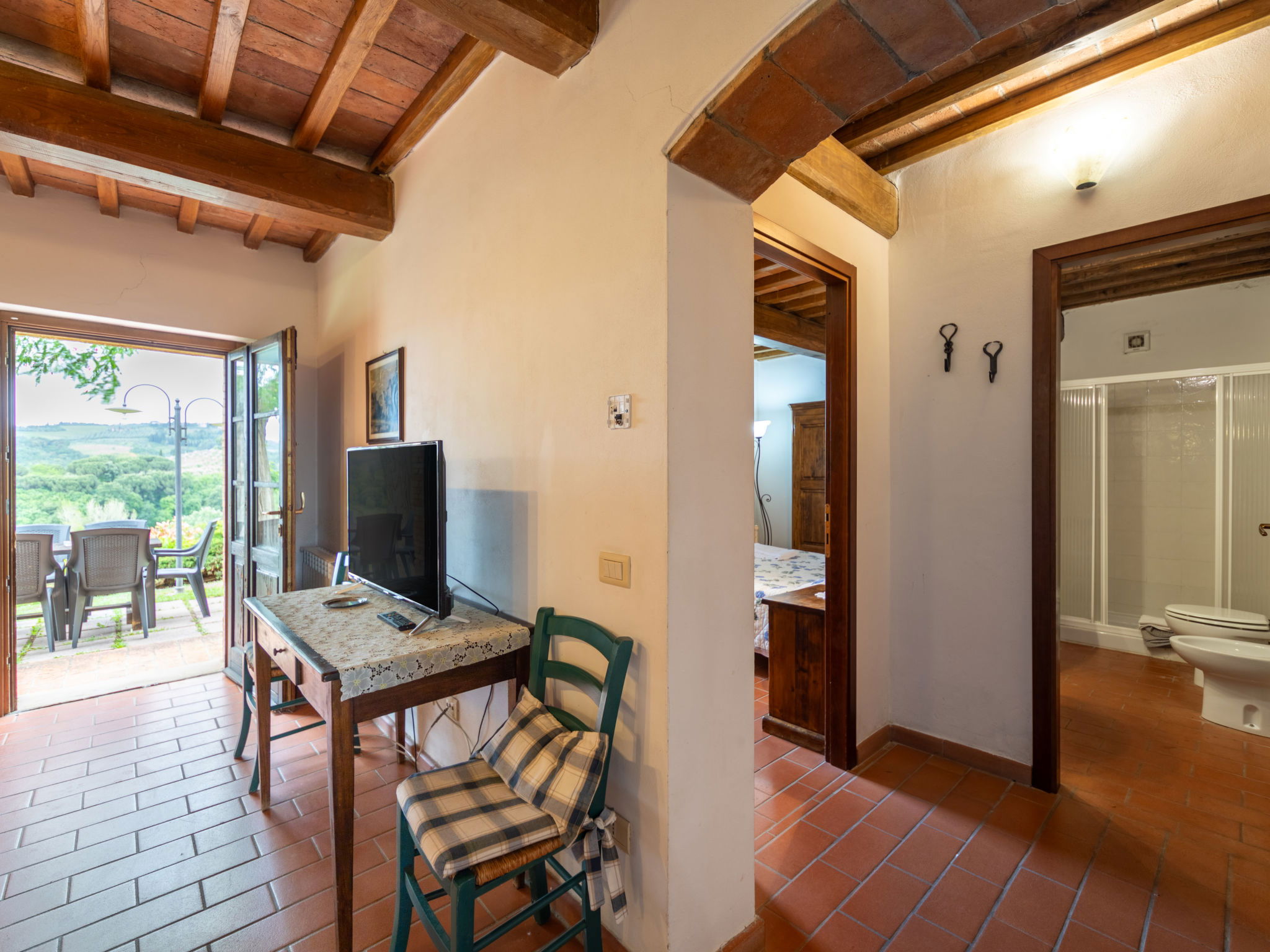 Montaione à 19 km de San Gimignano: Le domaine de vacances "Casa Baccelli" dispose de 7 appartements. Le propriétaire en occupe un. Le domaine se trouve dans une situation en pente, à 2 km de Montaione, dans une oasis de calme. Idéal pour des vacances reposantes au milieu du vert de la Toscane. Point de départ idéal pour des excursions vers les villes d'art régionales comme par exemple Volterra (20 km), Siena et Lucca (50 km) ainsi que vers les plages de la côte étrusque (60 km). Domaine agricole "Baccelli". 7 appartements dans la même entité. À 2 km du centre de Montaione, à 15 km du centre de San Gimignano, à 50 km du centre de Firenze, situation isolée, tranquille, ensoleillée sur une colline. En commun: jardin (clôturé), piscine (15 x 9 m, profondeur 120 - 200 cm, disponibilité saisonnière: 27.Avr. - 28.Sep.). Meubles de jardin, barbecue. Infrastructures de la résidence: Connexion WIFI, chauffage central, chauffage payable localement, possibilité de chauffage uniquement du 01.Nov. - 07.Avr.. Accès en voiture jusqu'à la maison (800 m chemin non goudronné). Place de parking près de la maison. Magasins 2 km, magasin d'alimentation 2 km, supermarché 2 km, arrêt de bus 2 km, gare ferroviaire "Castelfiornetino" 12 km. Terrain de golf (18 trous) 17 km, tennis 5 km. Attractions à proximité: Certaldo 19 km, San Miniato 30 km, San Casciano in Val di Pesa 40 km, Colle Val d'Elsa 40 km. WI-FI dans la zone de la piscine et le jardin.