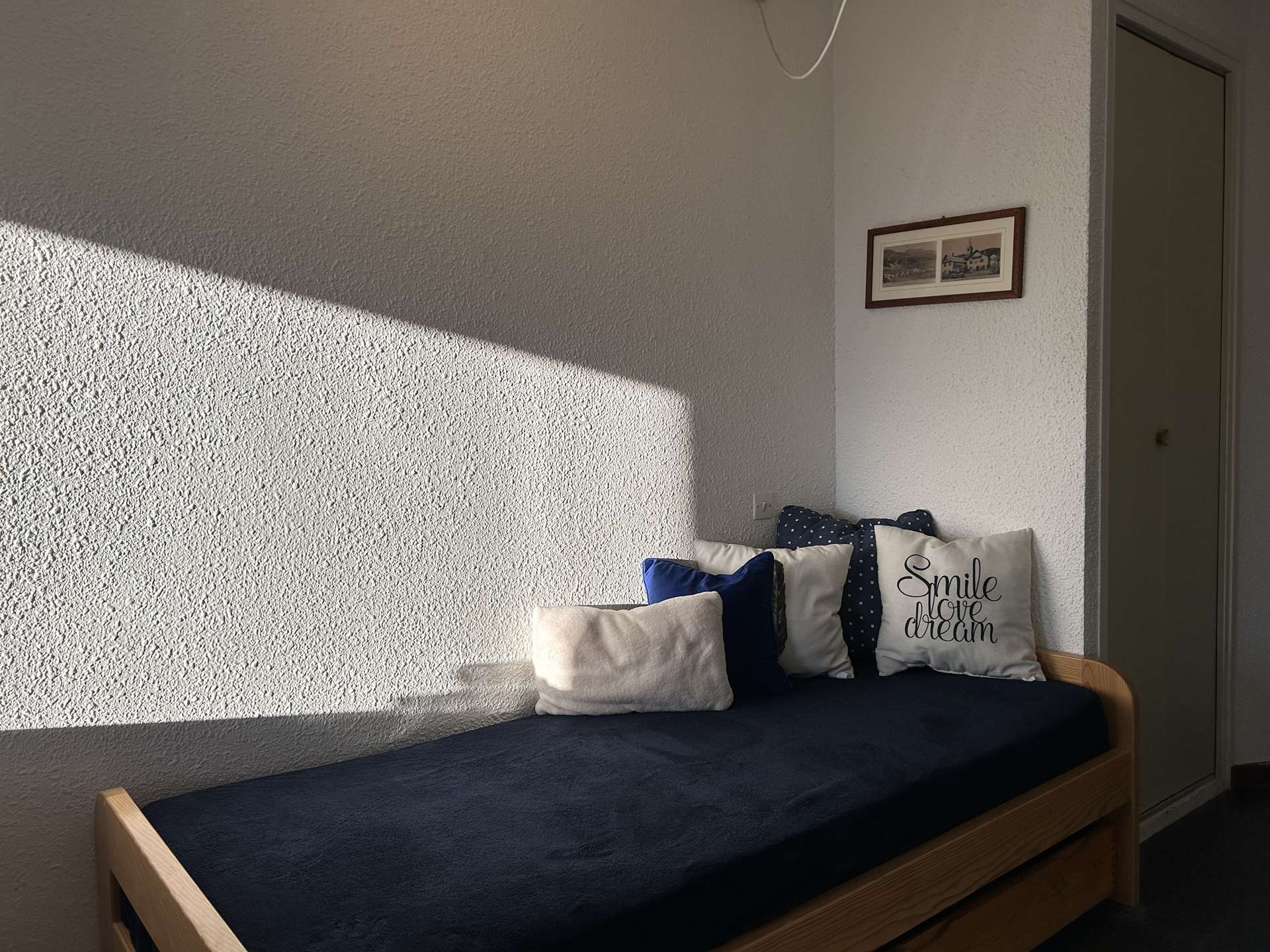 - un séjour avec un lit 2 personnes en 160cm, et une banquette lit une personne en face du coin cuisine.