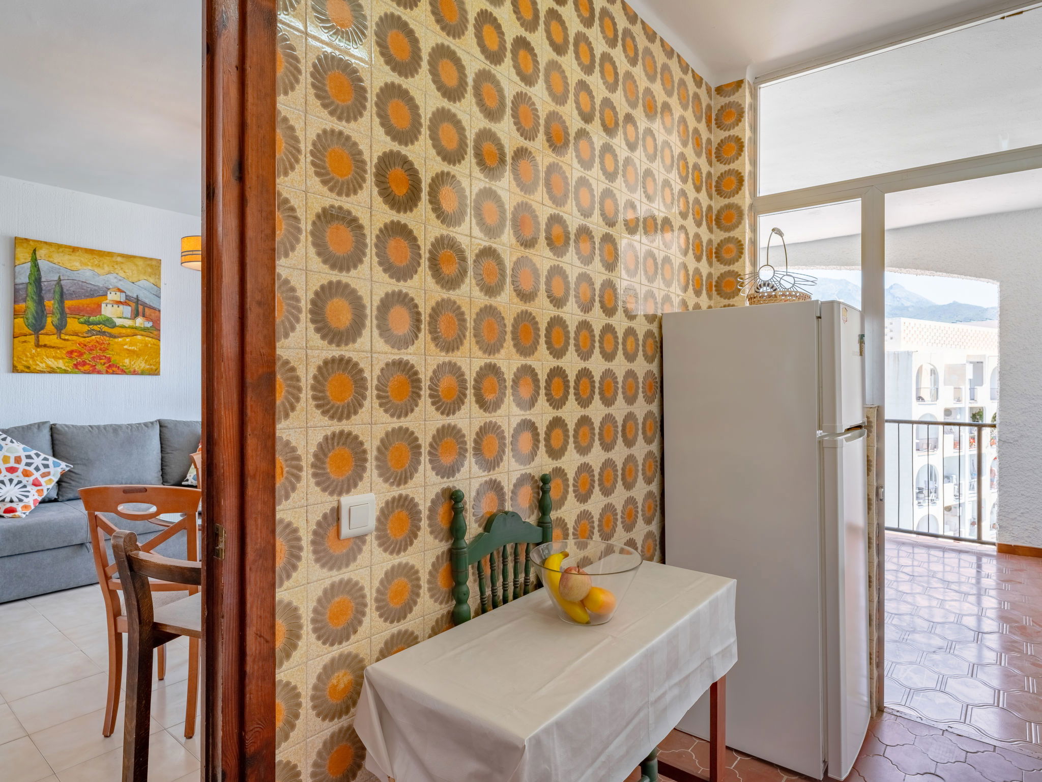 Nerja: Petite résidence accueillante, simple "Mirador del Bendito". Au centre de Nerja, situation ensoleillée, à 50 m de la mer, à 50 m de la plage, route à traverser. En commun: jardin, piscine rectangulaire (10 x 5 m, profondeur 135 - 180 cm, disponibilité saisonnière: 01.Jun. - 30.Oct.). Infrastructures de la Maison: lave-linge. Magasins 50 m, magasin d'alimentation 100 m, supermarché 500 m, centre commercial 23 km, restaurant, bar, boulangerie, café 50 m, zone piétonne 100 m, location de bicyclettes 200 m, biergarten 50 m, arrêt de bus 650 m, gare ferroviaire "Malaga" 50 km, plage de sable "Burriana" 50 m, centre de plongée 200 m. Port plaisance 20 km, marina 20 km, terrain de golf (18 trous) 22 km, ecole de surf 1.8 km, ecole de voile 20 km, tennis 1 km. Attractions à proximité: Frigiliana, Almuñecar, Maro, Torre del Mar, Malaga, Granada. Les domaines skiables de renommée sont facilement accessibles: Sierra Nevada. Région de randonnées: Sierra Tejeda, Sierra Almijara. Le propriétaire n'accepte pas les groupes de jeunes. Veuillez noter: Déchargement et chargement des bagages à la location de vacances.