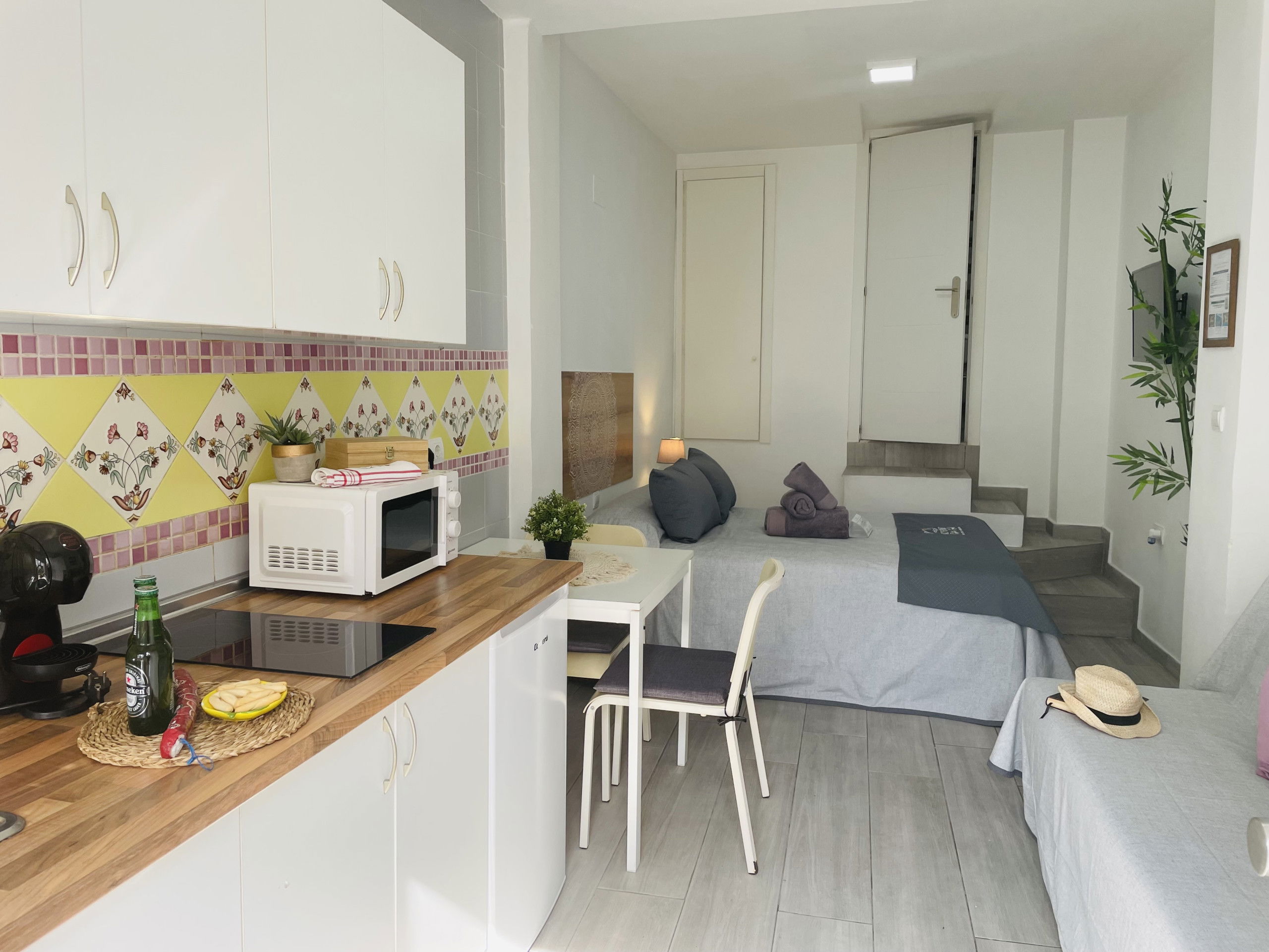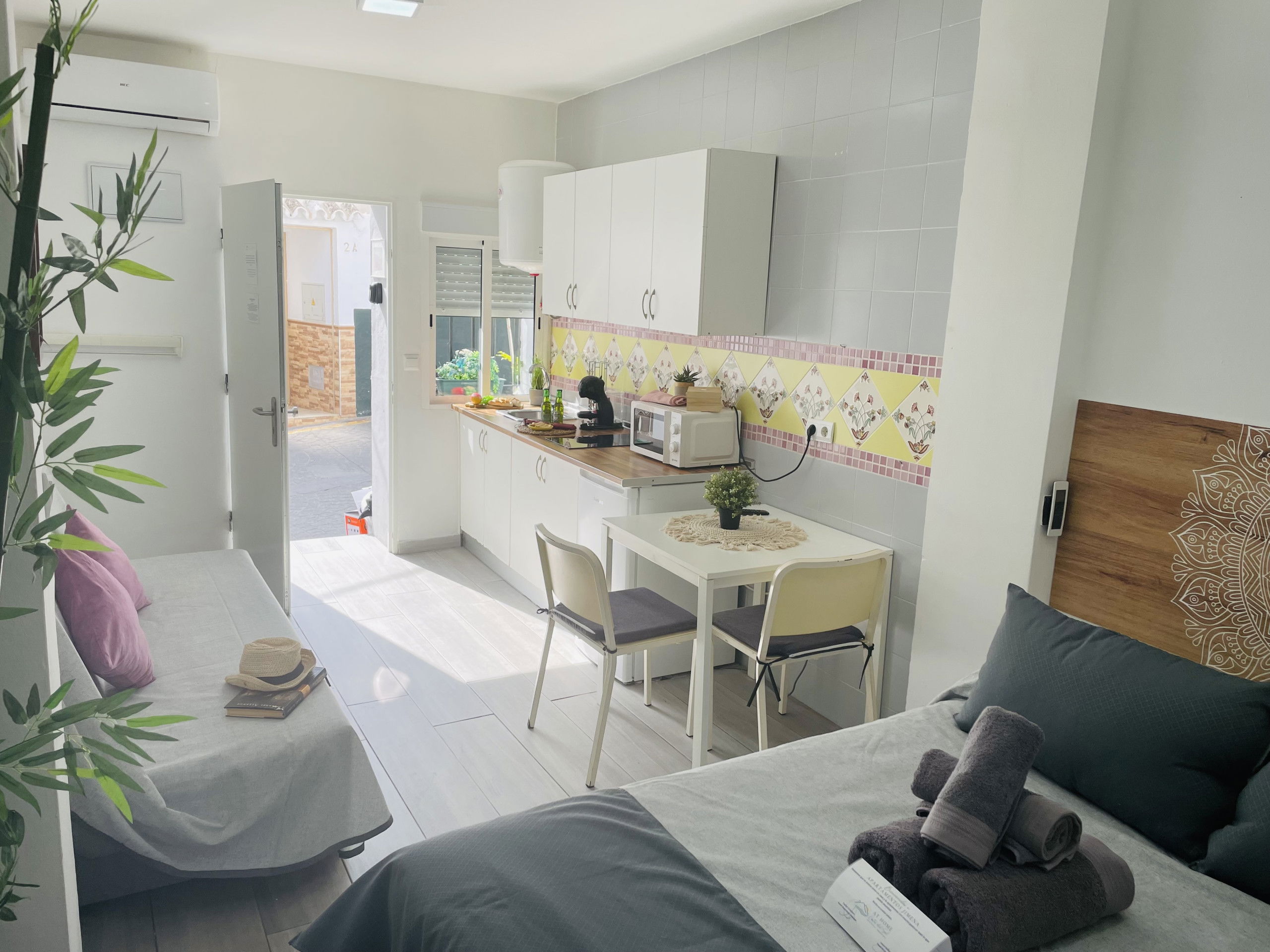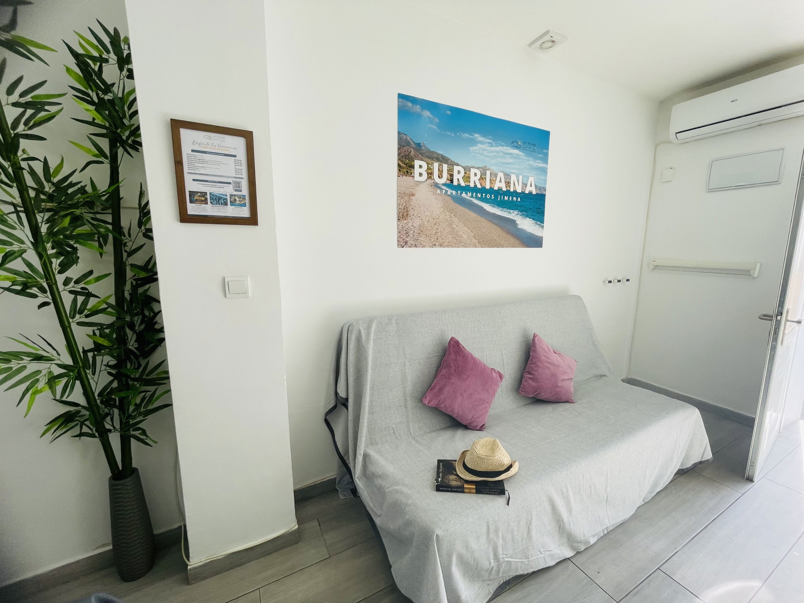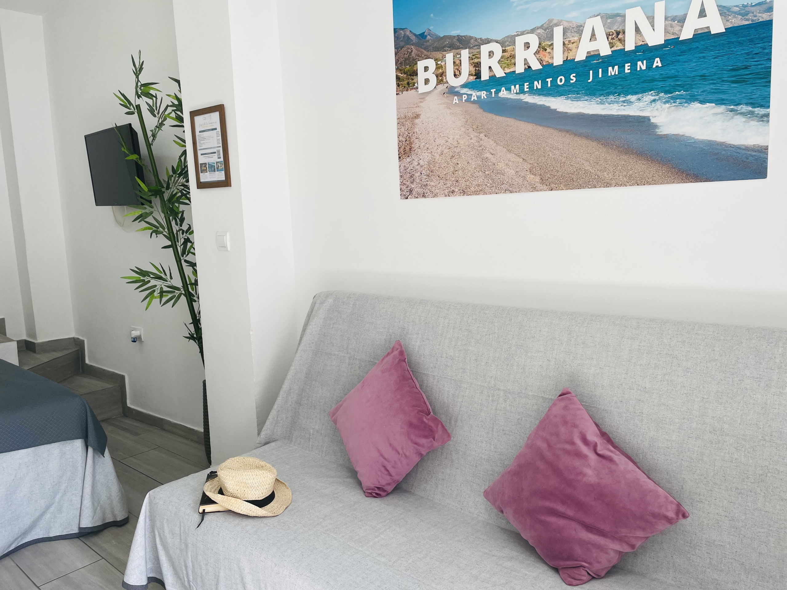 Studio Burriana au cœur de Nerja. Avec un lit double et un canapé-lit, il est parfait pour 2 adultes et un enfant ou 3 adultes.