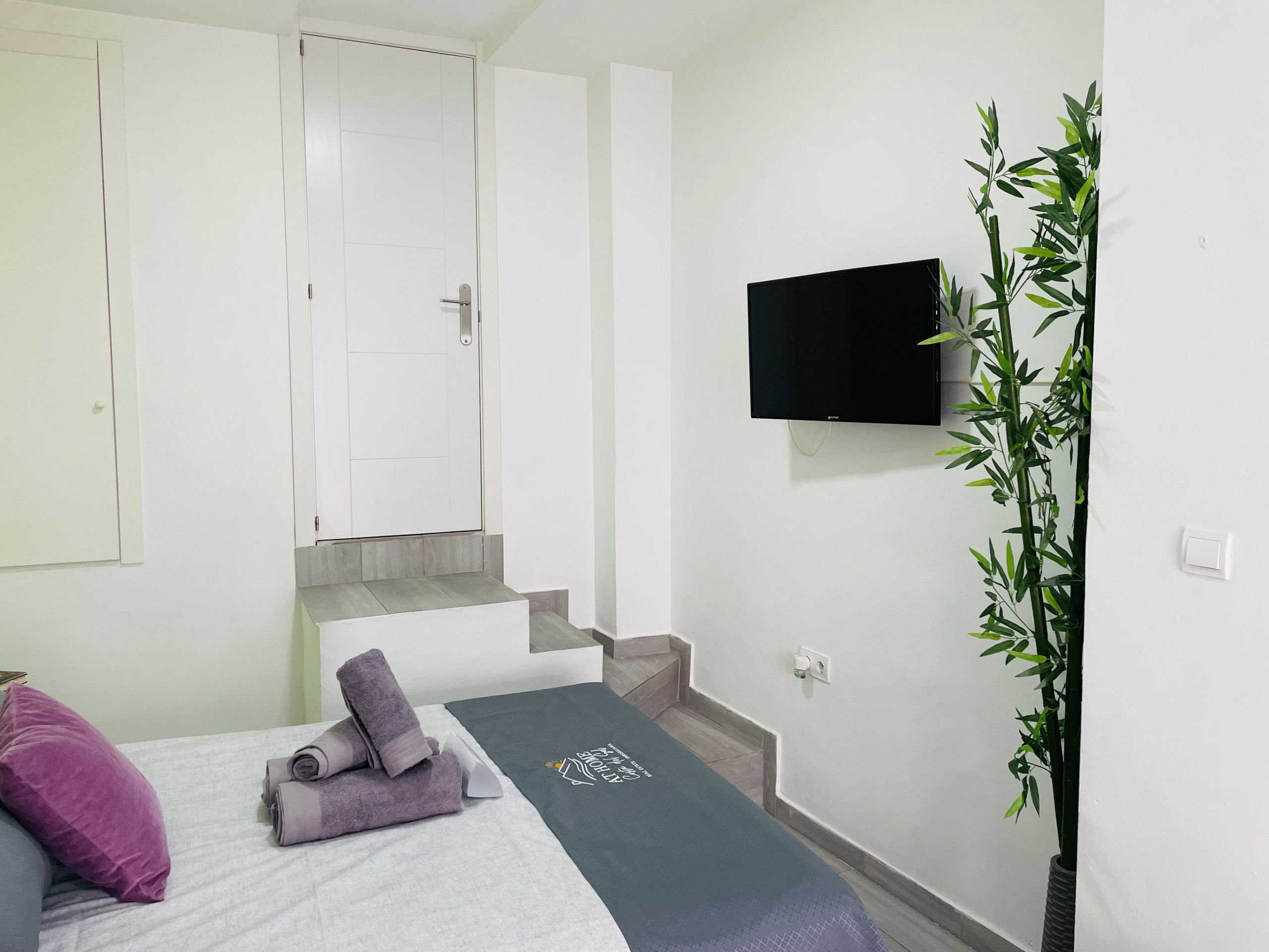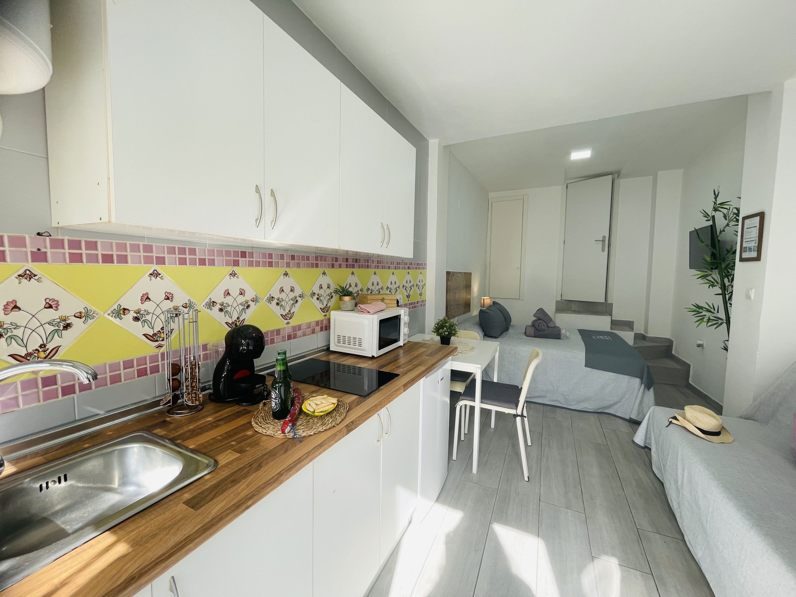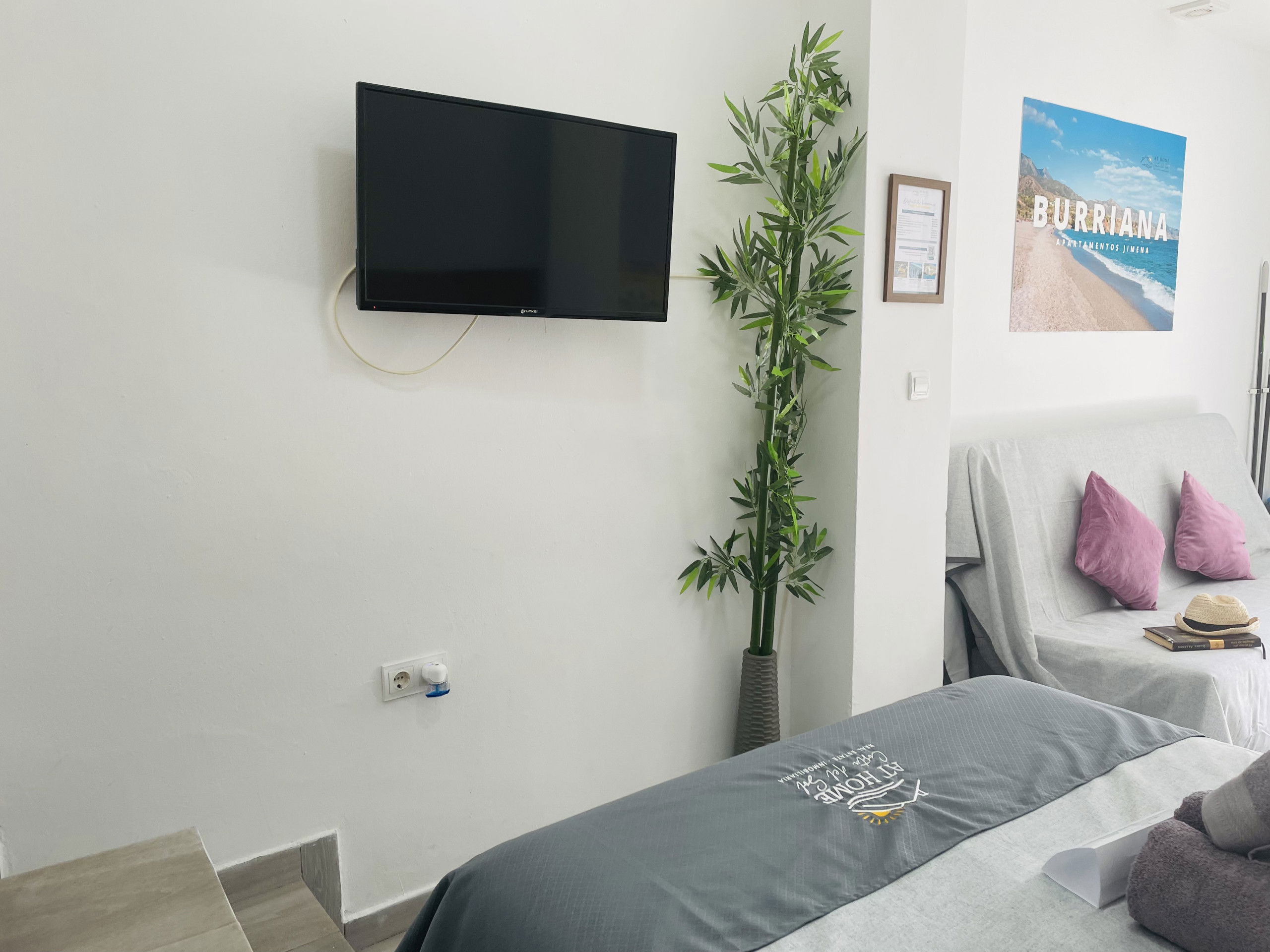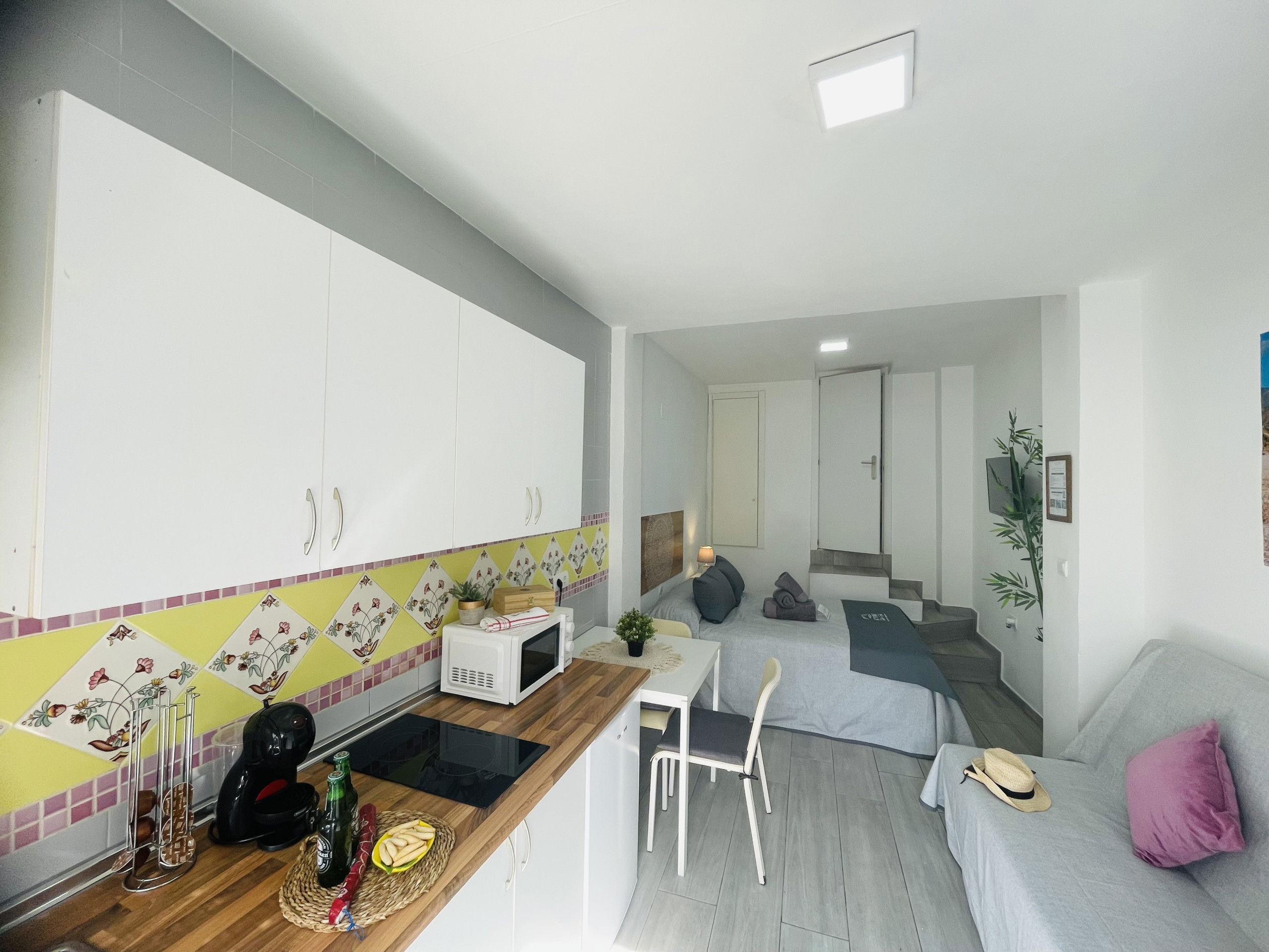 Studio Burriana au cœur de Nerja. Avec un lit double et un canapé-lit, il est parfait pour 2 adultes et un enfant ou 3 adultes.
