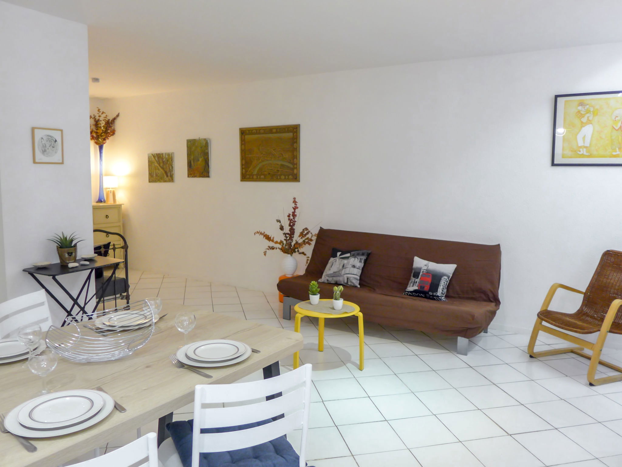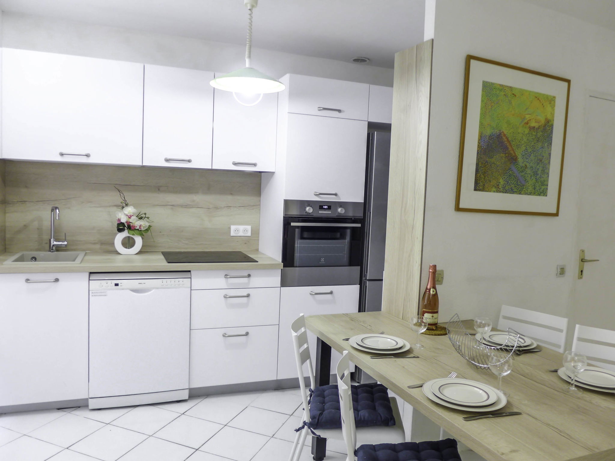 Appartement de 3 pièces 58 m2 au 2ème étage. Rénové en 2022: séjour/salle à manger avec écran plat. 1 chambre avec 1 grand-lit (1 x 140 cm, longueur 190 cm). 1 chambre avec 2 lits (90 cm, longueur 190 cm). Cuisine ouverte (4 plaques de cuisson, four, lave-vaisselle, grille-pain, bouilloire électrique, micro-ondes, cafetière électrique). Douche, WC séparé. Chauffage électrique. A disposition: fer à repasser. Internet (Connexion WIFI, en sus). Maximum 1 animal/ chien autorisé. 06088000807YB