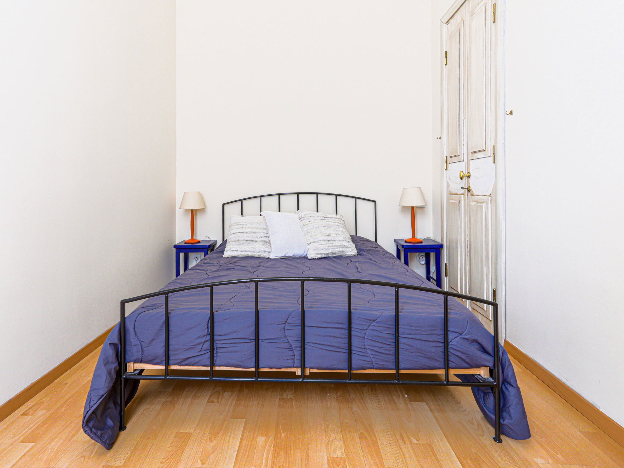 1 chambre, fenêtre donnant sur la cour avec 1 grand-lit (140 cm, longueur 190 cm).