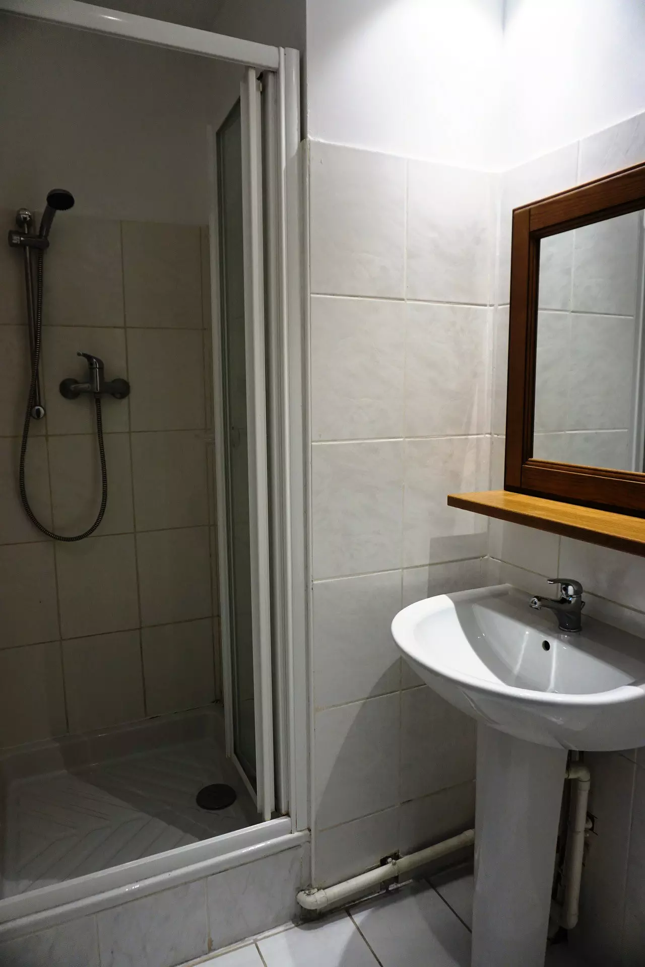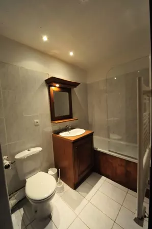Salle de bains : baignoire et WC. Salle d'eau : douche