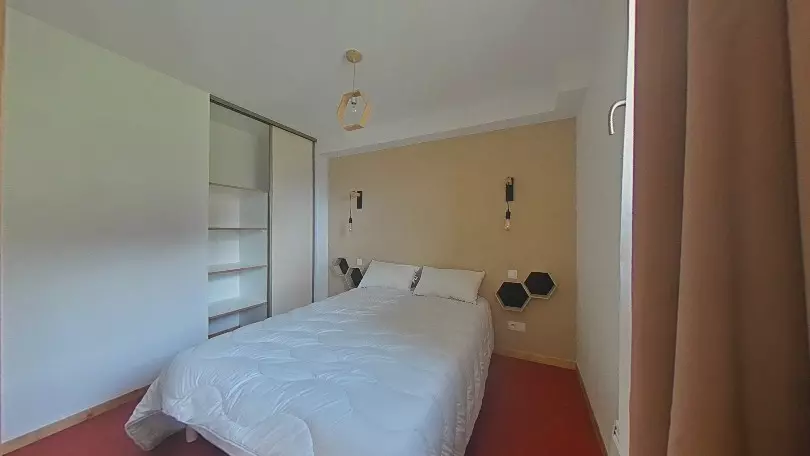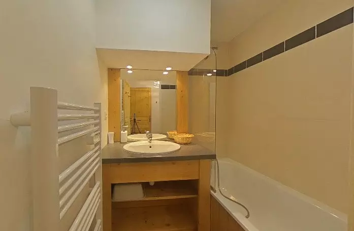 Appartement 2 pièces cabine de 36m², situé au niveau 0 ; balcon exposition Sud-Ouest.