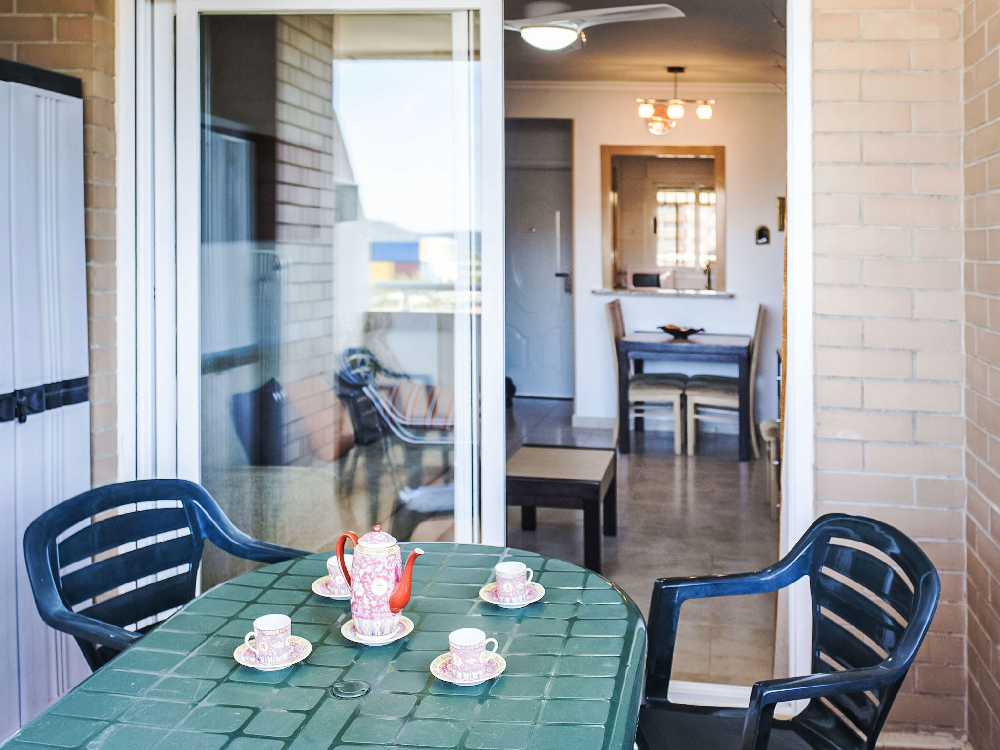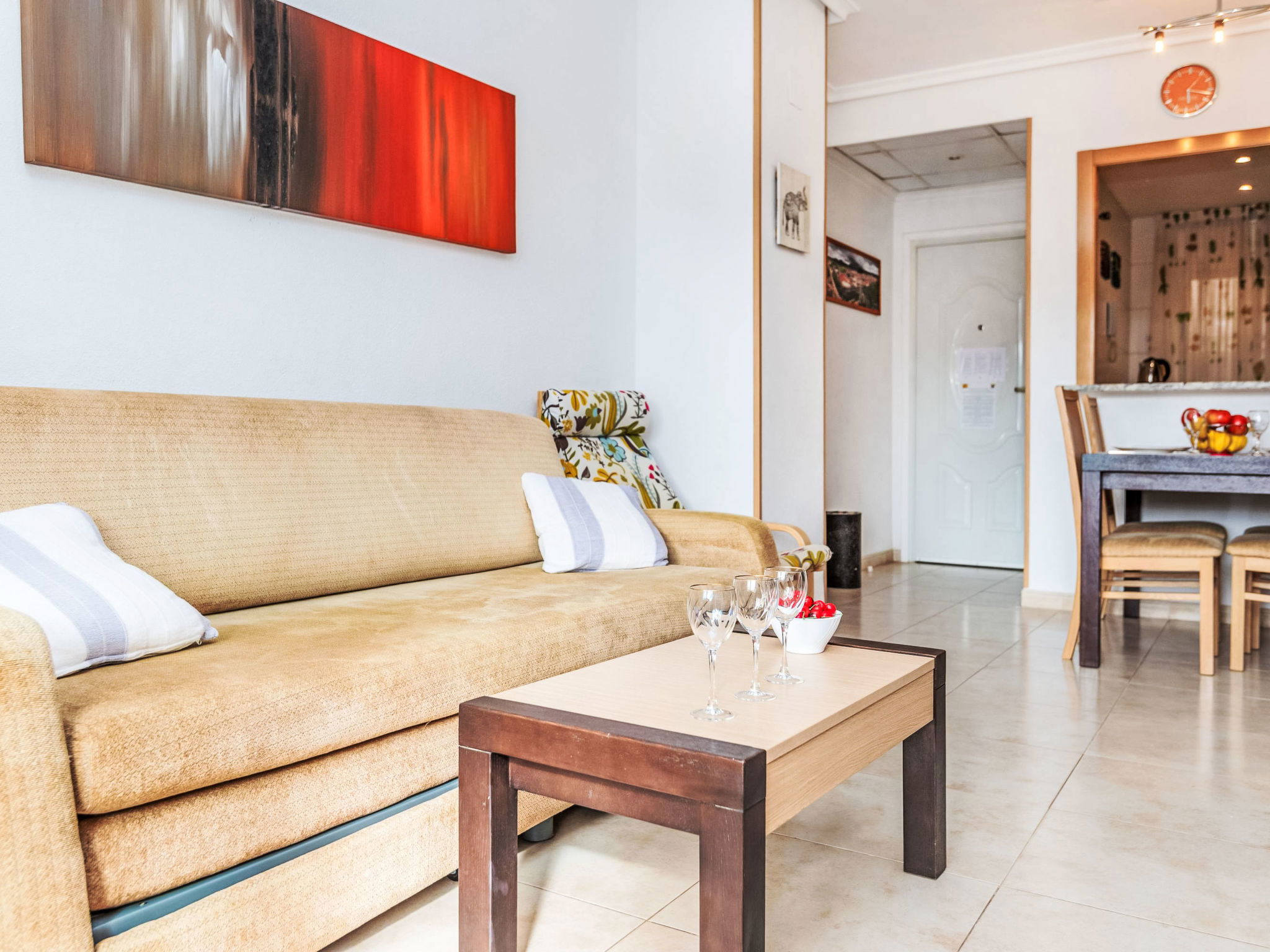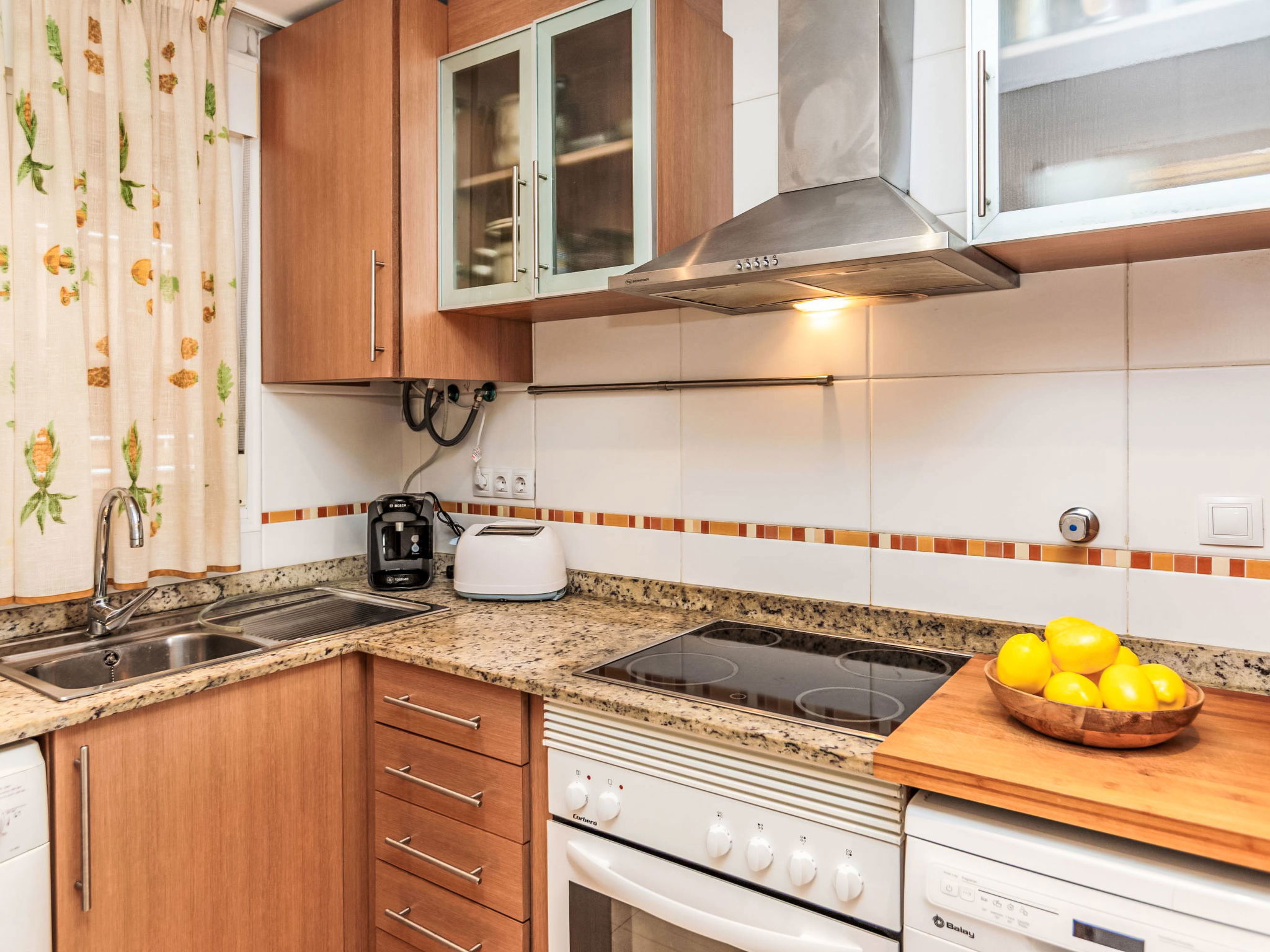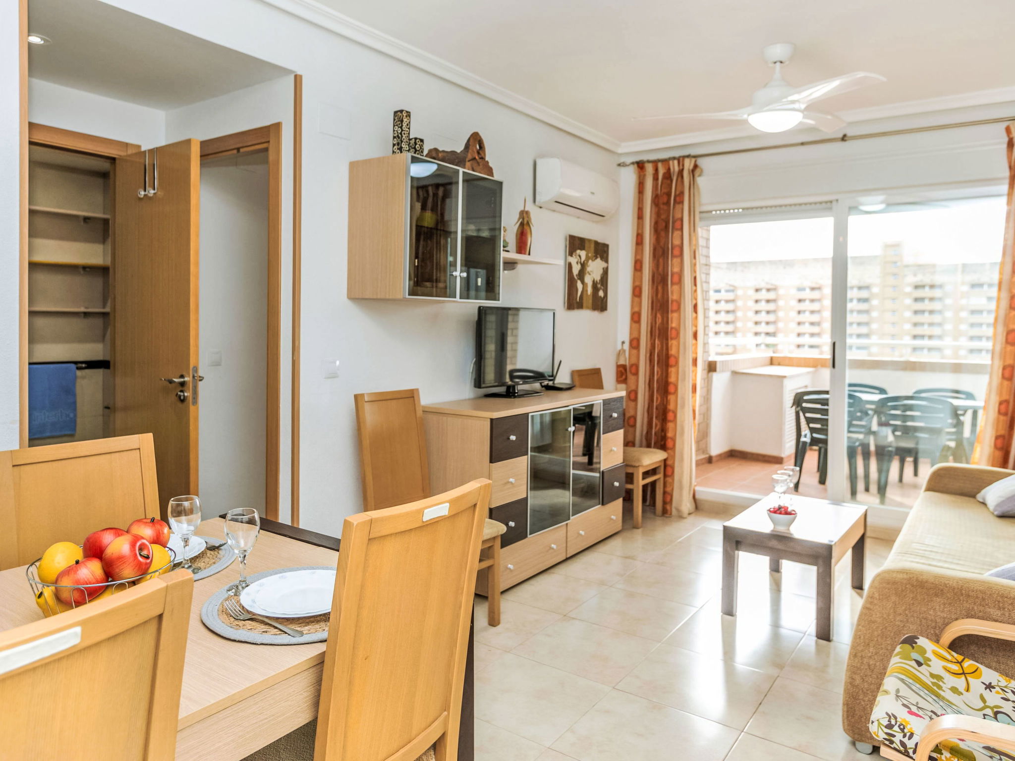 "La Mar Bella", Appartement de 3 pièces 65 m2. Clair, aménagement confortable et plaisant: séjour/salle à manger avec 1 divan-lit double, Télévision numérique, écran plat, radio, chaîne stéréo et air-conditionné. Sortie sur la terrasse. 1 chambre avec 1 lit double, chauffage électrique et ventilateur. 1 chambre avec 2 lits et ventilateur. Cuisine (lave-vaisselle, 4 plaques vitrocéramiques, grille-pain, bouilloire électrique, micro-ondes, congélateur, gril, cafetière électrique). Bain/douche/bidet/WC, douche à jets. Chauffage électrique. Chauffage pas dans toutes les pièces. Terrasse. Meubles de terrasse. Vue sur la mer, les montagnes et les alentours. A disposition: lave-linge, fer à repasser, lit bébé jusqu'à 2 ans, sèche-cheveux. Internet (Connexion WIFI, gratuit). Place de parking No 143. Adapté(e) aux familles. 1 animal/ chien de petite taille autorisé. AT-36789-CS