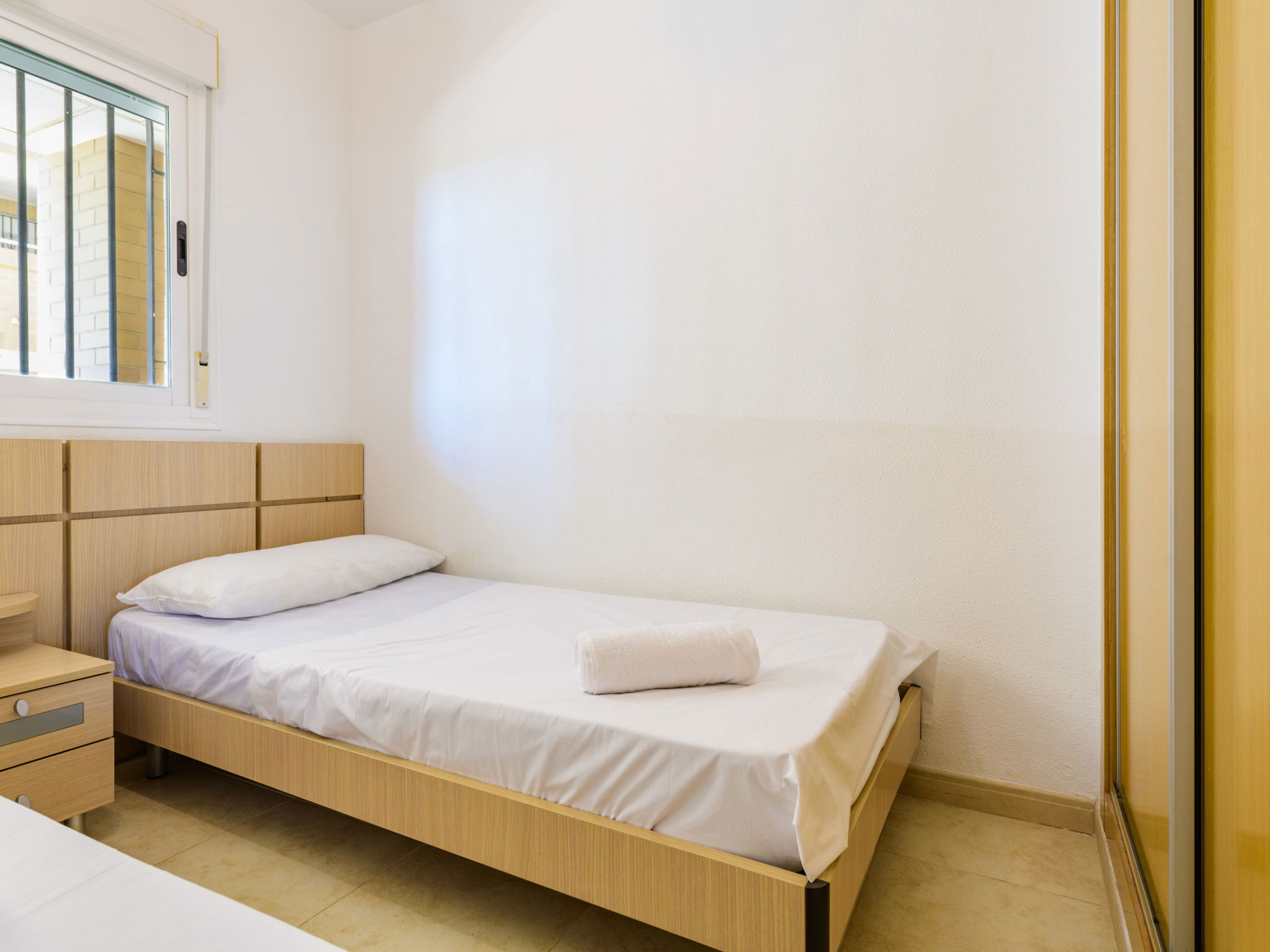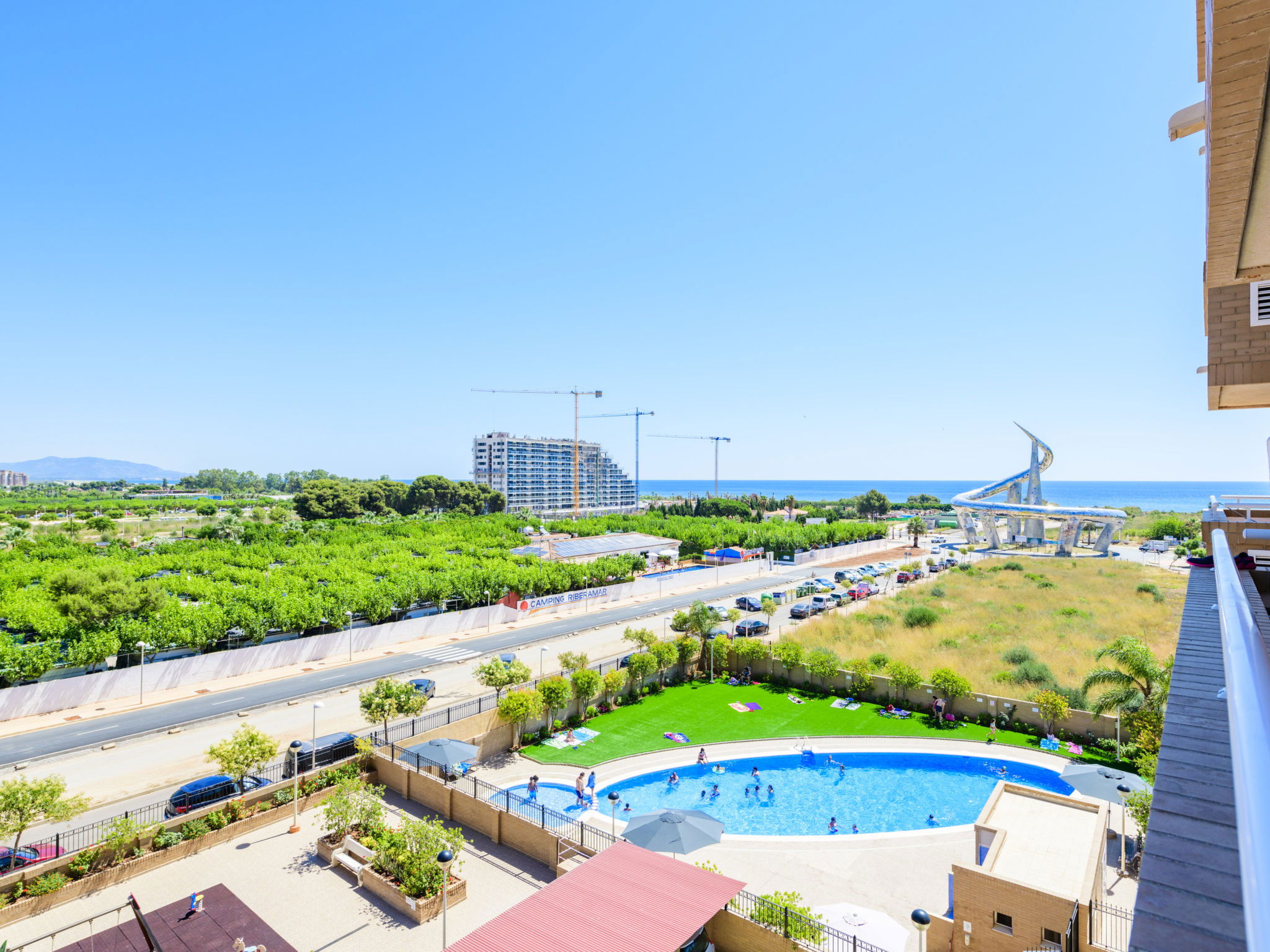 "Jardines del Mar III - Marina d'Or", Appartement de 3 pièces 50 m2 au 4ème étage. Aménagement fonctionnel et confortable: séjour/salle à manger avec table pour les repas, Télévision numérique, écran plat, air-conditionné et chauffage à air chaud. Sortie sur la terrasse. 1 chambre avec 1 grand-lit (135 cm, longueur 190 cm). 1 chambre avec 2 lits (90 cm, longueur 190 cm). Cuisine (four, 4 plaques vitrocéramiques, grille-pain, bouilloire électrique, micro-ondes, congélateur). Douche/bidet/WC. Chauffage pas dans toutes les pièces. Terrasse 12 m2. Meubles de terrasse. Vue latérale sur la mer. A disposition: lave-linge, fer à repasser, lit bébé jusqu'à 2 ans, sèche-cheveux. Place de parking (couvert) près de la maison. Veuillez noter: logement non-fumeur. Maximum 1 animal/ chien autorisé. VT-44651-CS // Reg. Nr.: ESFCTU00001202600067120500000000000000000VT-44651-CS6