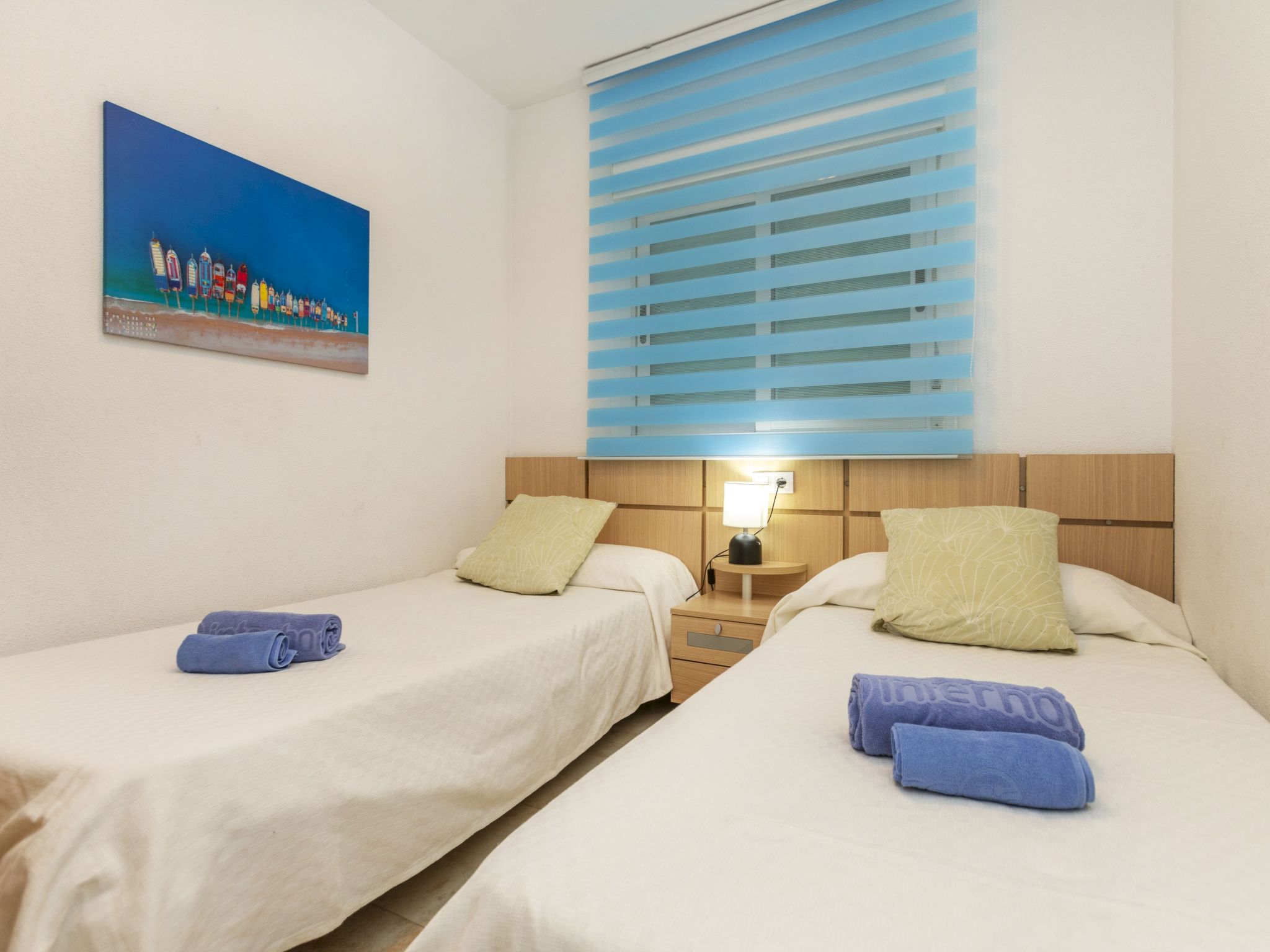 "Jardines del Mar III - Marina d'Or", Appartement de 3 pièces 50 m2 au 5ème étage. Aménagement confortable et agréable: séjour/salle à manger avec table pour les repas, Télévision numérique, écran plat, air-conditionné et chauffage à air chaud. Sortie sur la terrasse. 1 chambre avec 1 grand-lit (135 cm, longueur 190 cm), ventilateur. 1 chambre avec 2 lits (90 cm, longueur 190 cm). Cuisine (four, 4 plaques vitrocéramiques, bouilloire électrique, micro-ondes, congélateur). Bain/bidet/WC. Chauffe eau (47 litres). Chauffage pas dans toutes les pièces. Terrasse 12 m2. Meubles de terrasse. Très belle vue sur la mer et la piscine. A disposition: lave-linge, fer à repasser. Internet (Connexion WIFI, gratuit). Place de parking No 182 (-1) (couvert) près de la maison. Veuillez noter: logement non-fumeur. Maximum 1 animal/ chien autorisé. VT-42625-CS // Reg. Nr.: ESFCTU00001202600067157100000000000000000VT-42625-CS3