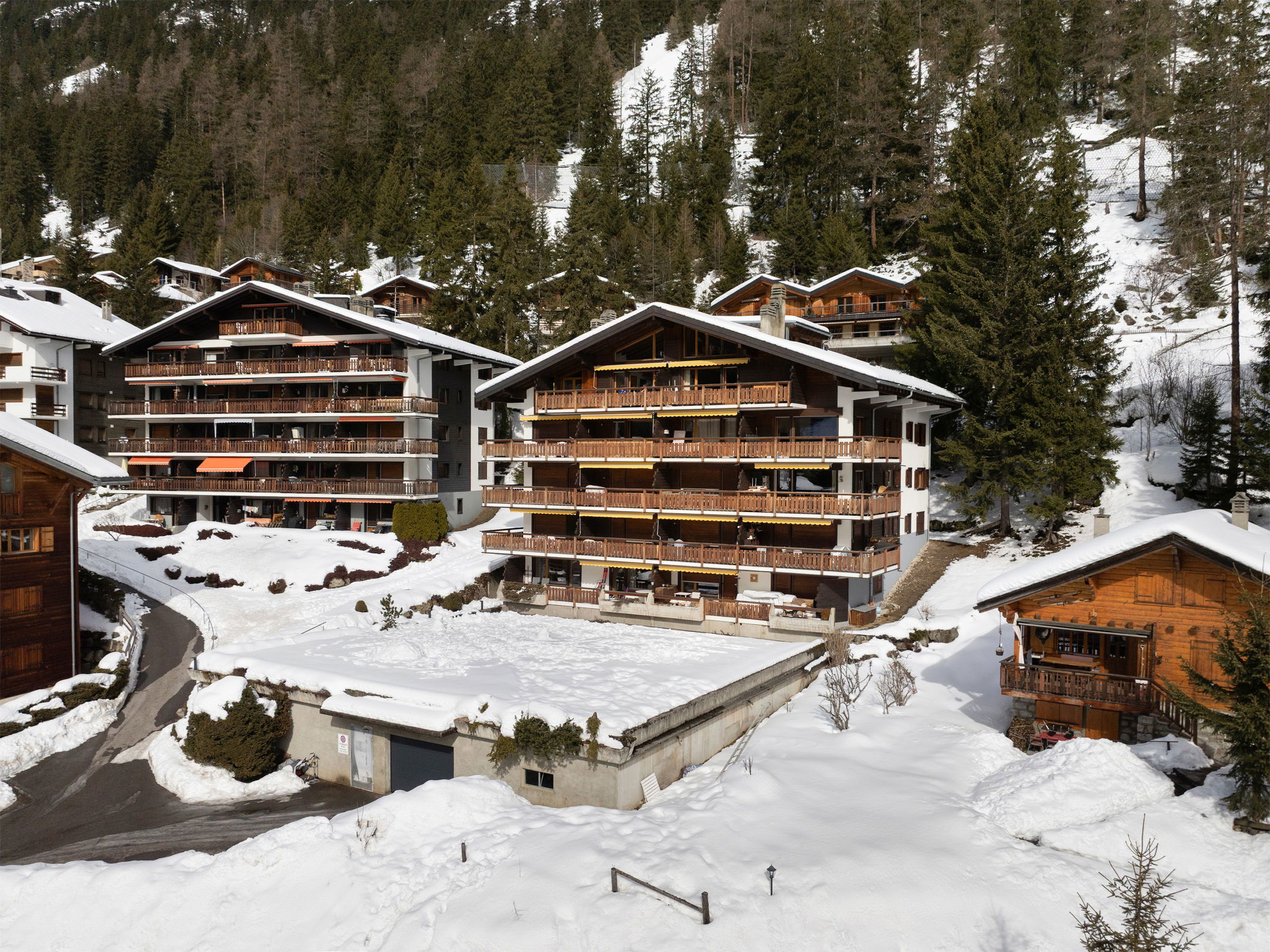 Belle petite résidence "Parc", environnée par les arbres. Au centre de la station, à 30 m de la forêt, à 100 m du lac, dans une impasse. Infrastructures de la Maison: ascenseur, local pour les skis, chauffage central. Accès en voiture jusqu'à 50 m de la maison. (10 marches). Parking public 850 m. Magasins 200 m, restaurant 100 m, boulangerie 350 m, arrêt de bus 50 m, piscine 1 km. Tennis 300 m, téléphérique 850 m. École de ski 300 m, jardin d'enfants (hiver) 350 m, patinoire 800 m, jeux pour enfants 600 m, Possibilités de pêche.