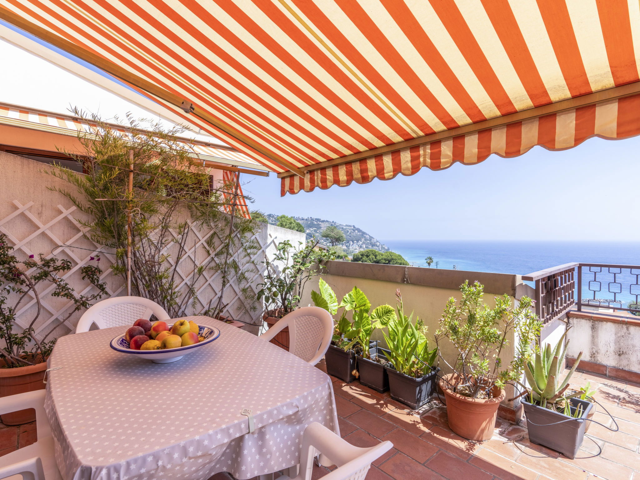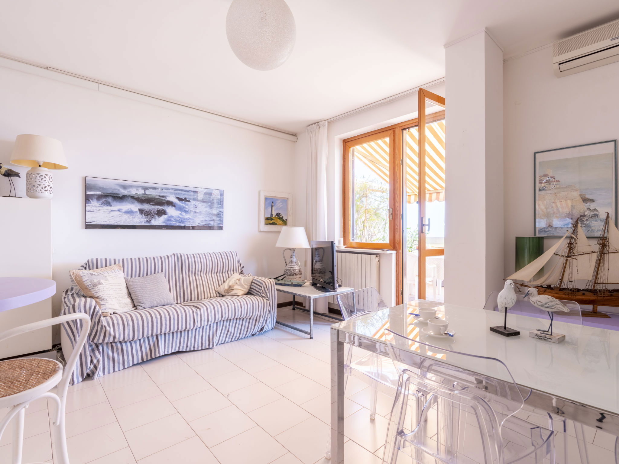"Beautiful View", Appartement de 2 pièces 60 m2, rez-de-chaussée surélevé. Clair, aménagement plaisant: séjour/salle à manger avec 1 divan-lit double (160 cm, longueur 200 cm). Sortie sur la terrasse. 1 chambre double. Coin cuisine (lave-vaisselle, 4 feux, grille-pain, bouilloire électrique, cafetière électrique). Sortie sur la terrasse. Douche/bidet/WC. Chauffage au gaz, air-conditionné, chauffage à air chaud. Possibilité de chauffage uniquement du 01.11. au 08.04. Terrasse 30 m2. Meubles de terrasse. Très belle vue panoramique sur la mer. A disposition: lave-linge, sèche-cheveux. Internet (Connexion WIFI, gratuit). Garage sur le terrain, largeur 220 cm. Veuillez noter: adapté(e) aux familles. Maximum 1 animal/ chien autorisé. Entrée privée. IT008039B49V3HF3IO