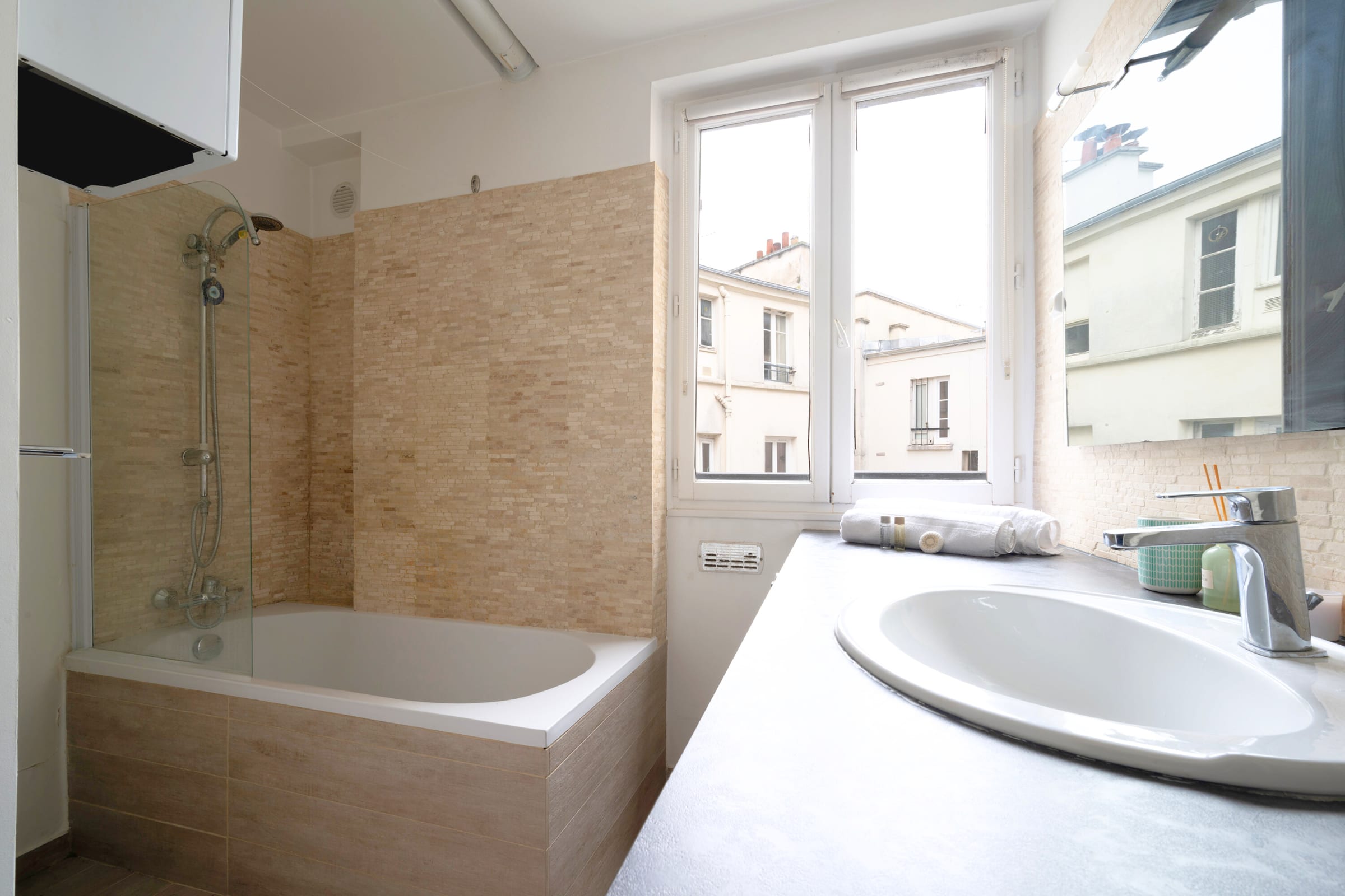 - 1 salle de bain avec baignoire