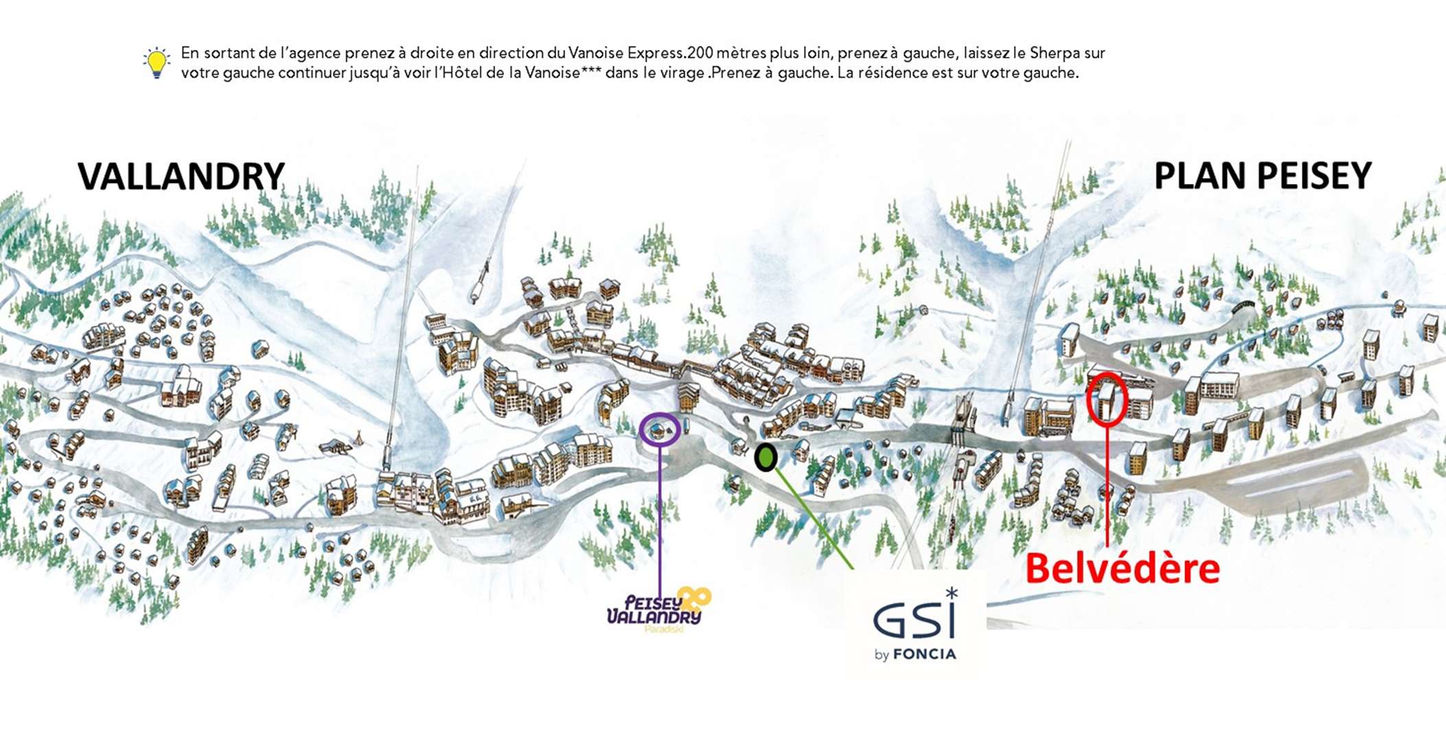 Résidence située sur les hauteurs de Plan Peisey après le centre commercial, accès direct aux pistes de la résidence en longeant le jardin d'enfant