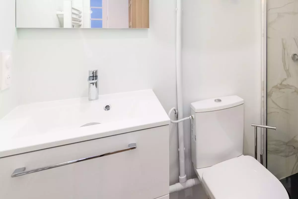- Salle d'eau : Moderne et raffinée, avec douche, lavabo et sèche-cheveux.